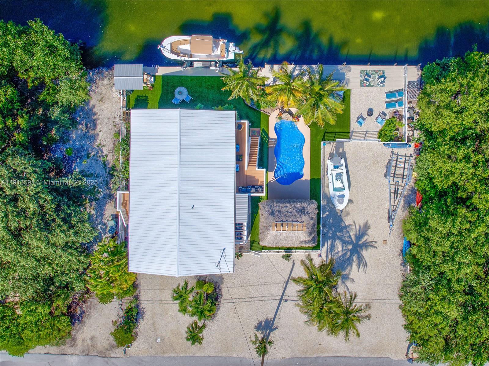 100 ft. canal-frontage, 15K boat lift, tiki hut and pool..... this Lower Keys property feels like your own private mini resort along the 50 ft. wide canal. The 10,000 sq. ft. double lot is strategically fenced to allow easy parking for multiple vehicles including boat trailer and RV parking. Picture yourself relaxing under the 12' x 18' poolside tiki or in one of numerous sitting areas amidst the butterfly-attracting plants. Leave your lawn mower behind... the artificial lawn turf requires zero-maintenance! Heated and chilled, the new 12' x 26' salt system pool has a waterfall feature and variable pump.