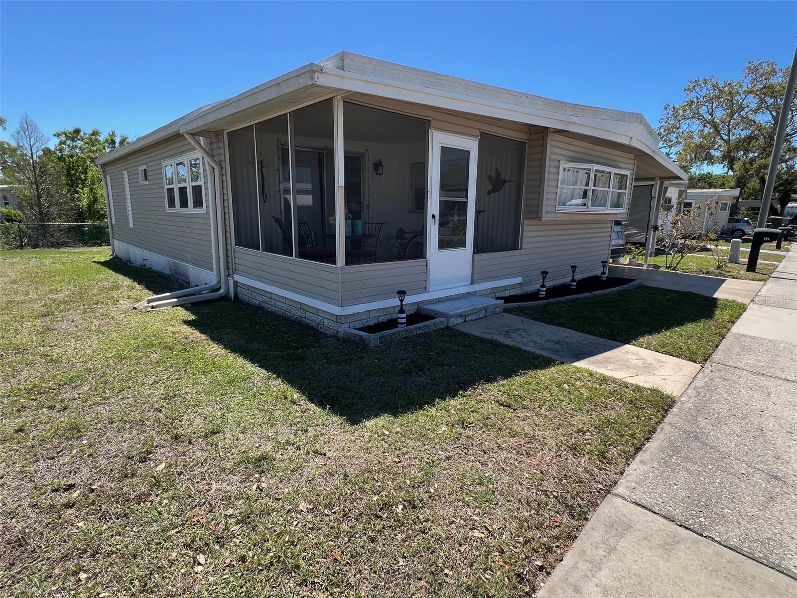 Impressive New Price! Seller is offering the buyer a choice to buy the home and share or the share can be removed and the home can sell for $105,000...great option if so desired! Discover the charm of Doral Village, an exclusive 55+ gated community that offers an engaging lifestyle! This lovely home is tucked away in a peaceful setting with no rear neighbors, ensuring added privacy and tranquility. With an affordable maintenance fee of just $238.00 per month currently, residents benefit from included water, sewer, garbage, and lawn care, making everyday living effortless. Plus, two indoor feline friends are welcome to share your space! Doral Village features amenities designed for recreation and relaxation. Take a dip in the heated pool, unwind in the hot tub, challenge friends at the shuffleboard courts, or enjoy a friendly game of billiards. Perfectly situated, this community is just moments from gorgeous beaches, convenient shopping, a variety of dining options, and exciting amusement parks, offering endless opportunities for all.INTERIOR:This brilliantly maintained two-bedroom, two-bathroom home is move-in ready and packed with updates! The home is fully furnished ( with a few exceptions -list available to buyers) and offers a bright and inviting atmosphere. This residence boasts hardwood flooring throughout most of the home, complemented by tiled flooring in the bathrooms for a polished touch. Step into the pristine kitchen, where you'll find solid surface countertops, a spacious pantry, a breakfast bar, and an eat-in area. Outfitted with stainless steel appliances, including a range, oven and refrigerator, black microwave and dishwasher, this kitchen is both stylish and functional. Adjacent to the kitchen, the dining area provides additional places for more friends and family to dine! The delightful living space makes a perfect spot for movie nights. A sliding glass door leads to a raised, screened-in room with tiled flooring, offering the ideal setting for morning coffee, game nights, or simply enjoying the fresh air. The spacious primary suite features an ensuite bath, complete with a walk-in tiled shower, tile flooring, and a generous vanity with plenty of countertop space for accessories. The charming second bedroom is equally impressive, offering ample space, a walk-in closet, and its own ensuite bath with an accessible, walk-in, tiled shower that can also be accessed from the hallway for residents and guests. Additional highlights include central heat & air (updated in 2020), new vapor barrier (2024), new ductwork (2024 and ceiling fans to keep the air moving.EXTERIOR:The exterior of this well-maintained home exudes both style and polish. A sturdy roof-over spans the entire home, providing excellent durability and added protection from the elements. The spacious two-car carport offers ample covered parking, while the durable vinyl siding enhances curb appeal and ensures low home maintenance. A newer water heater adds efficiency, while the storage shed, complete with tiled flooring and a washer, provides extra space for your needs. To top it all off the golf cart is negotiable! Priced at just $133,000including the sharethis is an incredible deal for a home in such a sought-after location! Dont miss out on this fantastic opportunity!