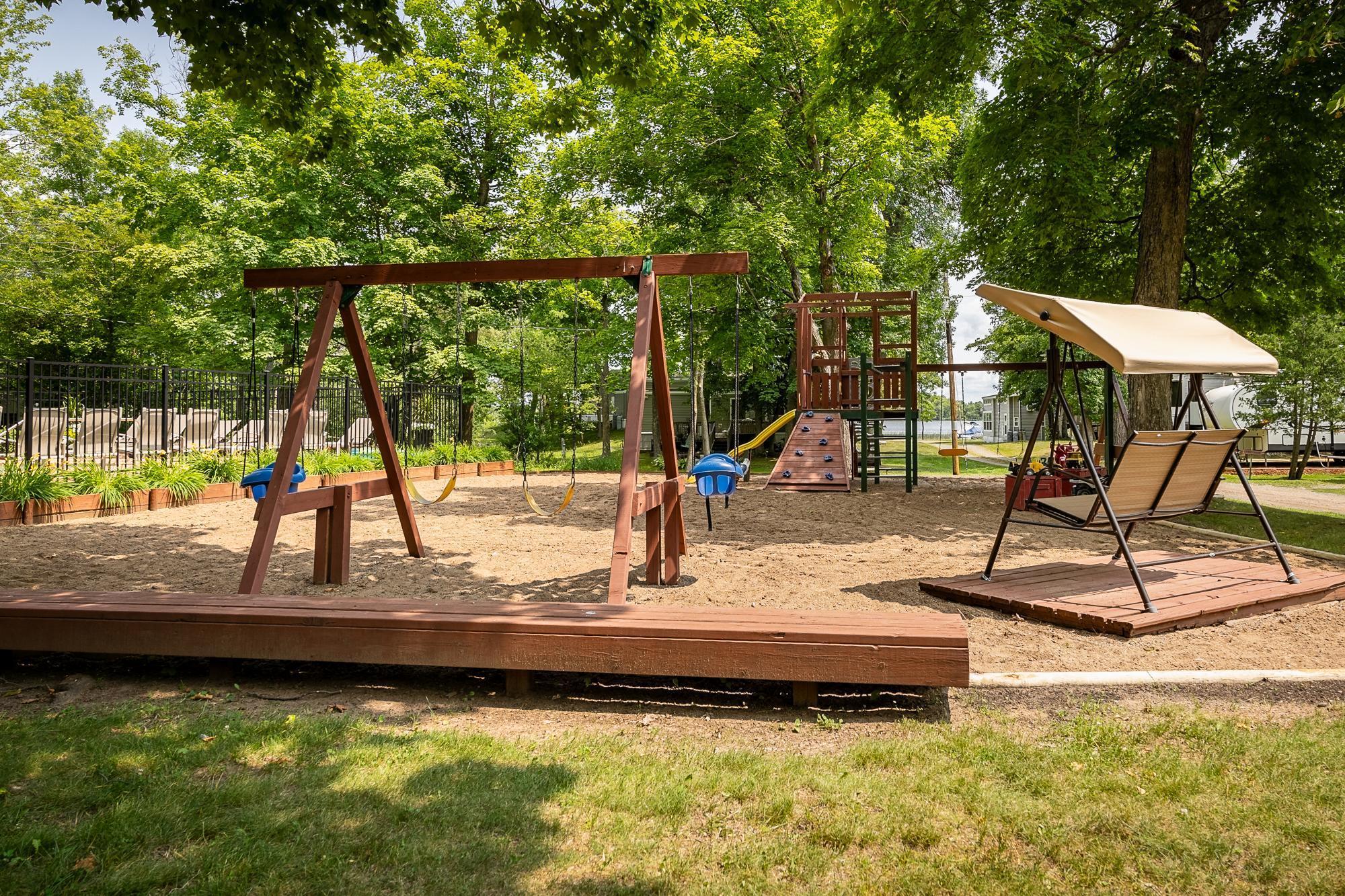 Experience lake life with a whole bunch of perks at Hickory Lake Campground.This immaculate park model home in Farm Island Township is your perfect seasonal lake getaway surrounded by the area's iconic rolling hills, golden trees, and sparkling water views. Enjoy your mornings on a brand-new deck overlooking the lake and your evenings around a cozy campfire under the stars.Inside: Beautifully maintained park model with vaulted ceilings, a loft for extra space, and a bright front window view of Hickory Lake.Outside: Access to Hickory Lake, a swimming pool, community room, playground, boat landing, and docks, everything you need for classic Minnesota summer fun!Turn-key, spotless, and ready for next lake season!