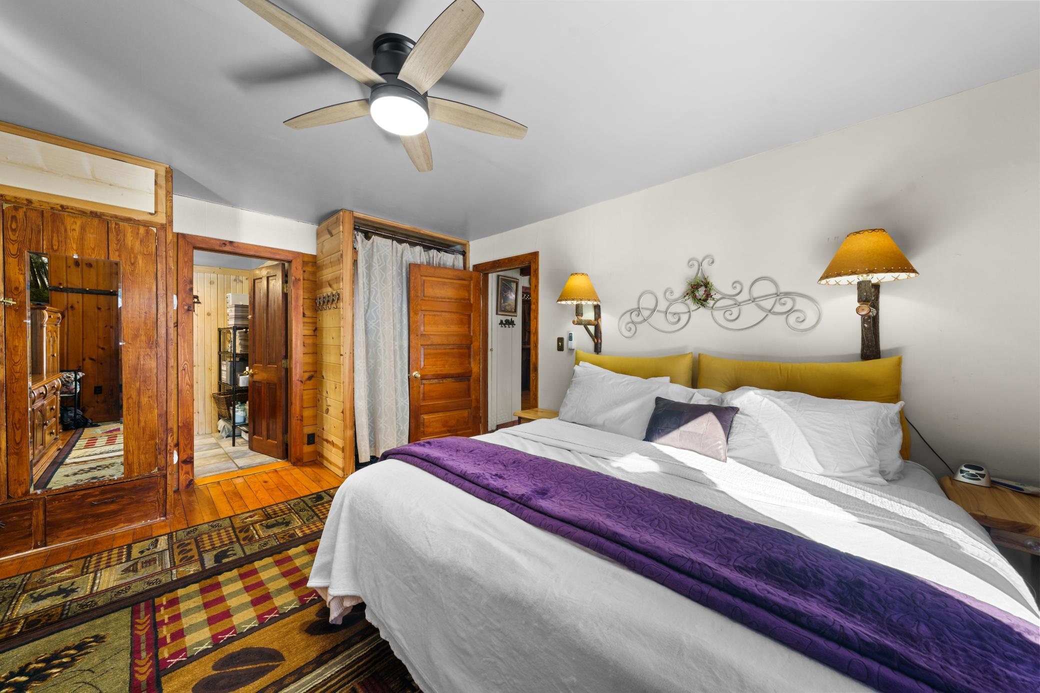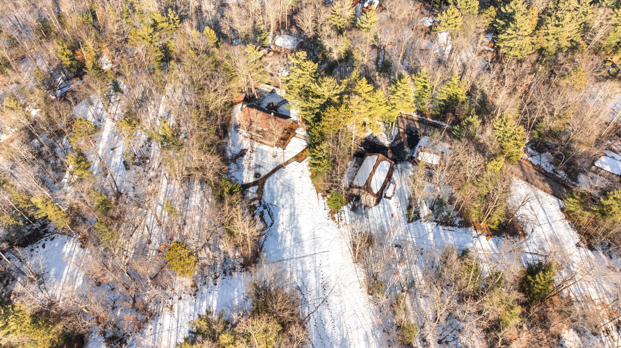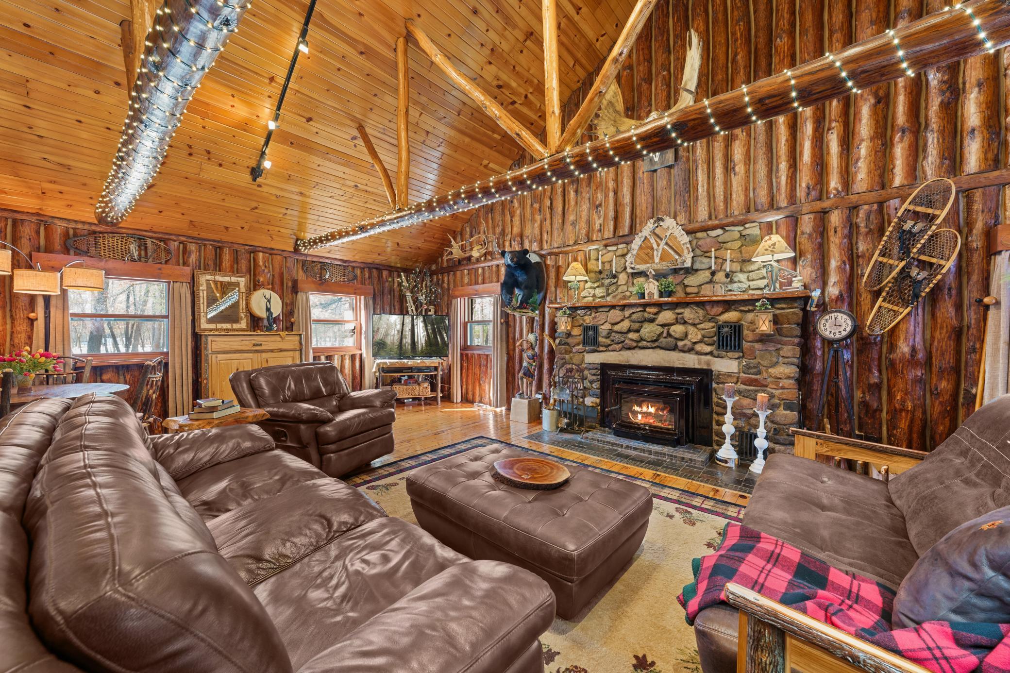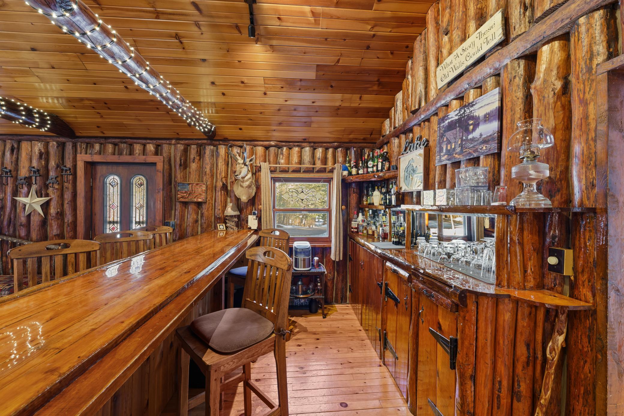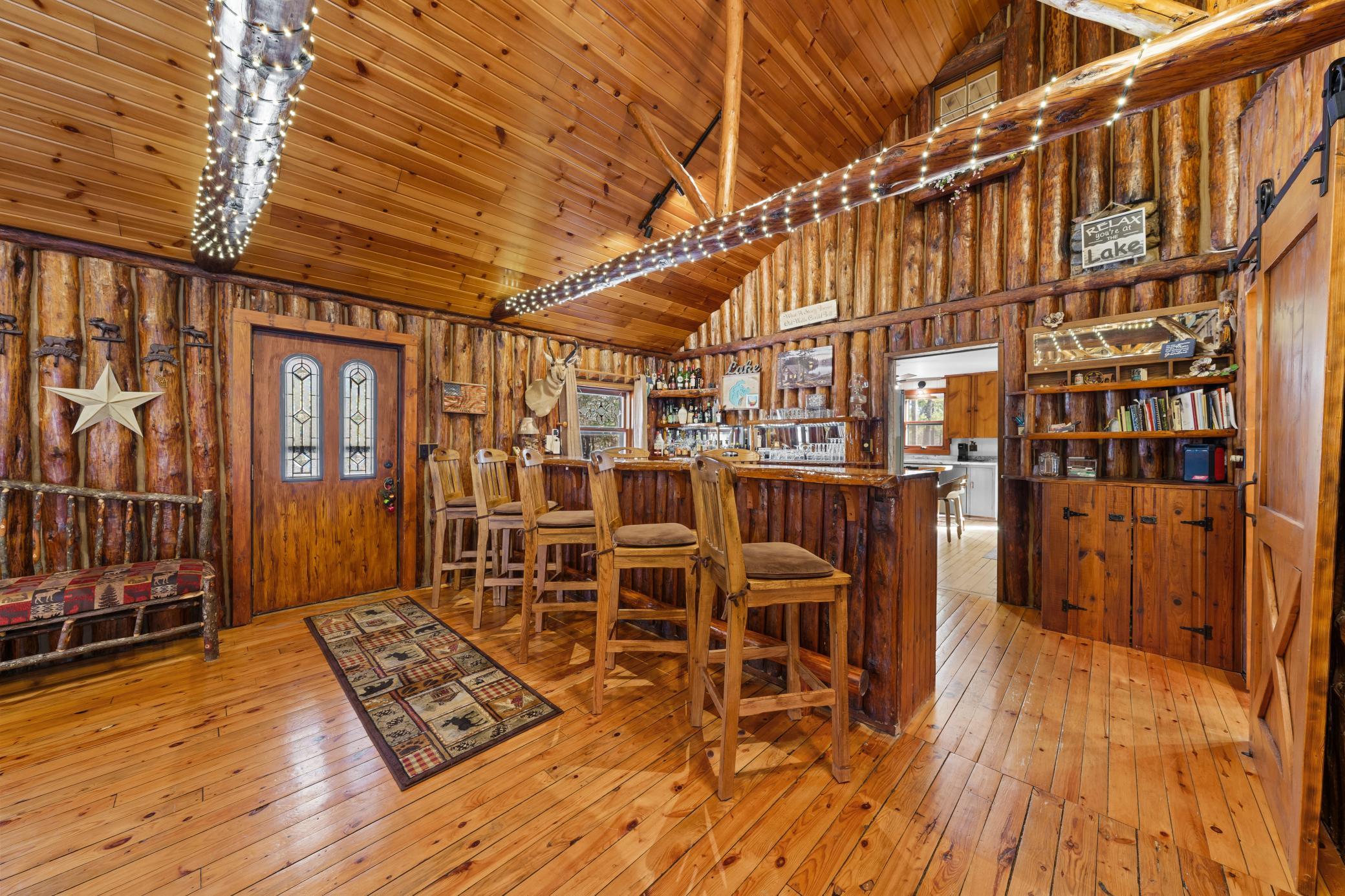 Log home with 176 feet of shoreline on Lily Lake, 4.5 private acres & newly built garage. Originally built in 1945 and once home to The Rustic Inn, this property has been thoughtfully restored to preserve the history while also making great use of the converted space. Nostalgia remains in tact throughout, from the original bar (still in place) to the 1906 player piano. The kitchen retains its original cabinetry and updated with stainless appliances and gas range. 2 Main-level bedrooms, with primary and additional bath. Upper loft bunk area overlooks the living room. 3-season insulated porch leads to new decks and sidewalks. New chinking inside and out, wood-burning insert, updated lighting, newer septic (6 years), drilled well, Kinetico water system, and new water heater. A newly built heated garage with front and rear doors offers exceptional space for vehicles and toys. Bonus charm: meticulously maintained outhouse (serviced regularly) and chicken coop. Dock is included with the sale.