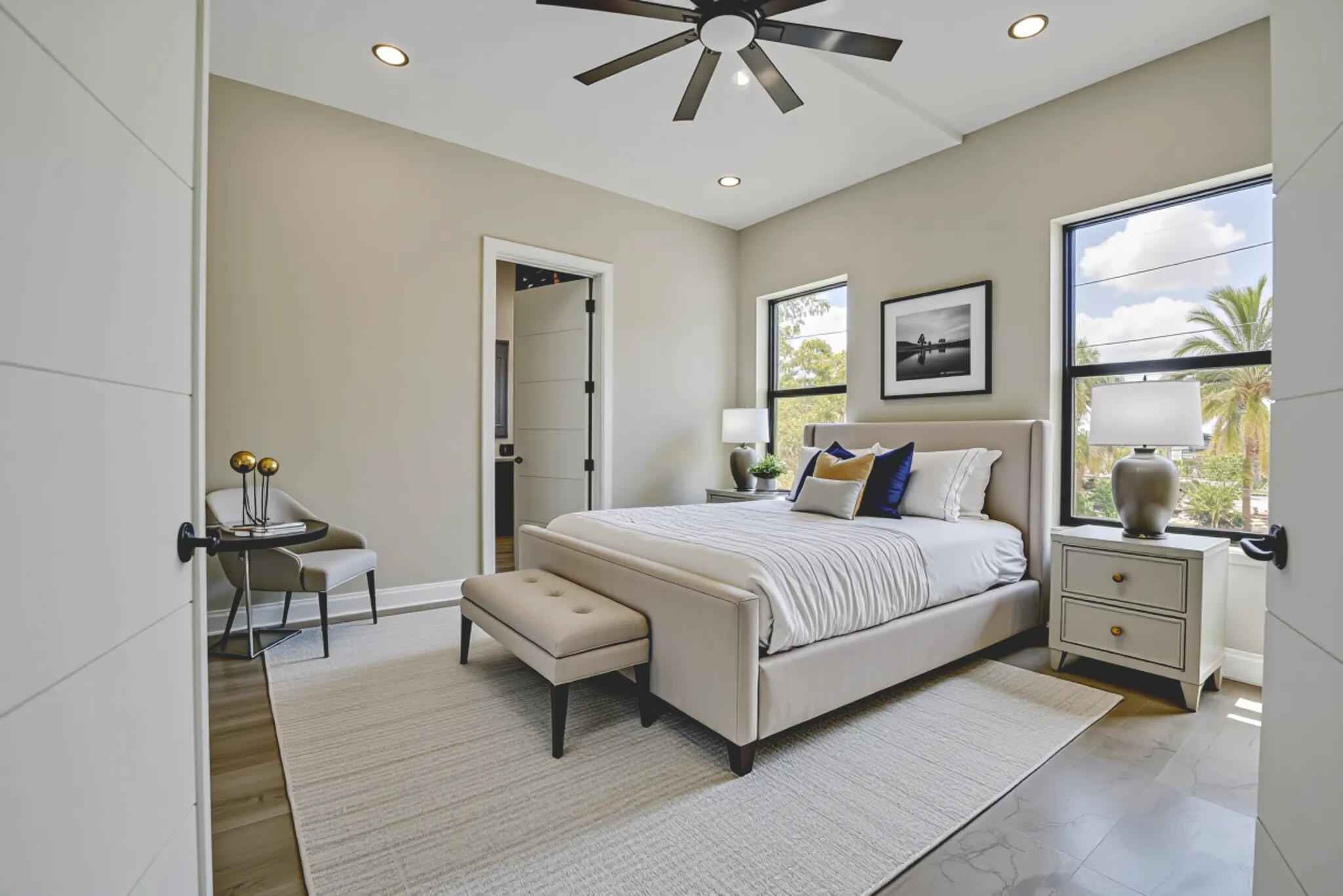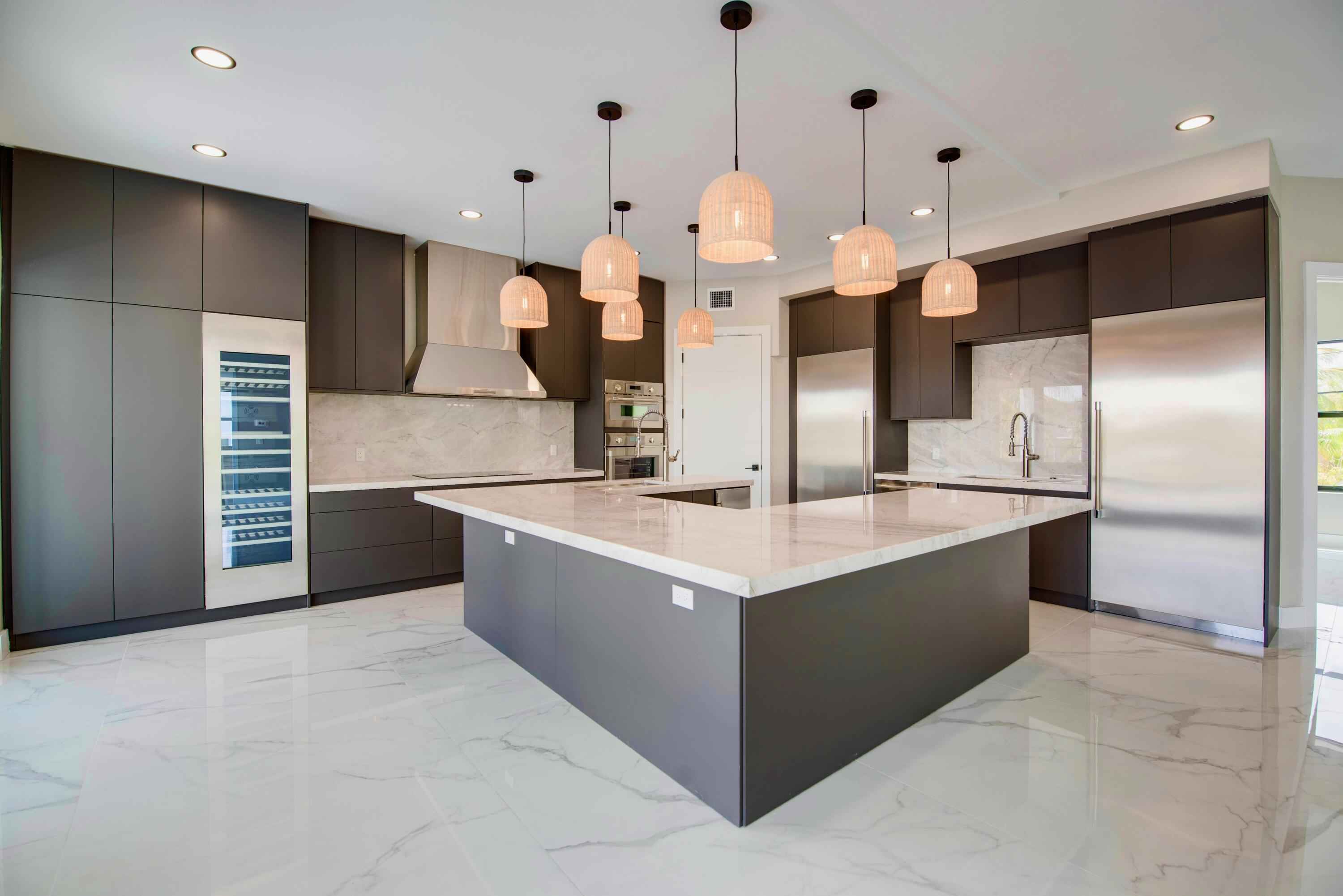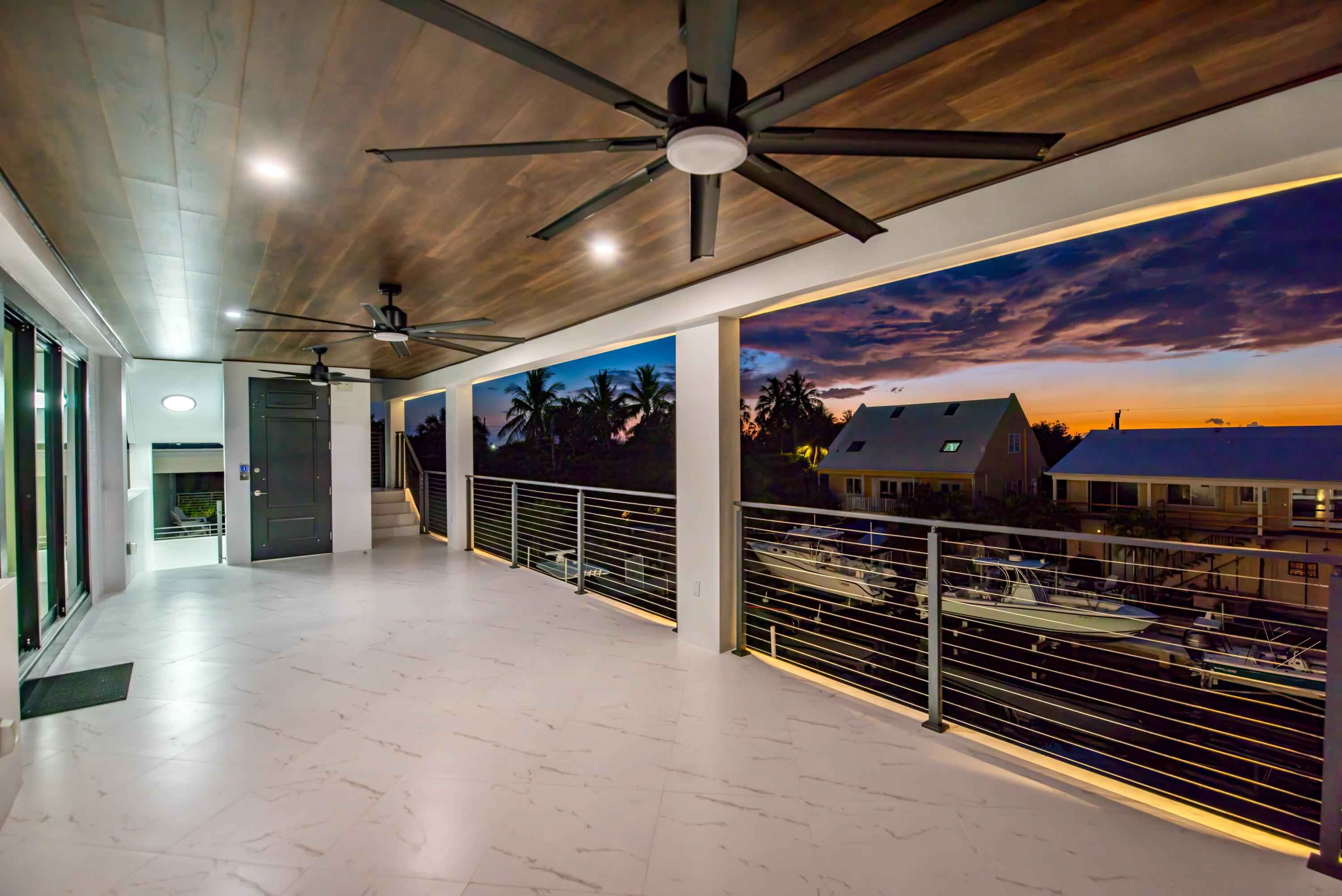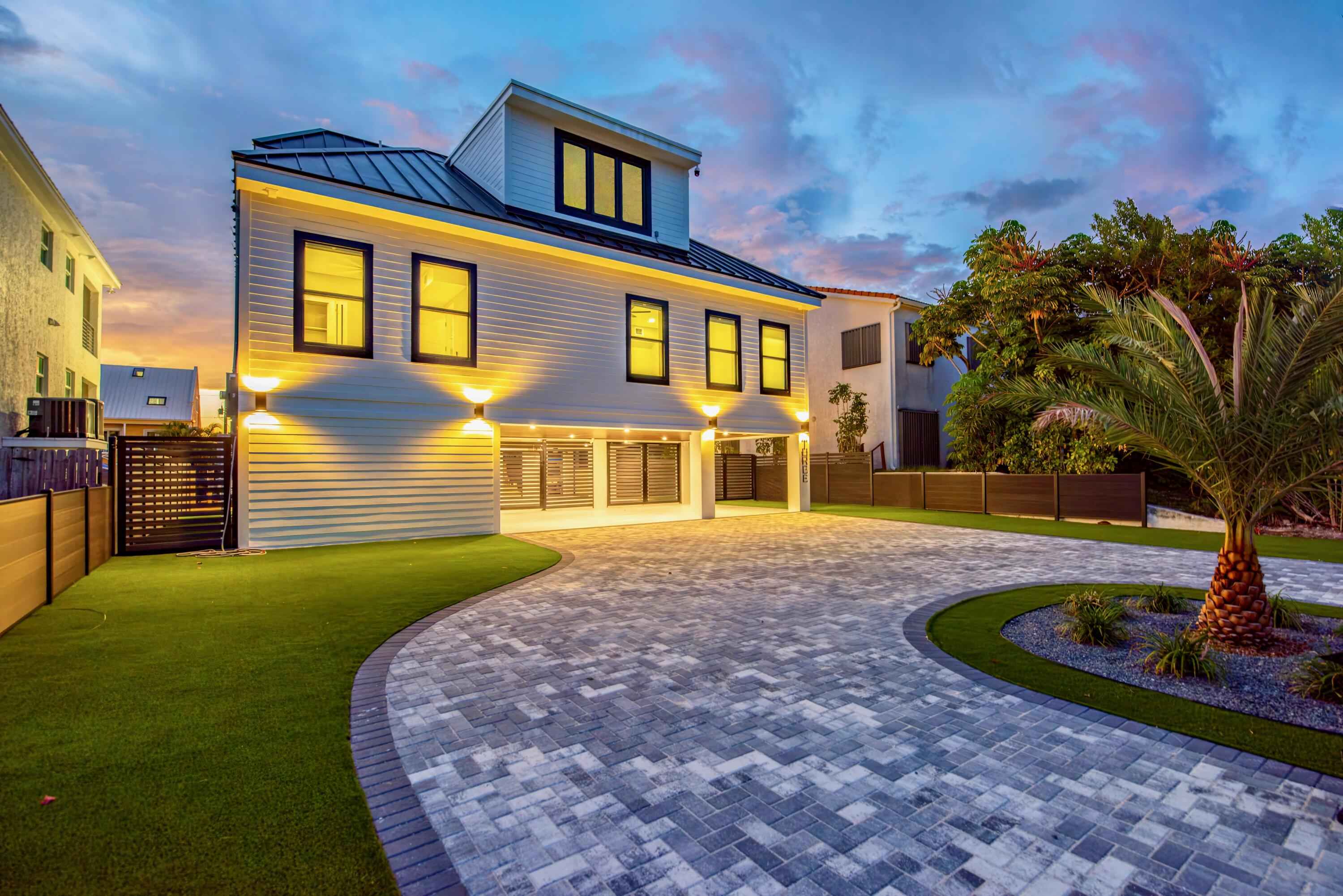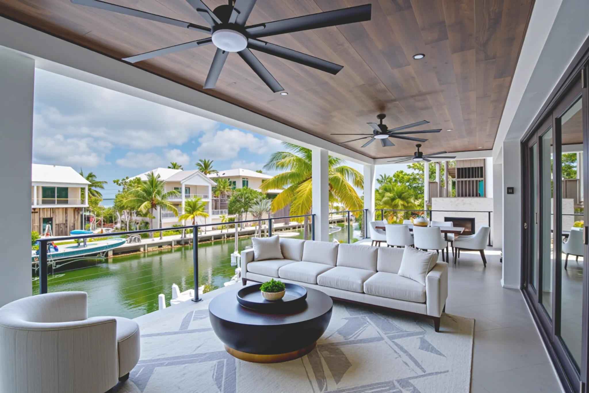 New 2025 waterfront construction on the final canal in Key Haven--an architectural entertainer designed for seamless indoor-outdoor living just 5 minutes from Key West. Unlike typical Keys homes, this residence was designed around outdoor living, offering over 2,400 Sq.Ft. of covered entertaining space seamlessly connected to the interior. Completed in 2025, this striking modern waterfront residence offers 4 bedrooms + office, 4 bathrooms, and 2,458 Sq.Ft. of interior living space. Positioned on the coveted final canal in the exclusive Key Haven community, the home is designed for privacy, entertaining, and exceptional boating access. The layout offers rare flexibility. The entire top level functions as a private guest quarters, ideal as an elevated primary suite, luxury guest retreat, or in-law residence with some of the best water views in the home. This level also features a large covered porch spanning the entire floor, creating an additional private entertaining space. Inside, the architecture emphasizes volume, light, and clean modern lines. Tall ceilings, expansive glass, and large polished porcelain tile flooring create a refined coastal aesthetic. The open living area centers around a gourmet kitchen with Thermador appliances designed for entertaining. Stackable glass doors open the entire main living space onto a wide covered waterfront porch, for seamless indoor-outdoor living. A private elevator with access from ground level.Outdoor spaces include four decks, a rooftop deck with sweeping water views, a pool with swim-up bar, and a private putting green. The rooftop deck is ideal for spectacular sunsets and stargazing.For boating enthusiasts, the property features a 15,000 lb boat lift and davit with quick access to both the Gulf and Atlantic. Additional highlights include solid concrete construction, standing seam metal roof, elevator access, high-end finishes, and a large air-conditioned storage room. Photos include virtually staged furniture layou