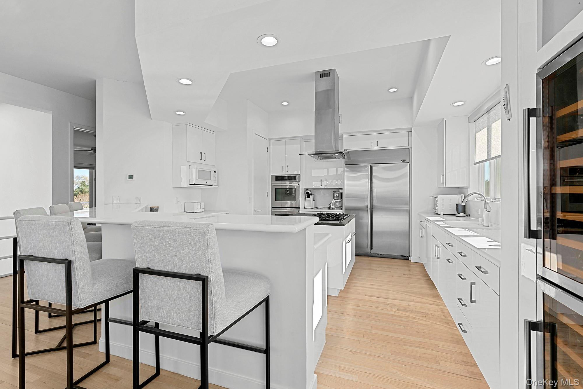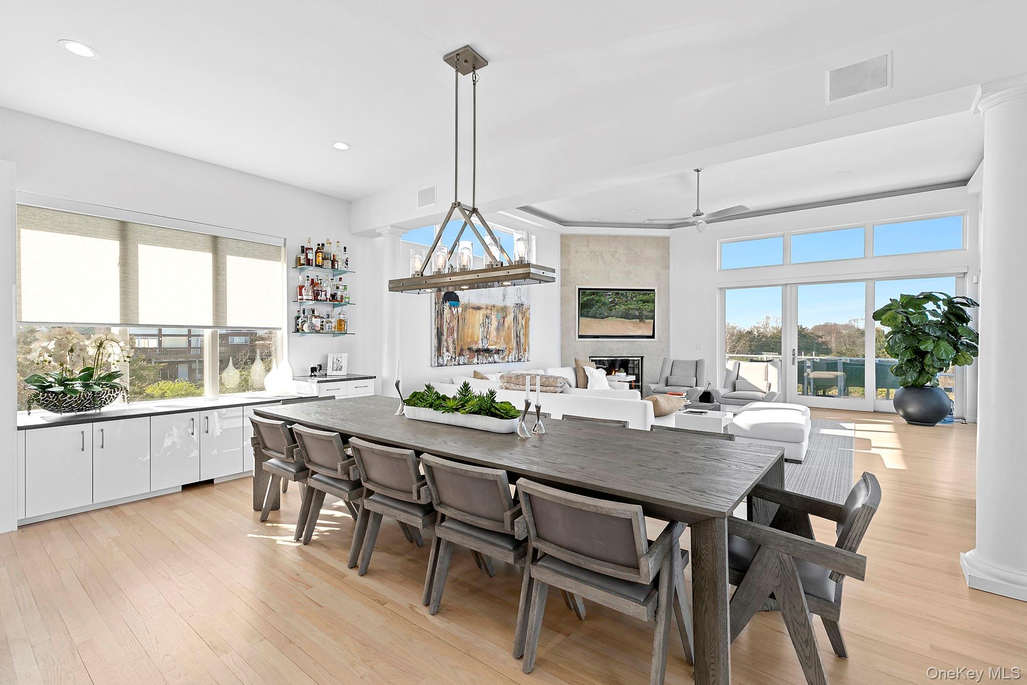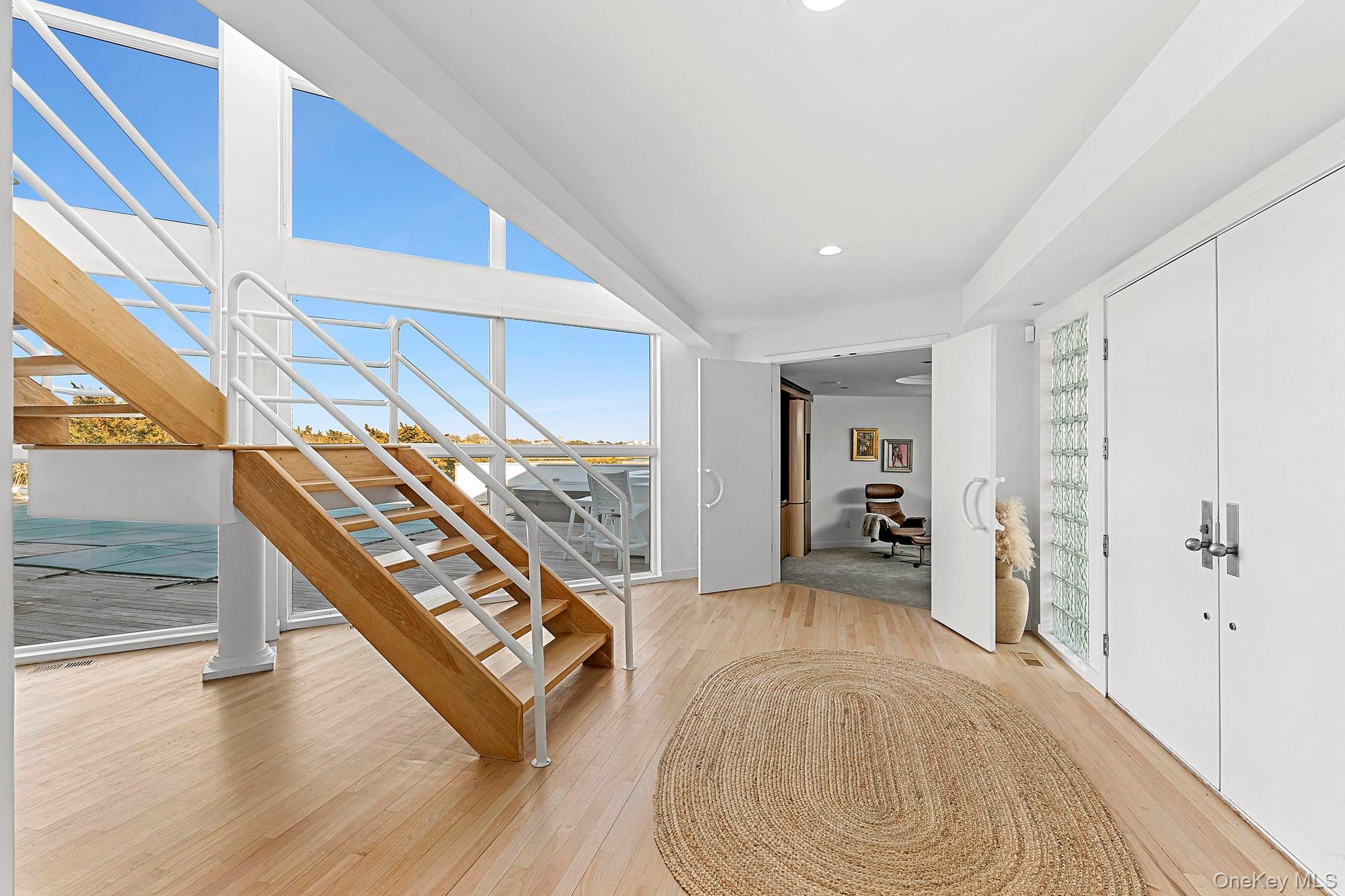 Introducing a truly one-of-a-kind, newly renovated bayfront contemporary, now offering expanded interior living and reimagined outdoor spaces, available for the first time as a two-week June rental (flexible).Thoughtfully redesigned to include newly added rooms and increased interior square footage, this residence delivers enhanced scale, comfort, and flexibility. Set on a shy acre with sweeping open-water views, the home captures breathtaking sunsets and offers refined waterfront living.Two levels of light-filled interiors feature expansive open living areas, walls of glass, and seamless indoor-outdoor flowideal for entertaining or unwinding after a day on the course. A standout feature is the new upstairs terrace deck with lounge and bar, overlooking the bay and creating an elevated setting for sunset cocktails and evening gatherings.Outdoor amenities include a heated natural water in ground 20x40 pool, hot tub, brand new mahogany deck, gas grill, expansive waterfront terraces, and a deep-water dock for paddleboarding or boating. Every element has been curated to maximize enjoyment of the bayfront setting.Secure this exceptional rental in time for the U.S. Golf Tournamentjust a 20-minute drivemaking it an ideal retreat for players, teams, or spectators seeking a serene waterfront escape. Conveniently located minutes from Dune Road beaches, golf courses, and village shops and restaurants, the home offers the perfect balance of privacy and proximity.