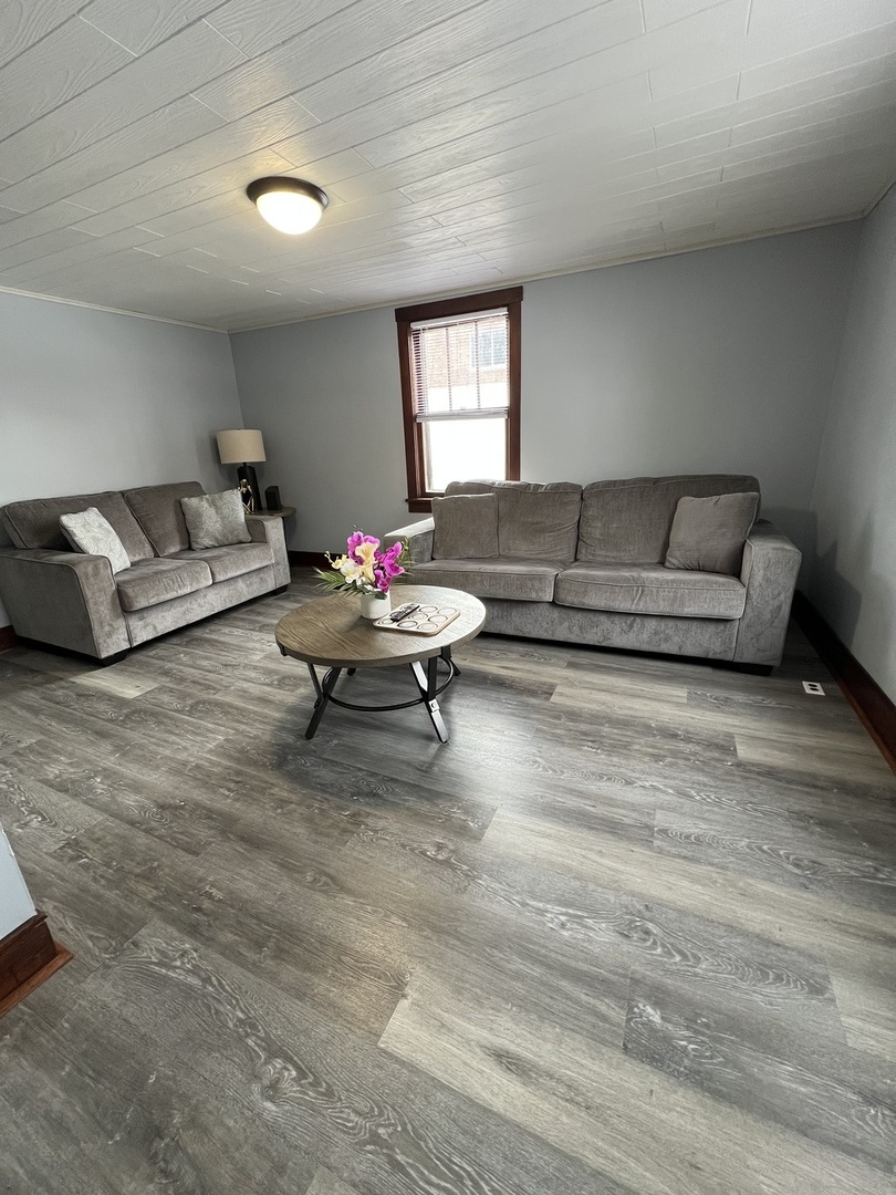 Welcome home to comfort, flexibility, and location! This 2-bedroom home includes a spacious loft that can easily function as a third bedroom, office, or flex space. Updated flooring throughout and a sun-filled living room create a bright, welcoming feel. The full bath has been refreshed. Detached 2-car garage and private driveway provide ample parking. Best of all? You're just a short walk to the charming Woodstock Square and the Metra train station; enjoy coffee shops, restaurants, festivals, and an easy commute all right outside your door. Clean, move-in ready, and perfectly situated.