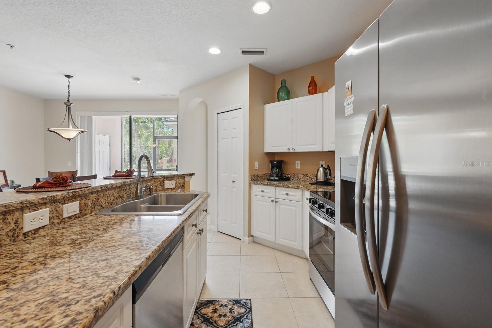 Motivated Seller, Incredibly Maintained!! Fully furnished, ground-floor condo with covered carport in the gated Avila at Palencia. This turnkey-unit offers an open living and dining layout, kitchen with granite countertops, new stainless steel appliances, breakfast bar, and stacked washer/dryer. Dual sliding doors lead to a screened porch with storage, and French doors open to a flexible office/bonus space. Split-bedroom floor plan with private primary suite featuring walk-in closet and ensuite bath. Tile in main areas, carpet in bedrooms. Enjoy ALL Palencia amenities including pools, fitness center, tennis courts, and dog park and more. Walk to schools, Publix, Starbucks, and dining.
