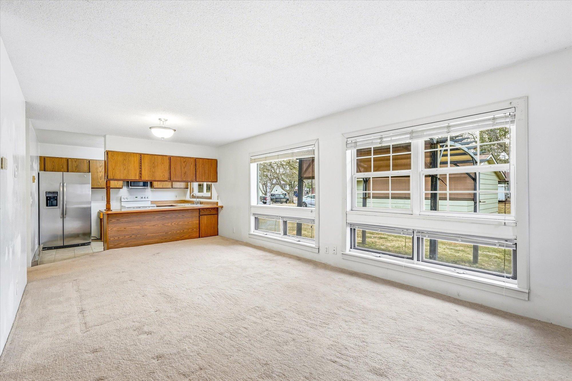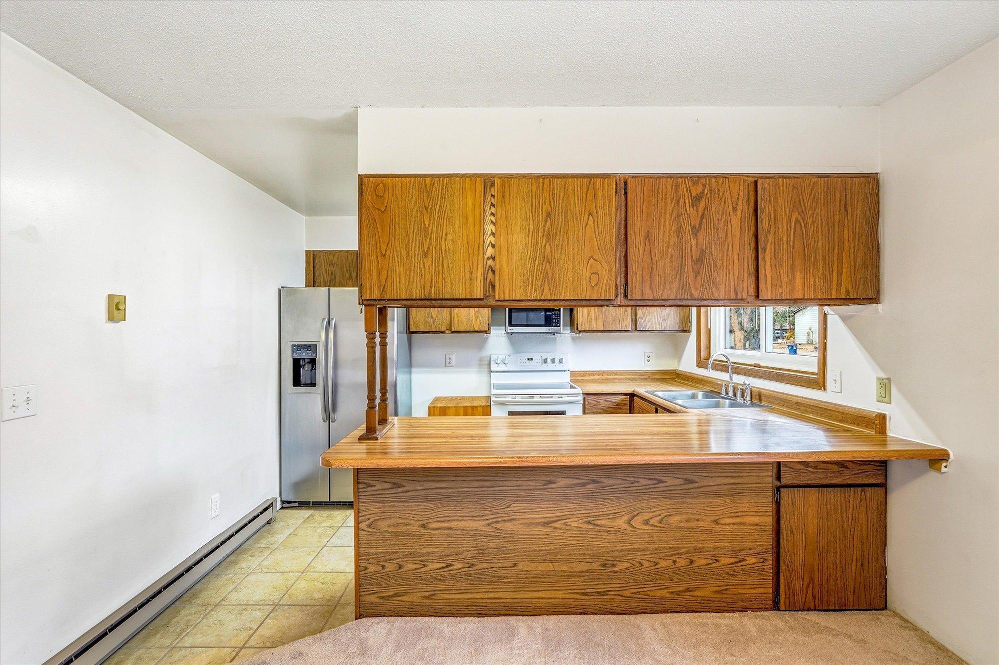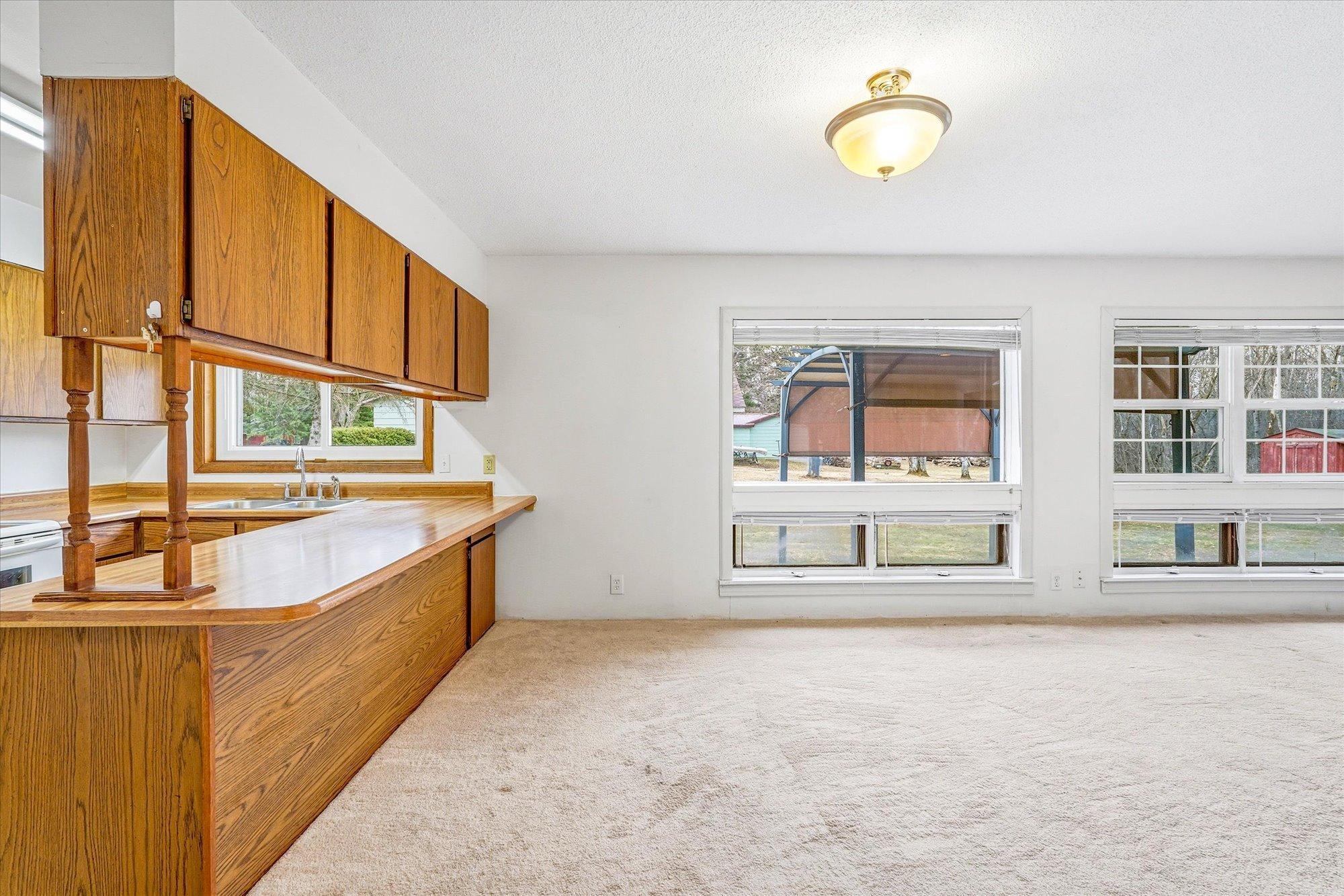 NEW PRICE- 3-Bedroom Home with One-Level Living.Enjoy effortless one-level living in this inviting 3-bedroom home featuring unique roof lines with large yard. Detached 2.5 car garage with metal roof along with a carport 10x20, 9ft tall for that extra truck or car. The efficient galley kitchen offers a window overlooking the yard and a handy breakfast bar for quick easy meals The bright living room offers large windows that fill the space with natural light, while the back patio and canopy provides the perfect spot to relax and enjoy wildliferight in town. A truly special blend of convenience, character, and nature.