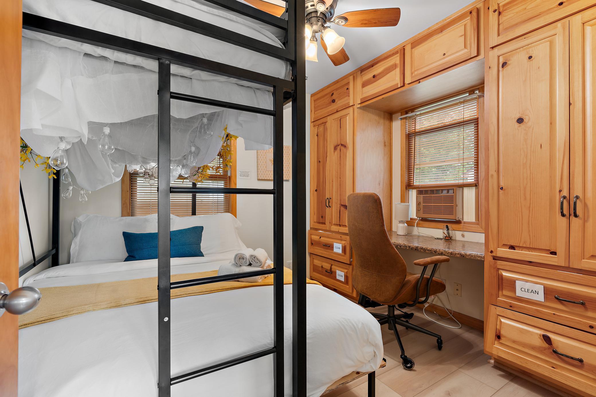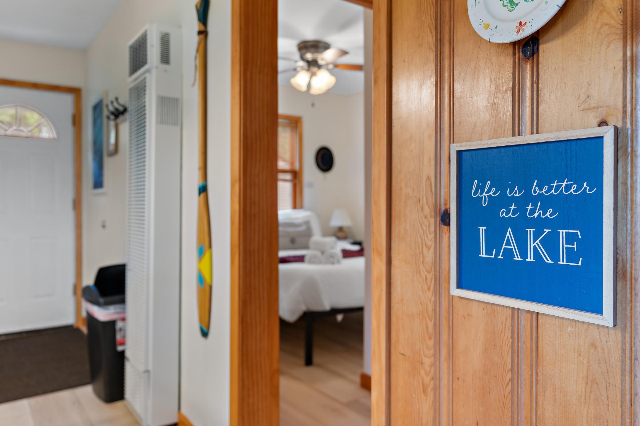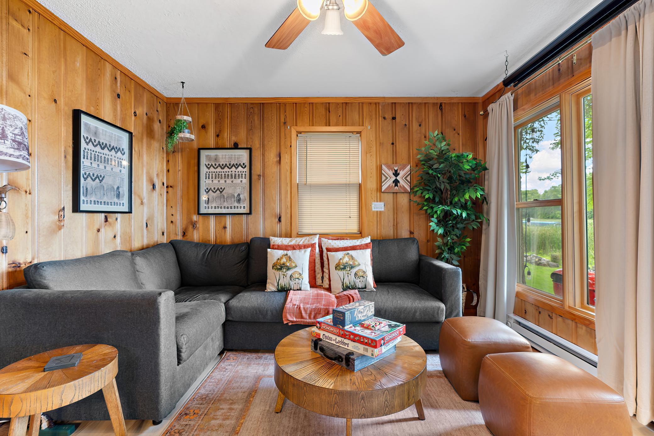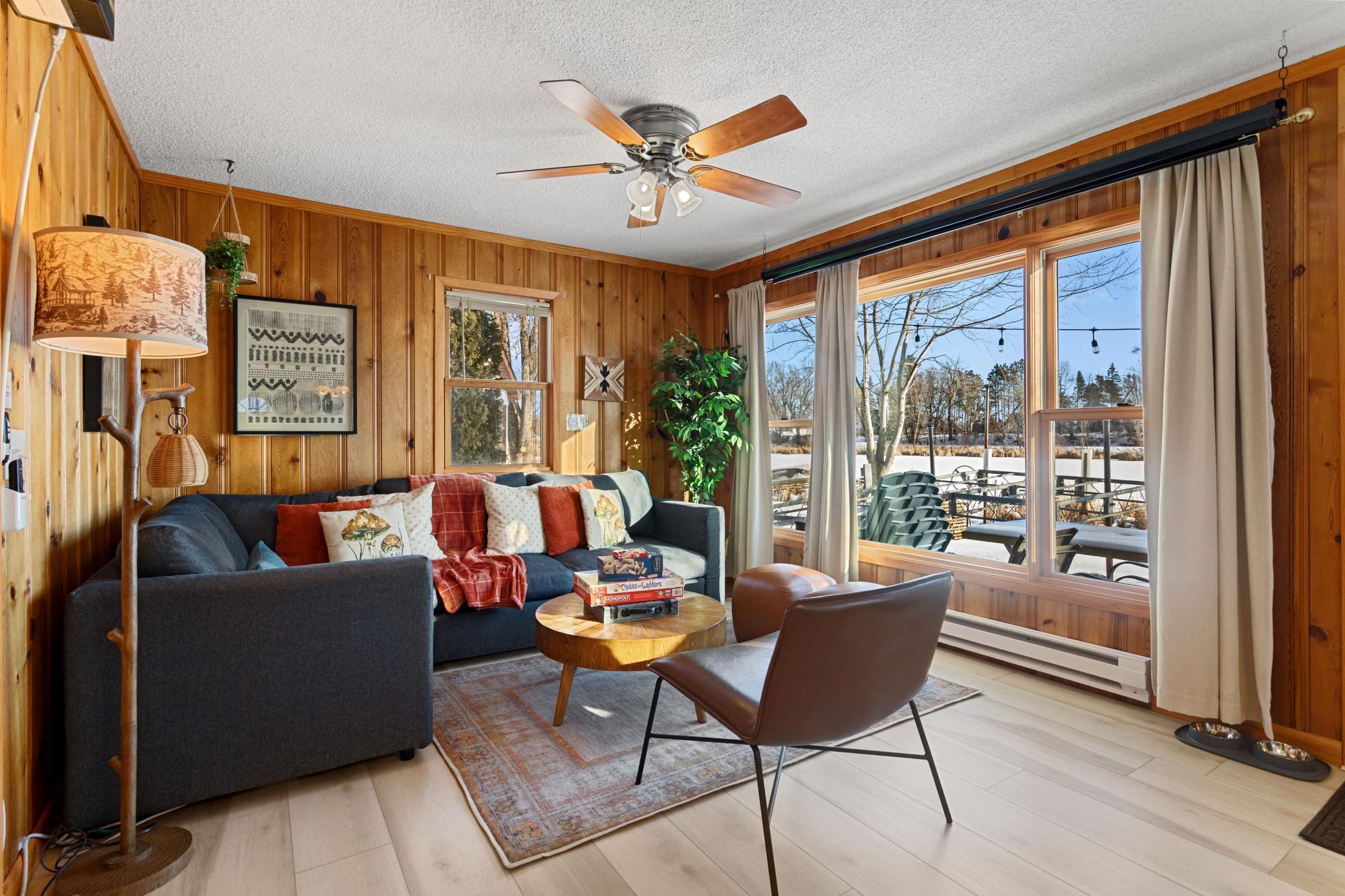 Welcome to the Pelican Bay Cabin. Located only 45 mins. from the Twin Cities in the Chisago Lakes Area & situated on a quiet bay on South Center Lake. It's the perfect getaway only minutes from quaint, downtown Lindstrom, Taylor's Fall and St. Croix Falls, Trollhaugen & Wild Mountain Ski Resorts, wineries, restaurants, cafes and more. Currently being used as a short term rental, this home is the perfect fit for someone who wants a lake cabin within driving distance to the Twin Cities, or an investment property or if you just want a manageable lake home with city water and sewer. Numerous updates and Northwoods character with: built-ins, solid six panel doors, large picture window overlooking the lake, walkout to the deck and lakeshore. Easily manageable two bedroom, one bath home with numerous recent updates. New flooring, painting, landscaping within last year, along with previous owner updates. The previous owner records show the roof, windows and siding all replaced, along with a new maintenance free deck, a new 2 car garage in 2020, paver driveway 2019, new furnace in 2021(home also has supplemental baseboard heat), laundry installed and the kitchen was remodeled in 2013. Comfortable all winter with the gas wall mounted gas furnace.