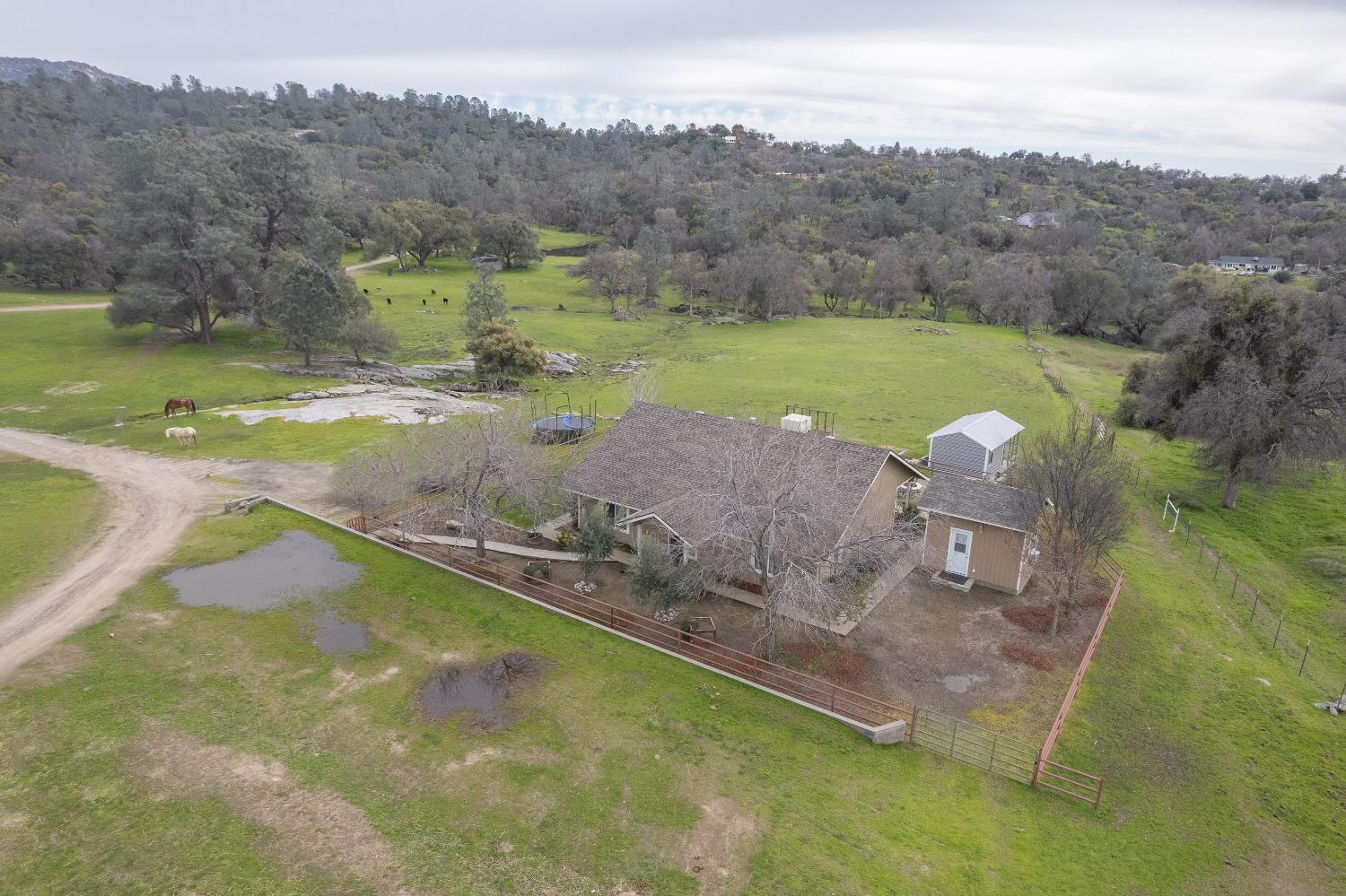 Price improvement! Seize the opportunity to own this remarkable family-owned ranch in Prather, CA, established since 1912. This sprawling 125+/- acre property offers three distinct residences and an array of amenities. The main home has a newly remodeled kitchen with granite counters, and fresh paint that boasts 5 bedrooms and 2.5 bathrooms with an attached Airbnb unit with 1 bedroom, 1 bathroom, Live Oak Cottage, providing an additional income stream. Outside, you'll find an entertaining pool with a surrounding deck, perfect for enjoying summer afternoons. Just down the way, discover a spacious 5-bedroom and 3-bathroom triple-wide manufactured home featuring granite counter tops, custom kitchen, oversized laundry room pantry in one, remodeled main bath and composite decking. This home is perfect for hosting visitors or renting. Across the way is a charming 2-bedroom and 1-bathroom home with a 1-bedroom, 1-bathroom tiny house offering cozy living with modern updates. Additionally, an 1800 sq ft office space caters to various business ventures, complete with a backup generator for uninterrupted operations. The property comes with two barns, solar panels (main house 100 panels & barn 16 panels), and perimeter fencing that ensure sustainability and efficiency. With each residence situated on 5+/- acres, along with a spring fed pond, livestock pens, round pen, and pastures this property presents endless opportunities for multi-generational living, leisure, and income generation.