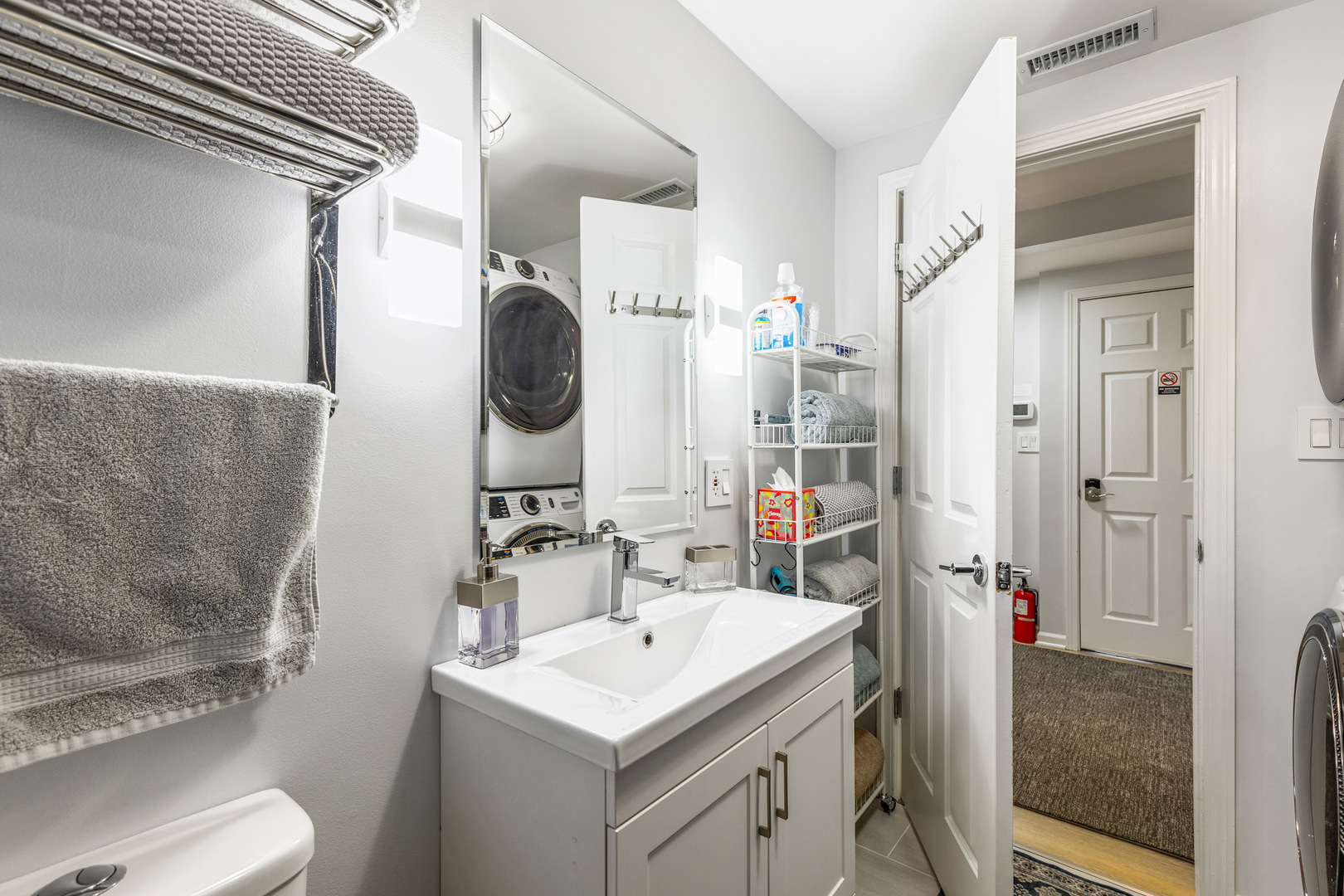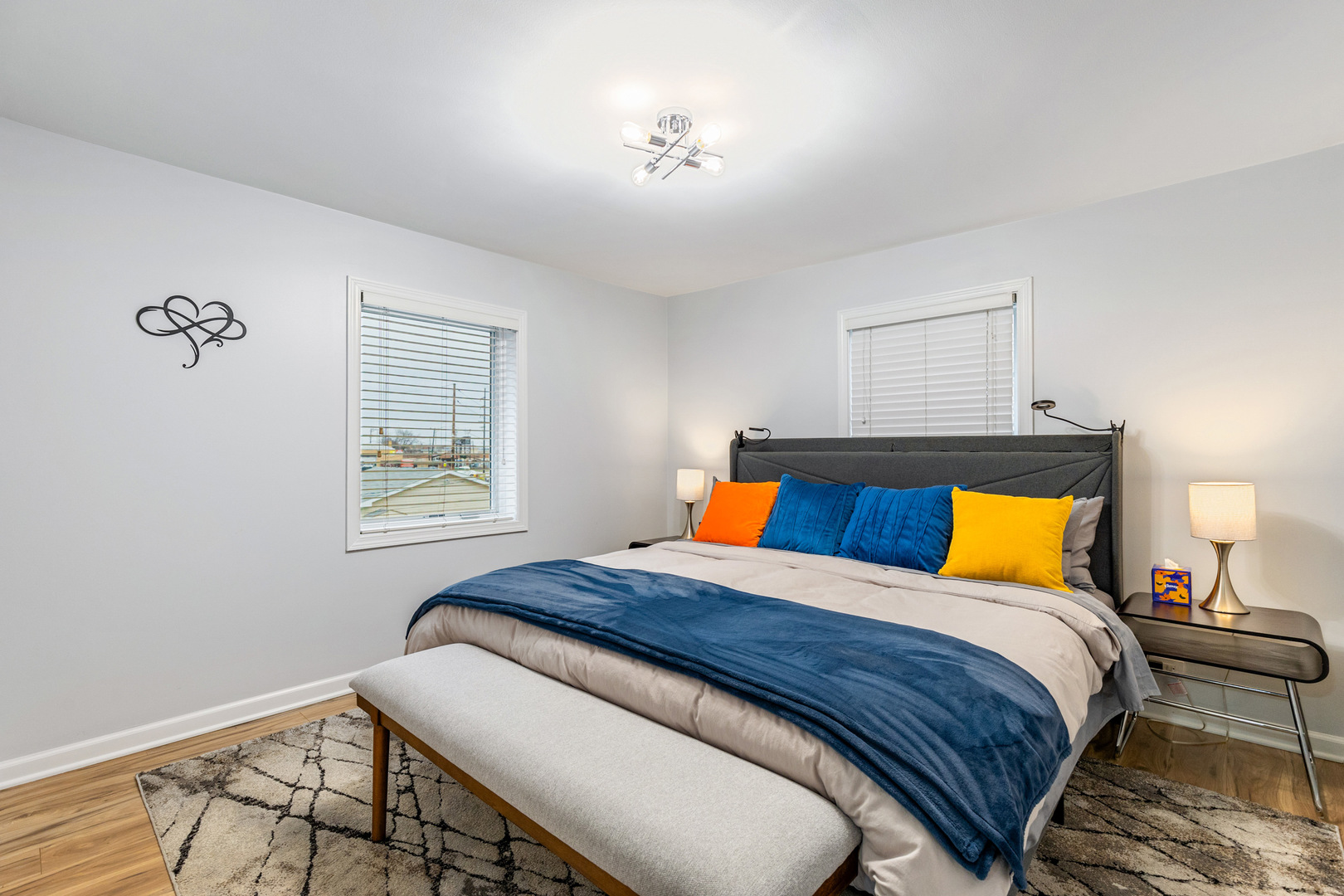 Stunning , freshly remodeled, FULLY FURNISHED AND MODERN apartment located on the second floor, featuring 2 bedrooms and 1 bathroom. Available for short-term rental only. Spacious bedrooms feature one king and one queen bed plus sleeper sofa - apartment sleeps 6 total. Kitchen is equipped with everything you may need for a comfortable stay: pots and pans, dishware and mugs and even a nespresso coffee machine! All utilities are included, along with local TV channels, Netflix and high-speed internet. The unit offers a dedicated workspace, central heating and air conditioning and in-unit washer and dryer (laundry soap and cleaning supplies included). Fresh linens and towels are provided for your convenience. Nothing to bring except your suitcases! No pets. NO SMOKING OF ANY KIND , including vaping or e-cigarettes, is permitted anywhere on the premises, including outdoor areas. Located in a quiet area but close to O'hare, train station, highway, multiple stores and restaurants.