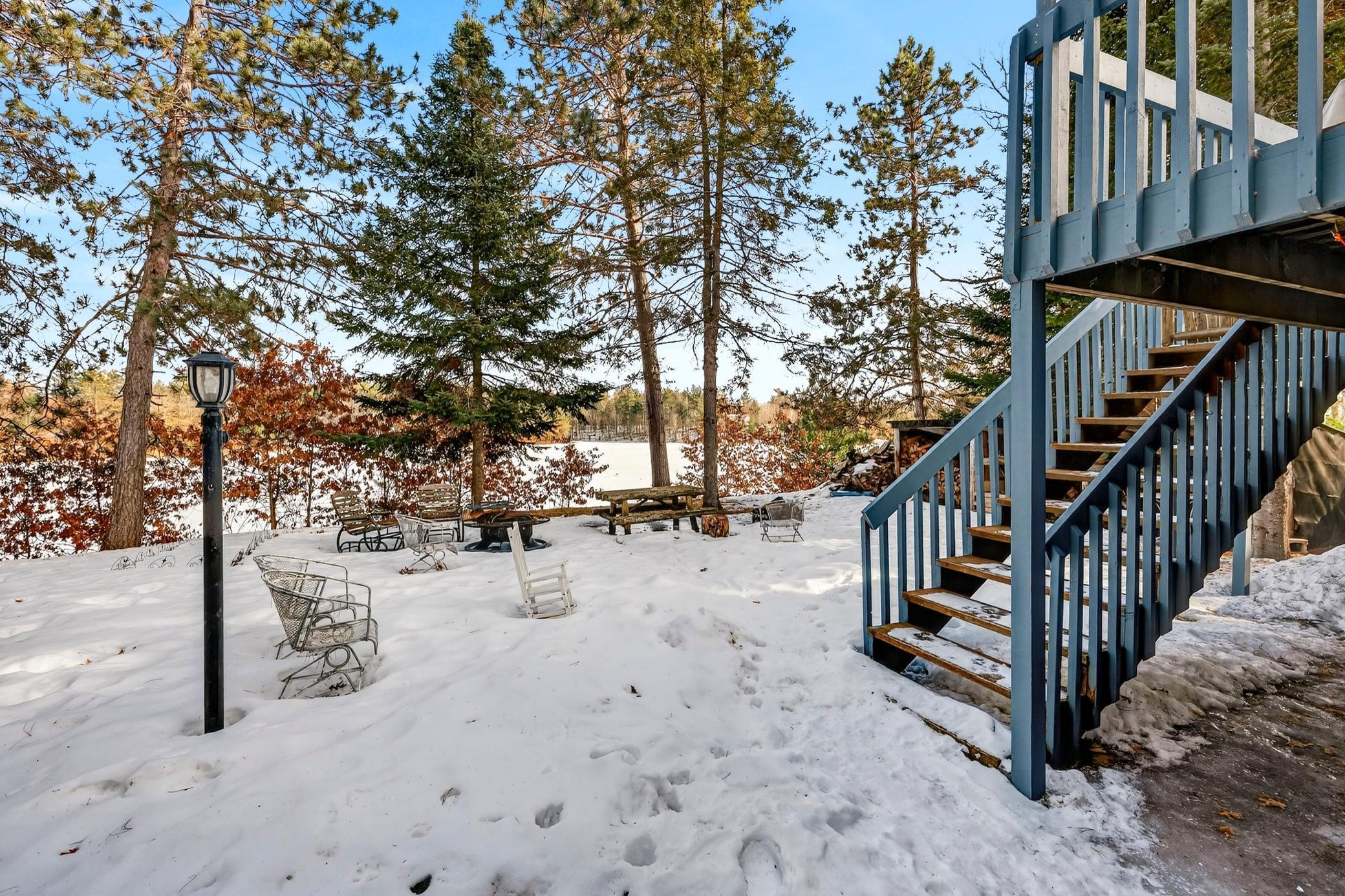 Nestled in the serene embrace of Hidden Bay, this enchanting 4-season cabin beckons adventurers and dreamers alike to Lost Lake's untouched shoreline. Spread across 18 sprawling acres, this idyllic retreat boasts 677 feet of nature's masterpiece. Inside, the updated abode features 3+ charming bedrooms, 2 bathrooms, an office, a den, plus a dry bar for when you fancy a sip of something delightful. With several bonus room options; these offer versatility galore. The walkout basement to the lakeside firepit offers recreational fun. Outside, you'll find a single-car detached garage ready to house your lakeside toys. Share the 18 acres with three other cabins, cabins are rentable (up to 14 consecutive days). Whether it's summer kayak trips or winter snows, this haven proves that getting lost in nature can be the best way to find yourselfespecially when Lost Lake is your compass. Positioned opposite Burnett County land and a stone's throw from thrilling UTV/ATV trails, various recreational lakes, and lively bar/grills, this cabin isn't just a retreat; it's a lifestyle waiting to be embraced
