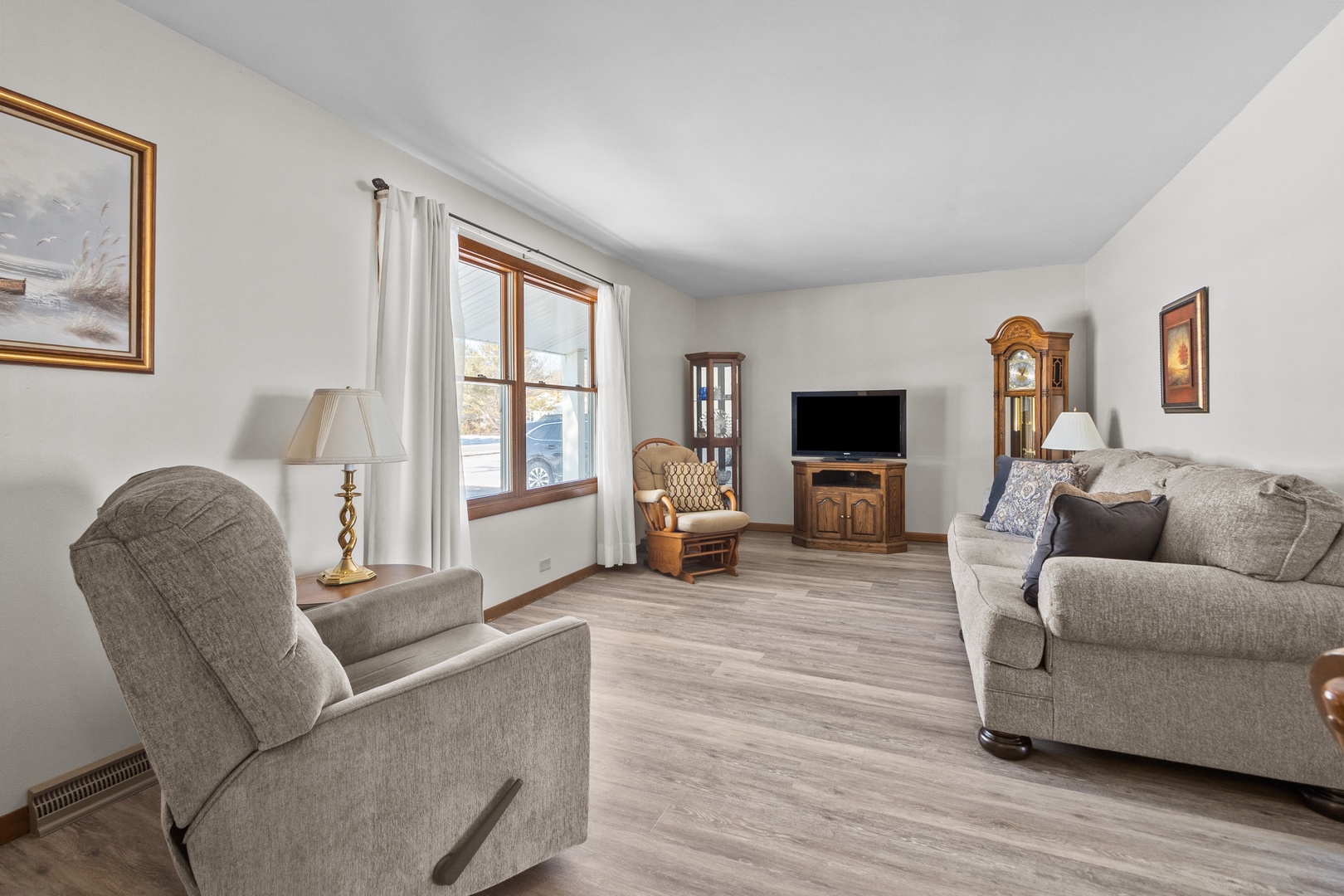 *Multiple offers have been received. Seller is requesting that Highest and Best Offers be written on the Multiboard 8.0 contract and be submitted by 3pm, Thursday, Feb. 5.*. Move right in to this wonderfully cared for ranch home! Inviting from the moment you pull in the drive! Once welcomed inside you'll enjoy neutral decor with easy-to-clean plank flooring throughout the main living spaces with hardwood flooring in the bedrooms. The kitchen and adjoining dining area overlook the 1/3 acre property, deck and out into farmland. Three generous size bedrooms and two full baths complete the main floor. Finished basement space provides an enormous family room! Create your perfect space to lounge with an entertainment zone, game space, studio, playroom it's up to you! Basement space includes lots of storage space, too. Oversized 2+ car garage. Quick close possible. No Association Fees here!