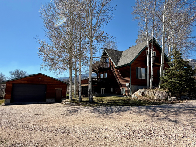 Beautiful cabin retreat near Bear Lake featuring stunning lake views and a peaceful setting surrounded by mature trees. This property includes an oversized 32'x36' garage with R39 insulation in the garage walls and 10'x16' garage door, perfect for boats, toys and extra storage. Enjoy outdoor living on the spacious wrap-around deck and take advantage of the convenient location near Bear Lake West Golf Course and Coopers Restaurant and Bar. HOA amenities include a swimming pool, tennis and pickleball courts, private beach access, and golf discounts. Ideal as a year-round home or vacation getaway! No Short-term rentals.