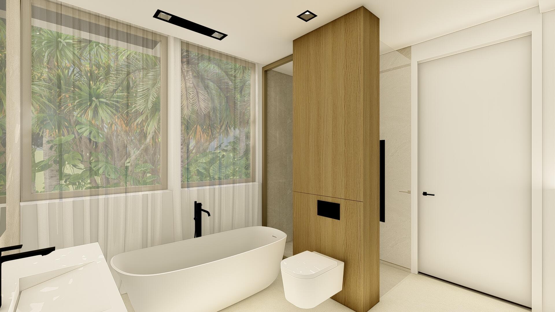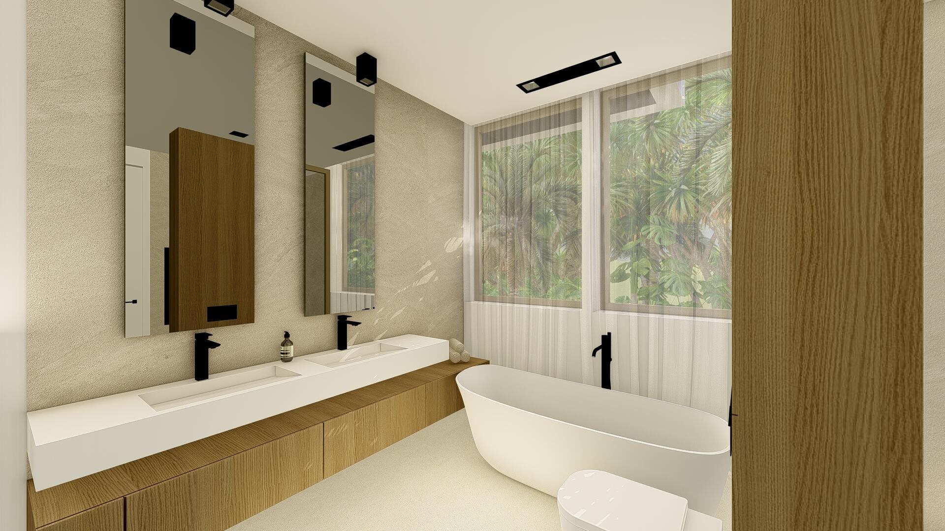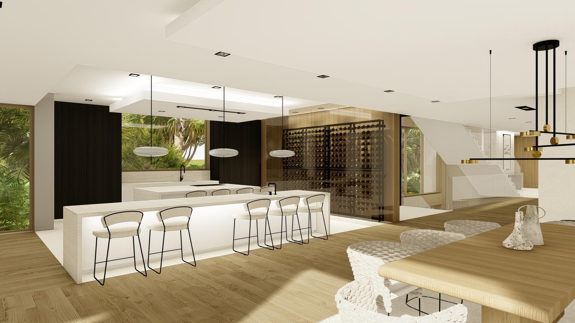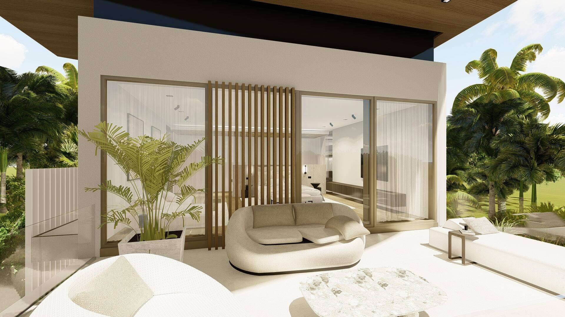 This organic modern jewel on a walled and gated lot along Billionaire's Beach takes privacy, security and world-class amenities to a whole new level. Three of them, in fact. The ultimate beach house (now under construction and slated for completion in the spring of 2026), new Villa Tropezina is being masterfully developed by Sabal Development and artfully crafted by Sabal Luxury Builders, both under the direction of Pascal Nicolai. It was beautifully designed by Togu Design. Ensconced on a lush linear sloping lot that extends from a pristine Atlantic Ocean Beach to a secluded Intracoastal inlet, this fluid, light-infused, three-story smarthouse juxtaposes organic finishes and creamy natural tones with modern design to create a zen-like serenity.