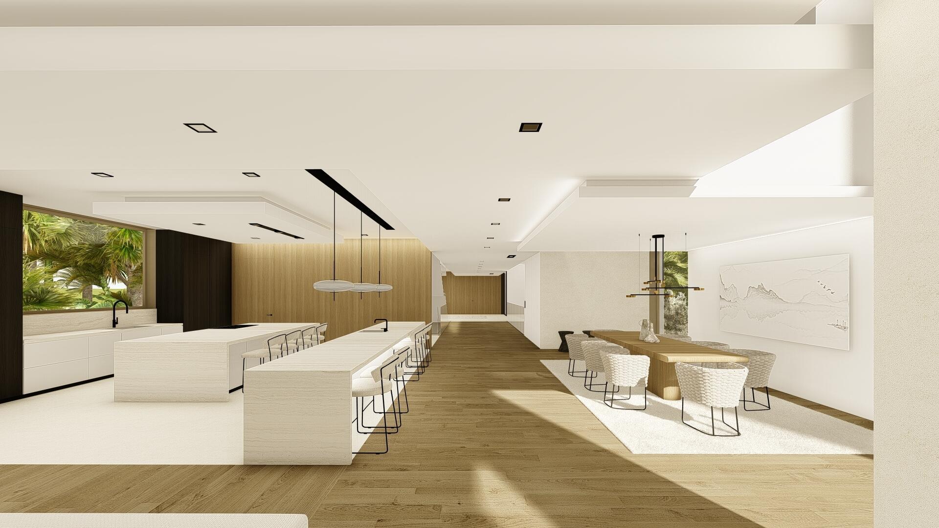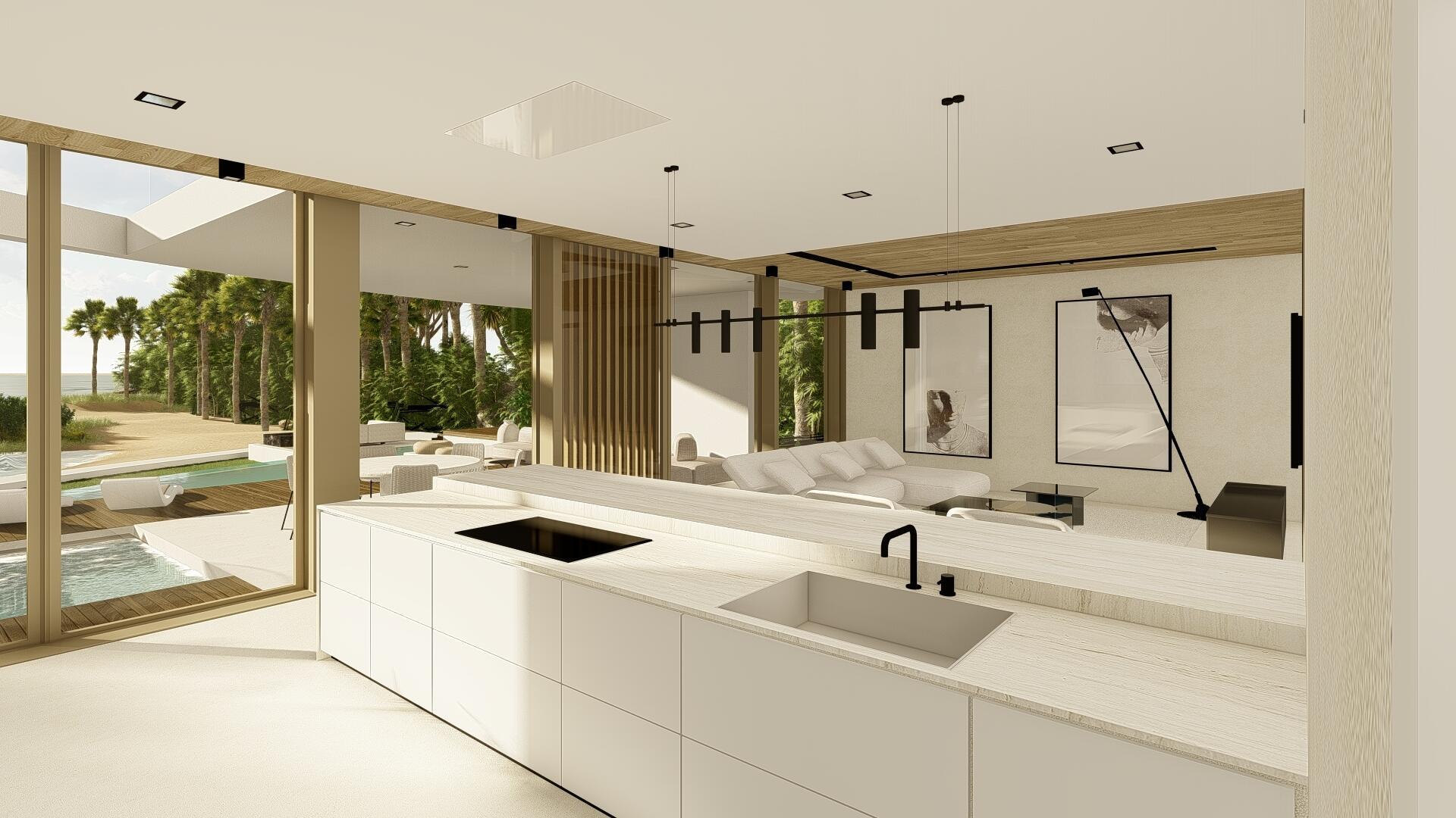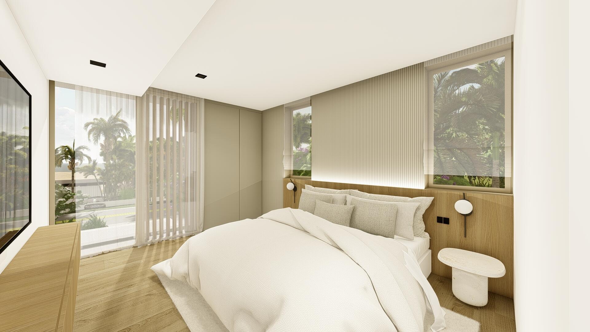 This organic modern jewel on a walled and gated lot along Billionaire's Beach takes privacy, security and world-class amenities to a whole new level. Three of them, in fact. The ultimate beach house (now under construction and slated for completion in the spring of 2026), new Villa Tropezina is being masterfully developed by Sabal Development and artfully crafted by Sabal Luxury Builders, both under the direction of Pascal Nicolai. It was beautifully designed by Togu Design. Ensconced on a lush linear sloping lot that extends from a pristine Atlantic Ocean Beach to a secluded Intracoastal inlet, this fluid, light-infused, three-story smarthouse juxtaposes organic finishes and creamy natural tones with modern design to create a zen-like serenity.