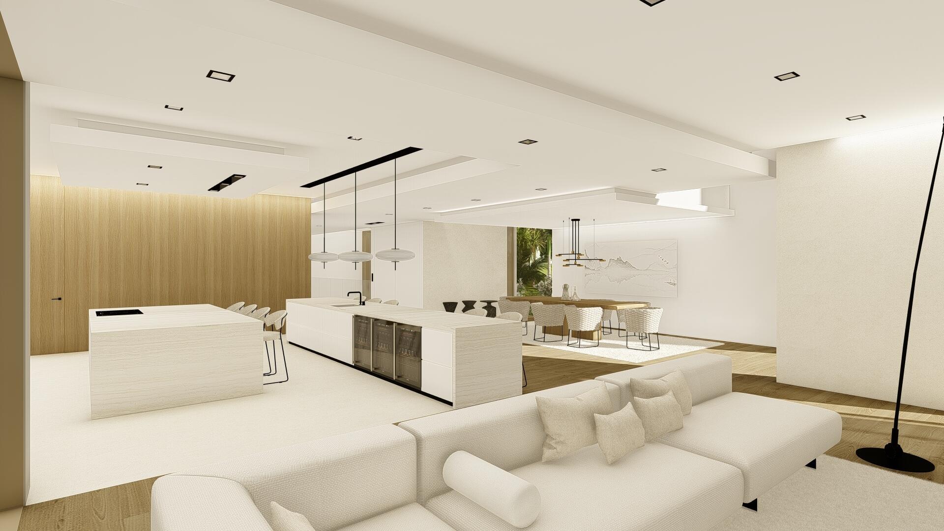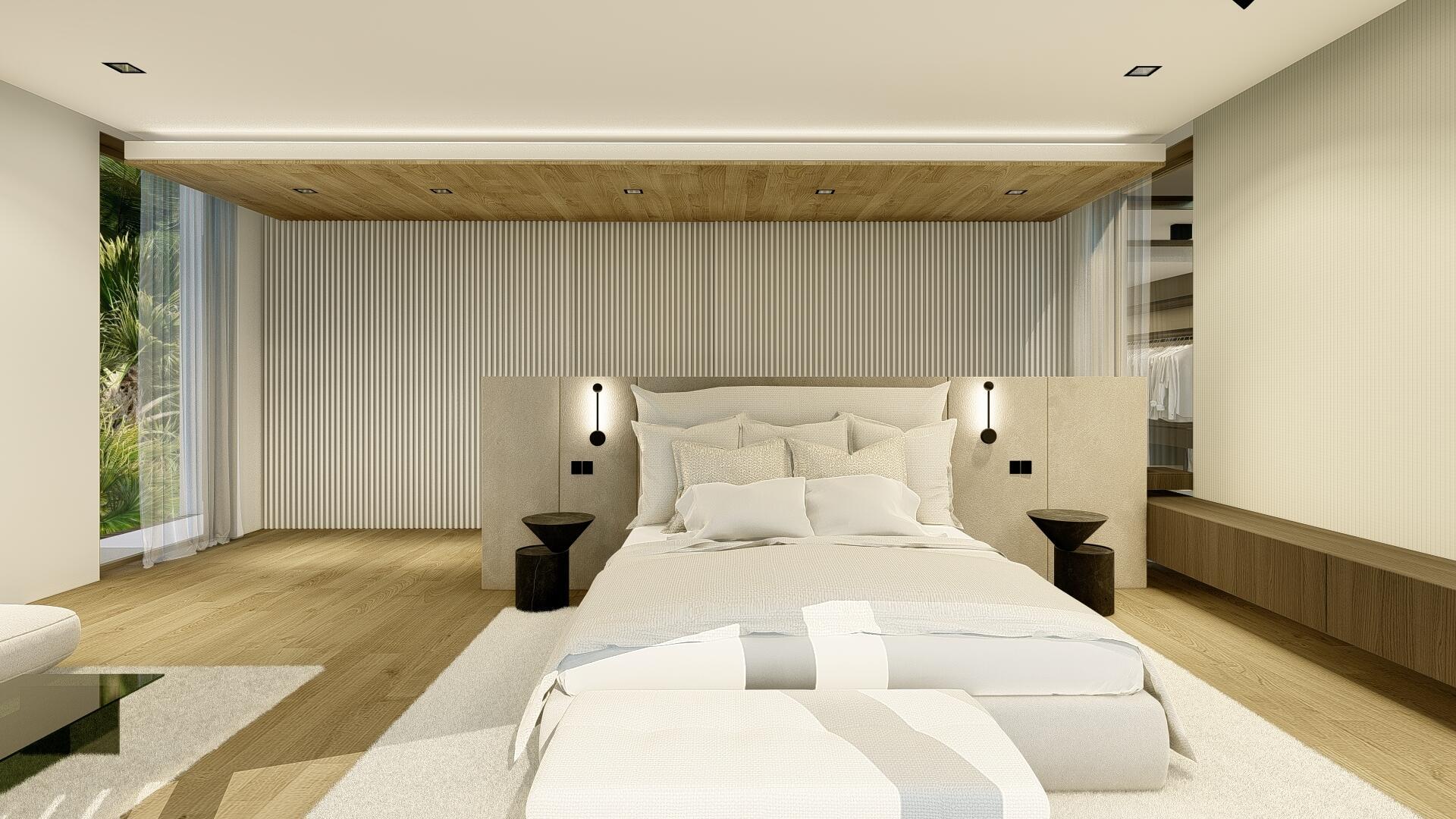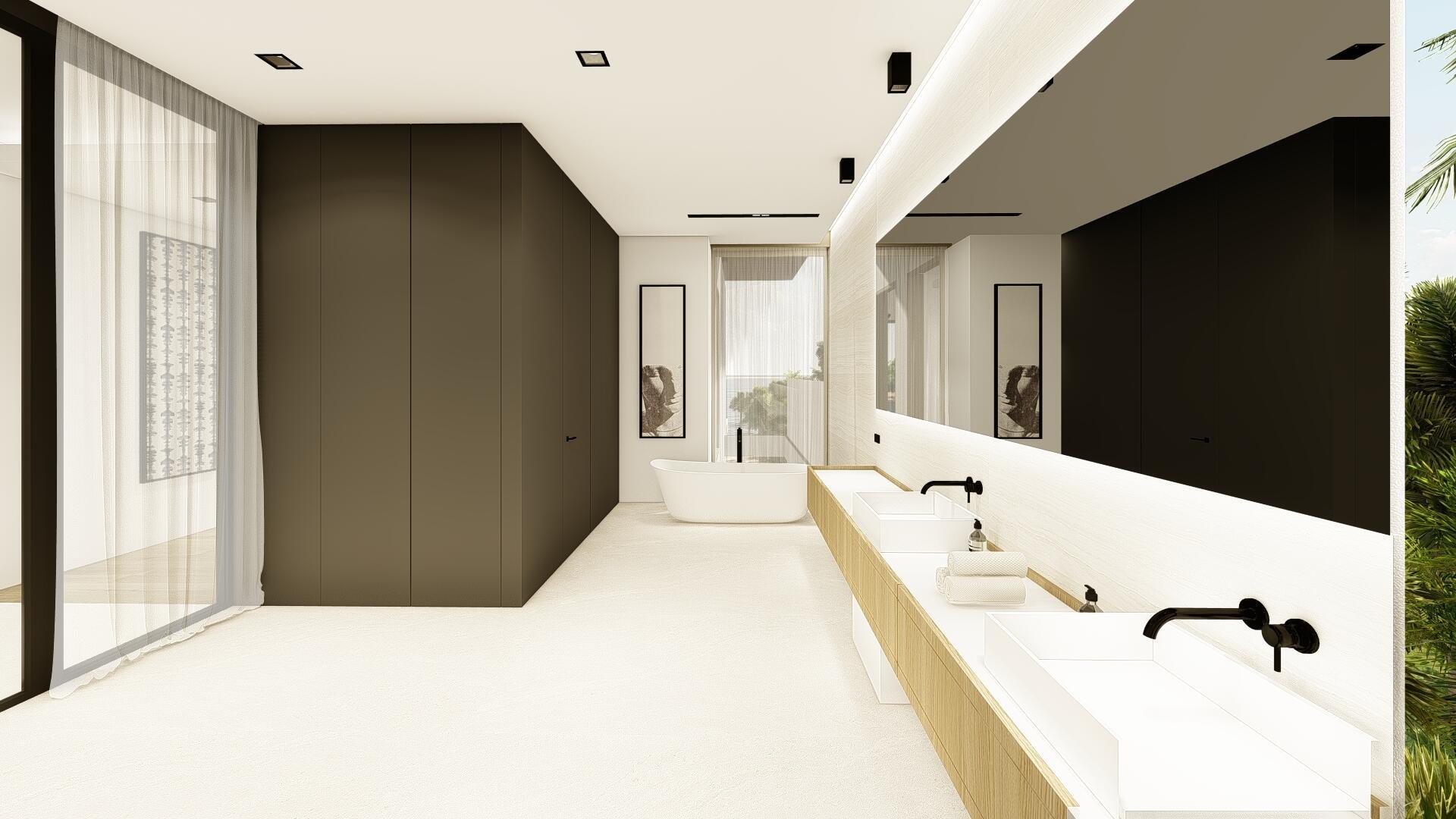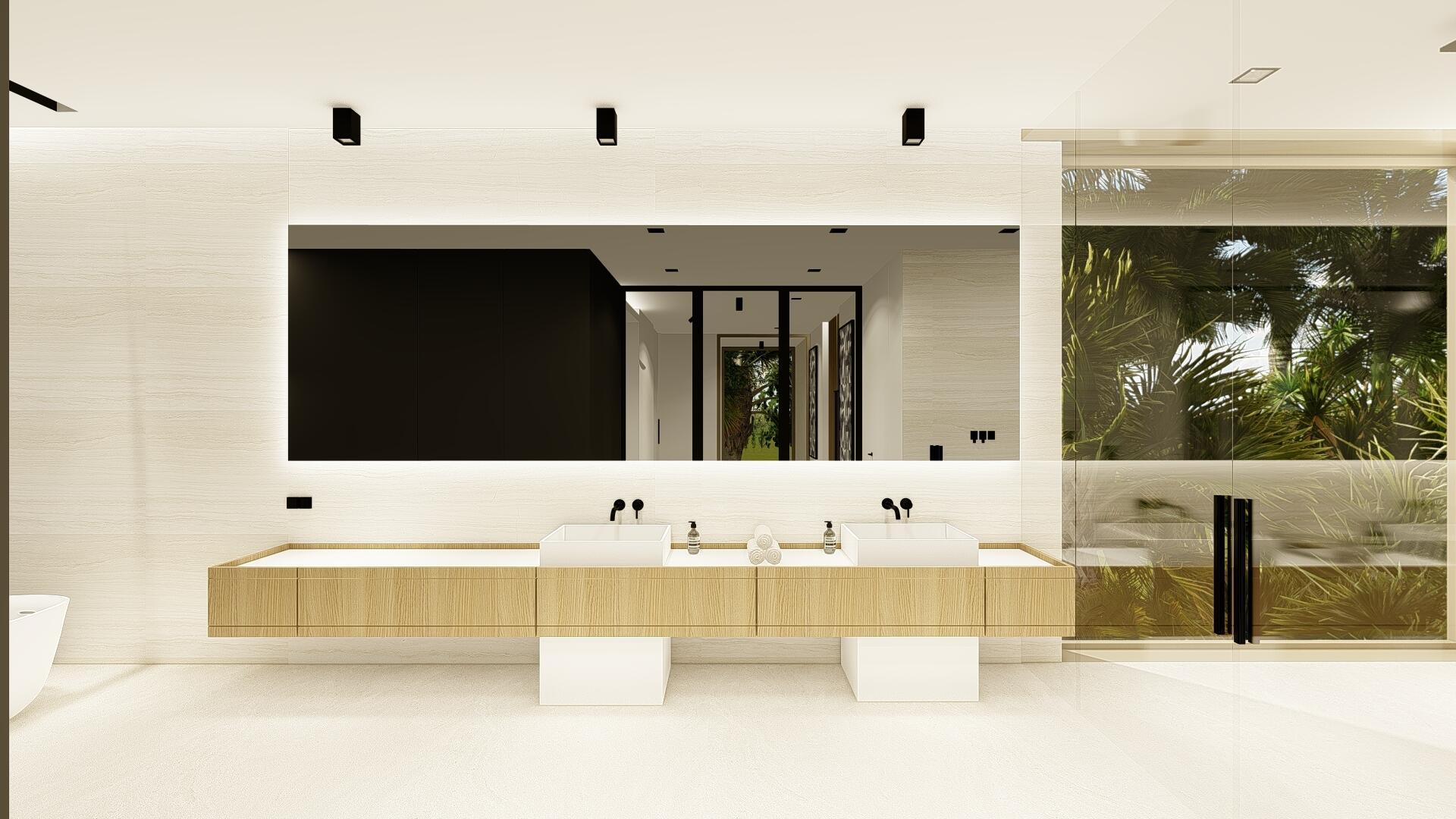 This organic modern jewel on a walled and gated lot along Billionaire's Beach takes privacy, security and world-class amenities to a whole new level. Three of them, in fact. The ultimate beach house (now under construction and slated for completion in the spring of 2026), new Villa Tropezina is being masterfully developed by Sabal Development and artfully crafted by Sabal Luxury Builders, both under the direction of Pascal Nicolai. It was beautifully designed by Togu Design. Ensconced on a lush linear sloping lot that extends from a pristine Atlantic Ocean Beach to a secluded Intracoastal inlet, this fluid, light-infused, three-story smarthouse juxtaposes organic finishes and creamy natural tones with modern design to create a zen-like serenity.