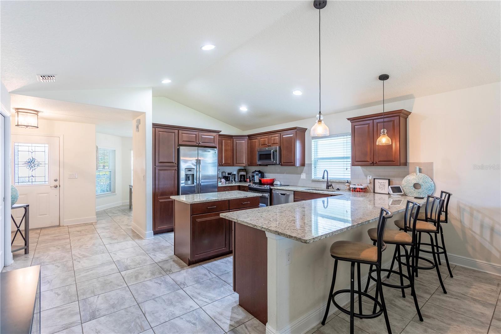 Deer Island is a residential community known for its award-winning golf course, as well as the location on the Harris Chain of Lakes. Deer Island is surrounded by Lake Dora and Lake Beauclaire. It's a gated community with an abundant amount of wildlife and a lifestyle centered around golfing, boating, and outdoor activities. It's a tranquil, secluded community where a lot of residents use golf carts on the island as a mode of transportation. You will be able to enjoy the amazing sunsets from your screened in lanai. This lovely home is ADA compliant and has several updated features including granite countertops, soft close drawers, stainless steel appliances, and ceramic tile floors. The primary bedroom offers a separate slider door to the lanai to enjoy your morning coffee and take in the beautiful scenery. It's a quick boat ride or drive to Historic Mt. Dora and about a 45 min drive to the Orlando Airport, Disney, and Universal. The low monthly HOA fee includes trash, recycling, internet, cable, and yard waste pickup. Don't miss your opportunity to look at this home, it could be yours today!