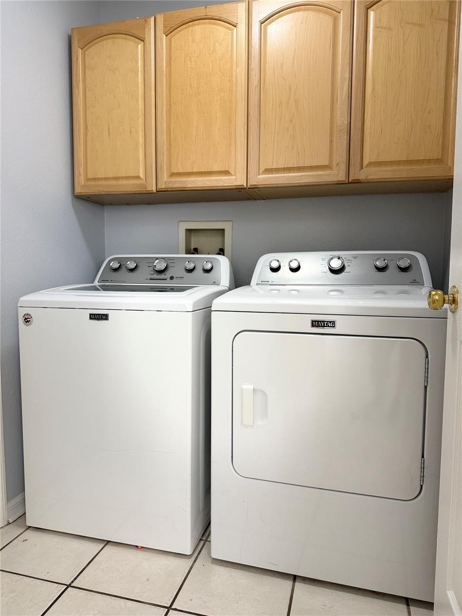 AVAILABLE IMMEDIATELY in a GATED MEADOW POINTE COMMUNITY! This attractive 3 bedroom, 2 bath, 2 car garage home features a great room floorplan with volume ceilings and split bedrooms all accented with ceramic tile plank style flooring throughout the home. The open great room plan allows for plenty of versatility. The kitchen features lots of cabinets and counter space, a quaint breakfast nook, recessed lighting, and breakfast bar seating. The master bedroom is spacious, with a private master bathroom featuring his and her vanities, a walk-in shower, a separate garden tub, and a huge walk-in closet. The two additional bedrooms are both roomy both with ample closet space too. The convenience of an inside laundry room is a bonus, and the washer and dryer are included. Gated community, fantastic neighborhood and ready for the next set of memories with a new tenant.