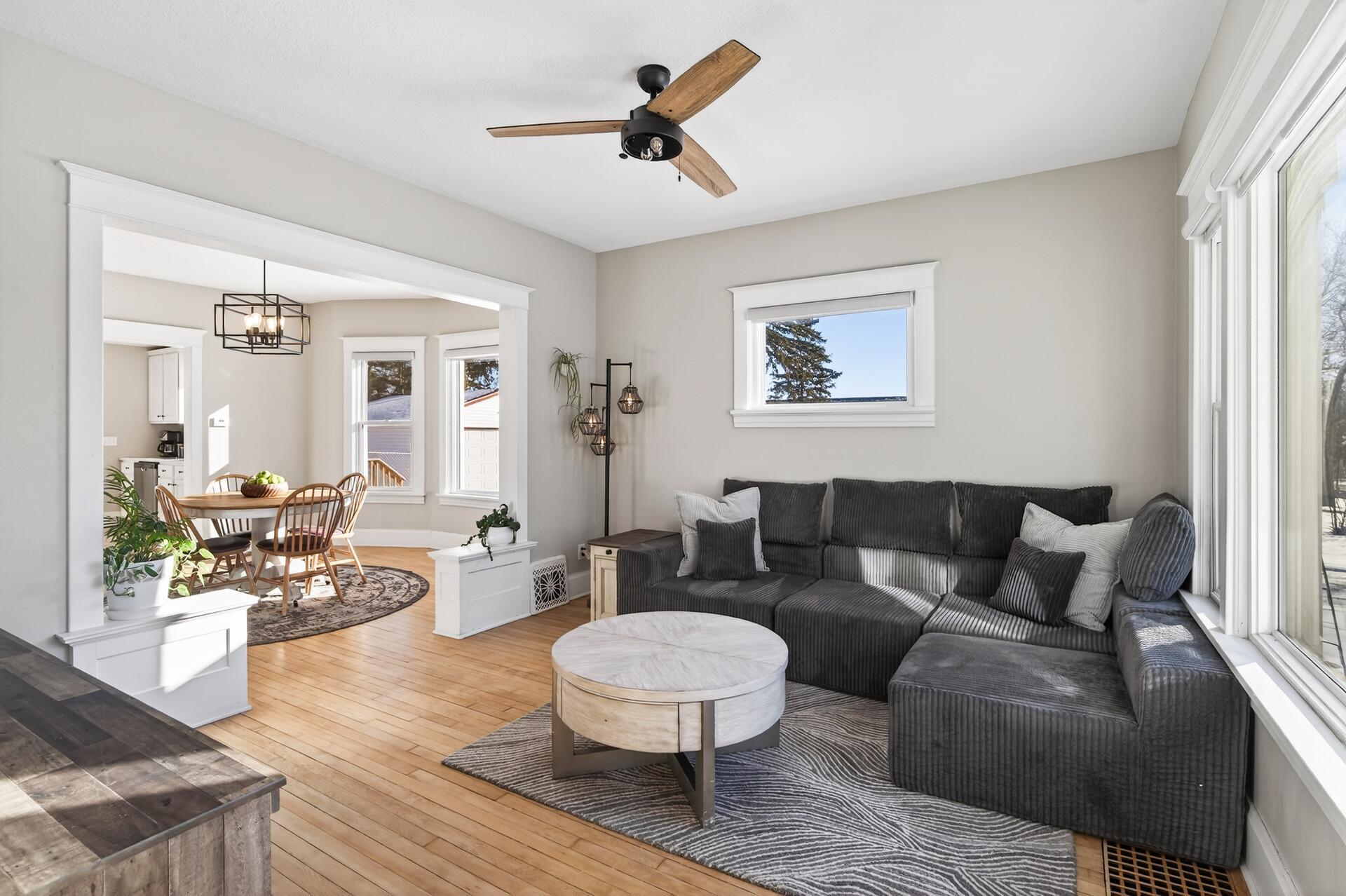 Charming 2BD/1BA one story home on a rare .53 acre in-town lot offering true one level living. Since 2021, numerous updates include roof, siding, gutters, windows, furnace, central air, water heater, cabinets, lighting, and plumbing fixtures. The remodeled kitchen (2023) features quartz countertops and stainless steel appliances, (w/ gas range), complemented by a fully renovated bathroom (2023). Beautiful refinished maple floors throughout (no carpet), high-quality window treatments for privacy, and a bright front porch perfect for morning coffee. Unfinished basement and attic provide excellent storage, with attic potential for future finished living space. Exterior highlights include an oversized 2-car garage, red barn-style storage shed, fully fenced backyard (2025), spacious back patio, and a walking distance to downtown Roberts. Don't wait, schedule your showing today!