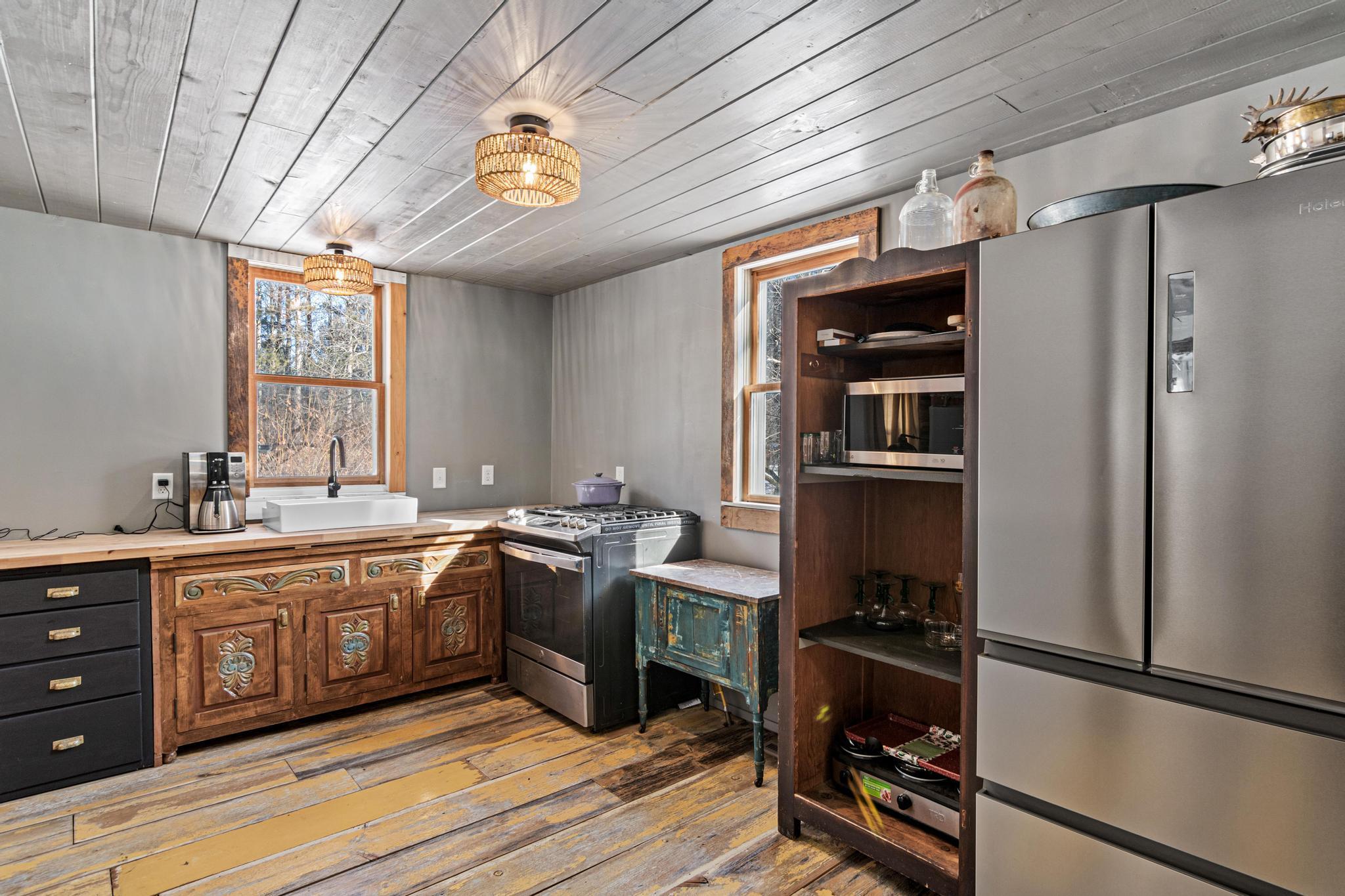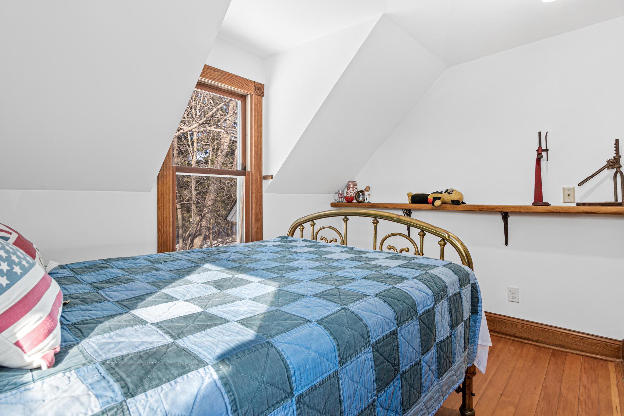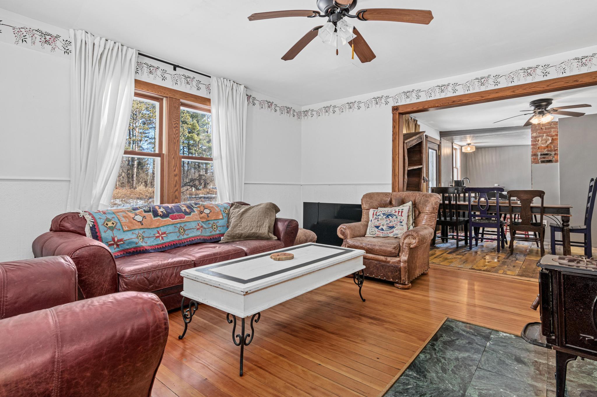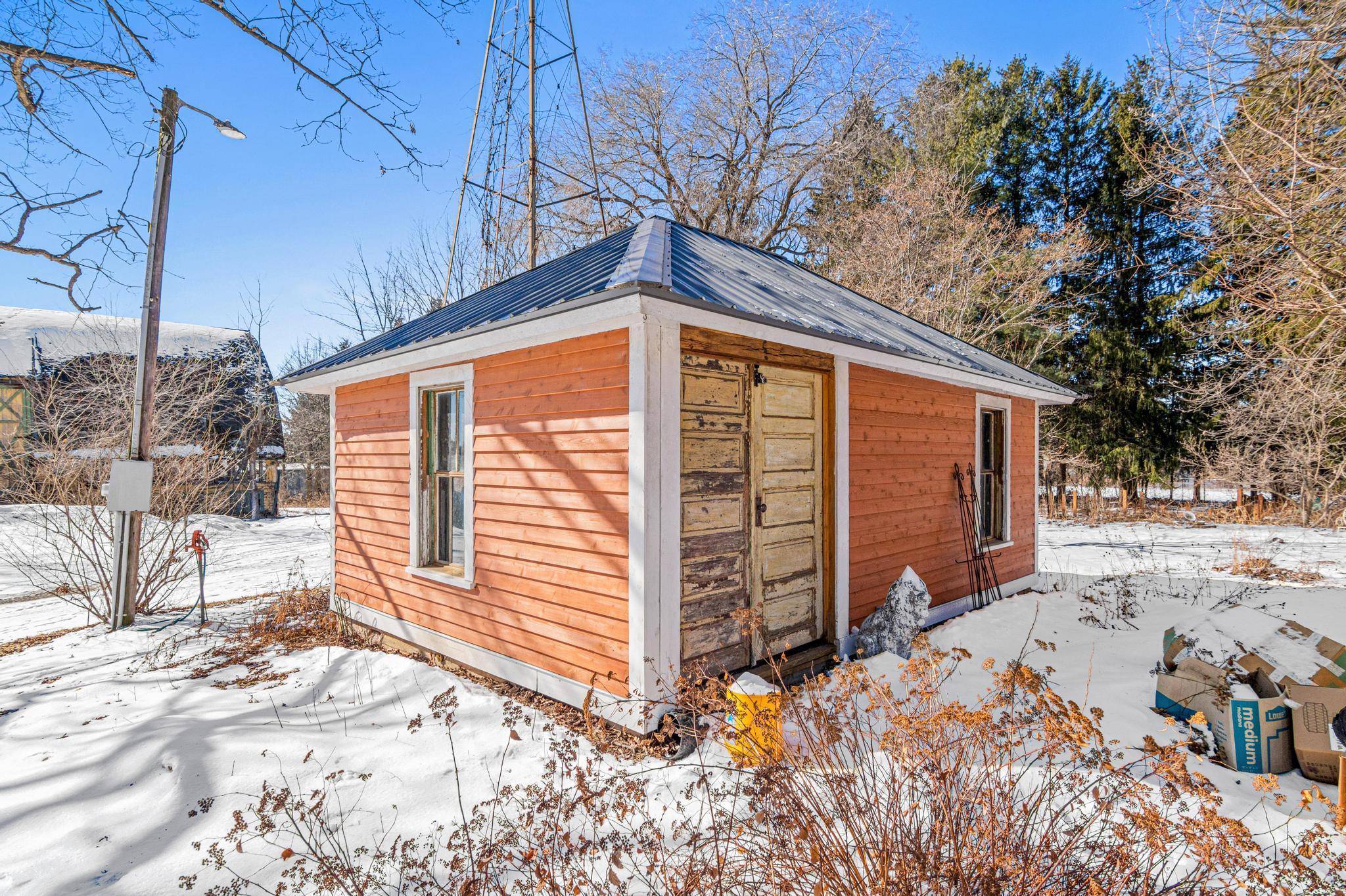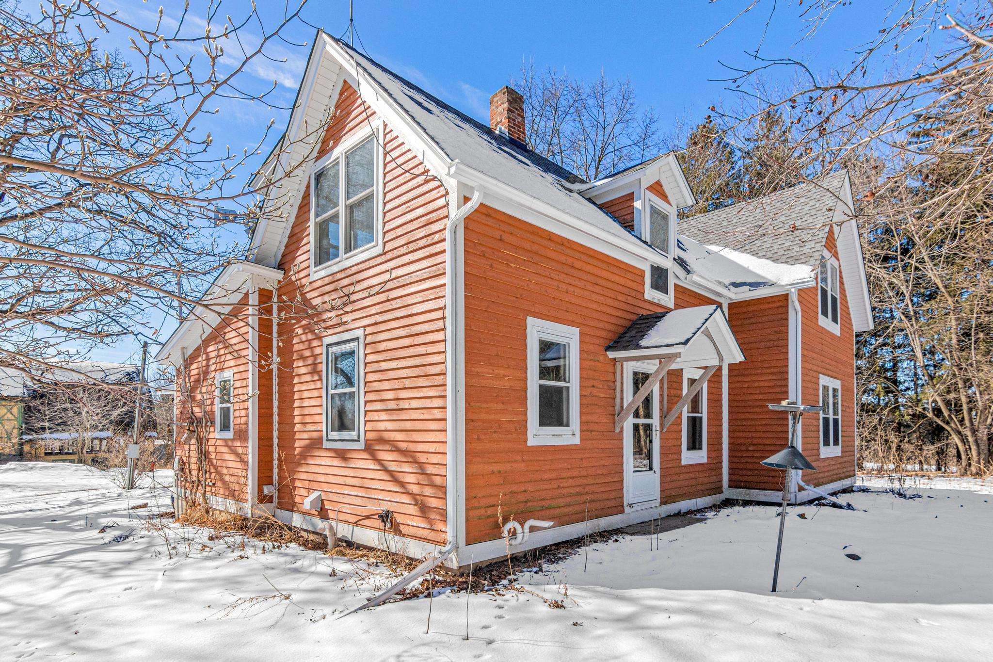 This 1864 farmhouse on 4.6-acres has been beautifully updated while keeping much of the original woodwork and character that makes it feel like home. The main level kitchen area has been recently opened up to the dining and living room to give it more of an open-concept feel in preparation for an extensive kitchen remodel. This project had to be cut short but is ready for someone to bring it to the finish line with their own personal touch and make it the kitchen of their dreams. Upstairs is just as impressive with two massive bedrooms and a great bathroom featuring a classic freestanding tub. The outside is where this property really shines - stunning gardens, walking paths, and a paver patio for warm summer nights. A historic barn that could be brought back to life or even used from reclaimed wood. The restored 4-season well house (complete with a wood stove!) is the perfect spot for a home office or studio. The roof is new as of 2022 and features leaf filter gutters. You get the privacy of the country with easy freeway access for your commute. This one is special - come see for yourself!