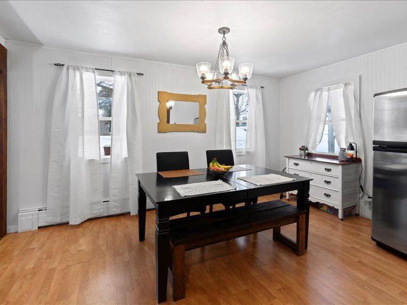 This charming 1947 home offers 1,025 finished square feet with 2 bedrooms and 2 bathrooms, making it an excellent opportunity for first-time homebuyers, downsizers, or investors.Inside, youll appreciate the bright, open-concept layout filled with natural light, main-floor bedrooms, updated bathrooms, updated electrical, and freshly painted cabinetry. Character shines through with exposed brick, shiplap accents, and a free-standing fireplace that adds warmth and charm. A four-season porch provides valuable year-round living spaceperfect for morning coffee, relaxing evenings, or additional entertaining.Recent updates include a newer roof and four season porch, while outdoor living is enhanced by a deck, thoughtful landscaping, and mature trees that add charm and curb appeal.Located on a quiet street just minutes from downtown Delano, parks, schools, and local amenities, this home offers the perfect blend of small-town charm and everyday convenience.