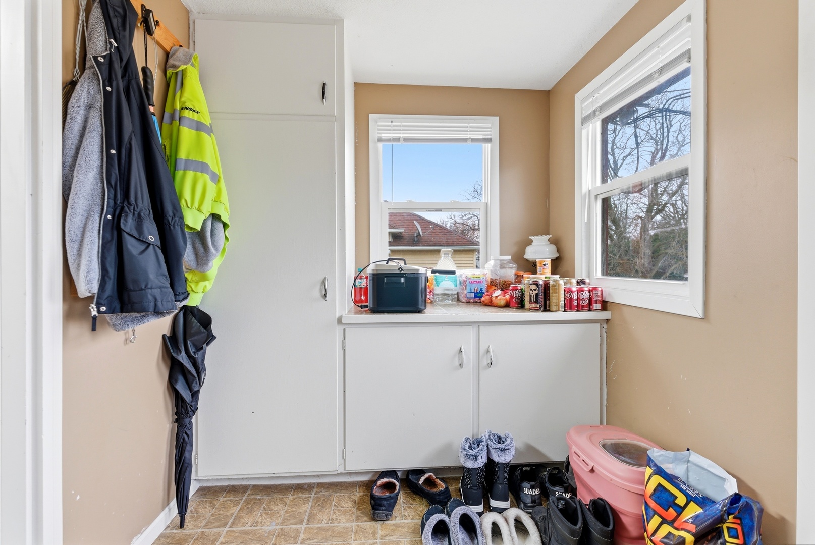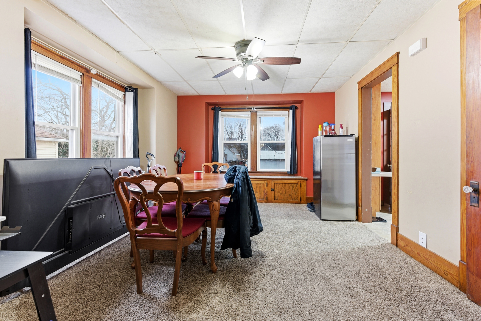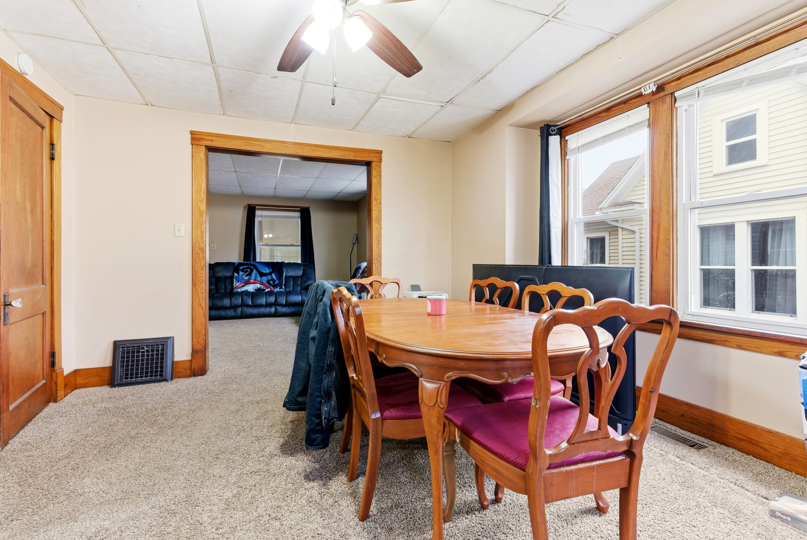 Charming 1926 bungalow blending vintage character with comfortable, functional living. This delightful home offers 3 bedrooms and 2 full baths, with the primary bedroom conveniently located on the main level. An enclosed front porch welcomes you into a bright living space; the dining room features a lovely bay window that fills the home with natural light. Hardwood floors lie beneath the carpets, ready to be revealed and restored. The kitchen showcases warm oak cabinetry and practical layout, with main-level laundry tucked into the enclosed back porch for easy access. Upstairs a versatile loft leads to two large bedrooms and a full bathroom - ideal for family, guests, or a home office. The property includes a full dry basement for storage or future finished space, plus a one-car detached garage. Recent replacement windows enhance comfort and efficiency - lowering energy costs, reducing outside noise, improving UV protection for floors and furnishings, and boosting curb appeal and resale value. Well-suited for buyers who appreciate period detail with modern potential, this home offers solid bones and many opportunities to personalize. Schedule a showing today!