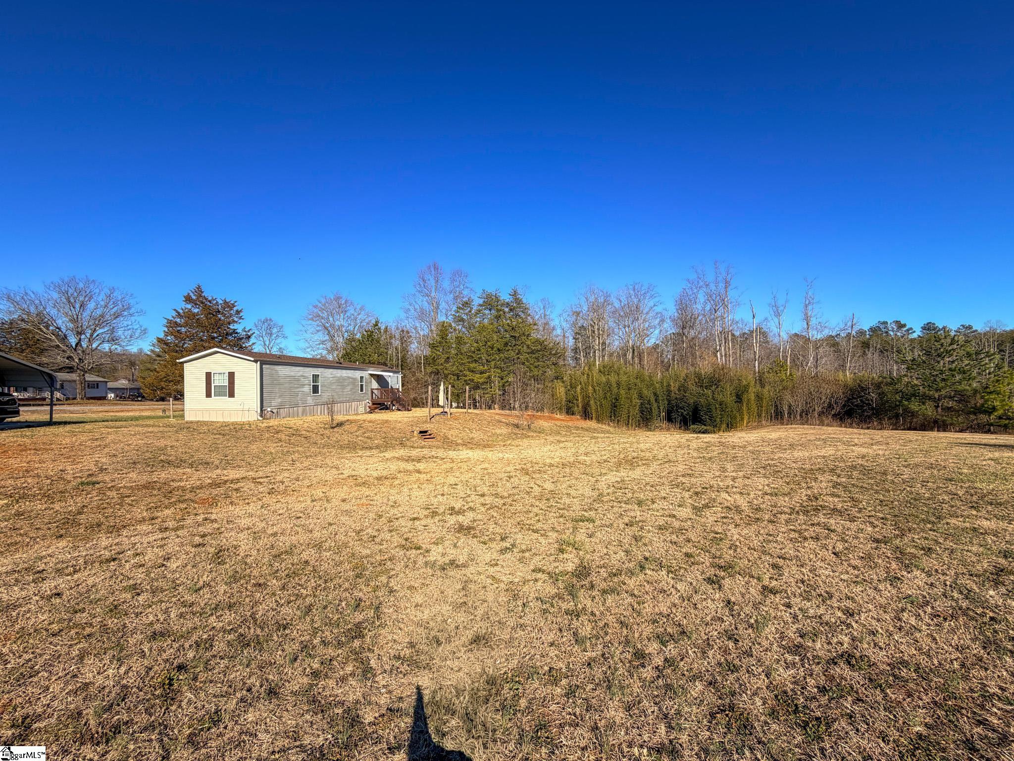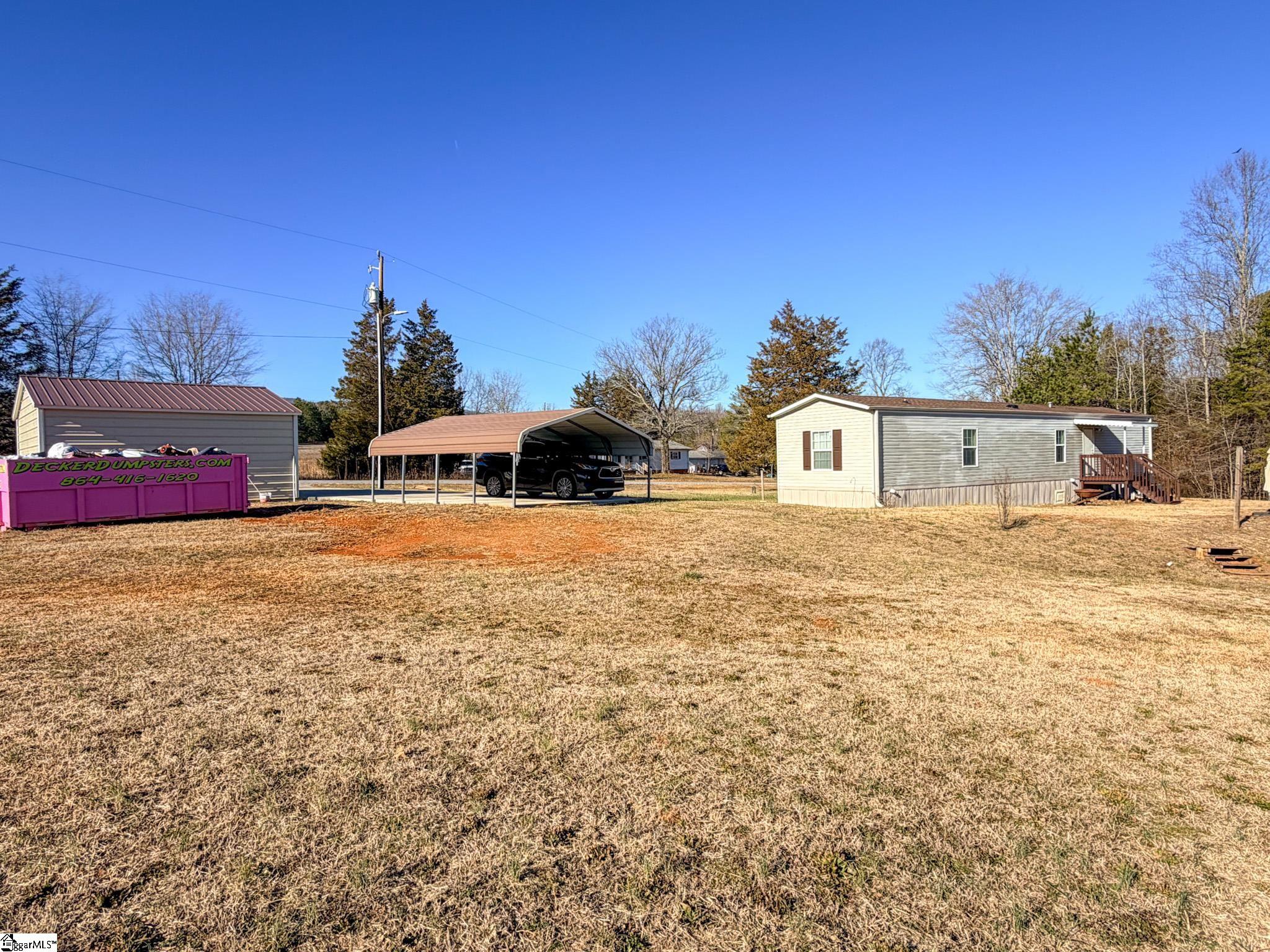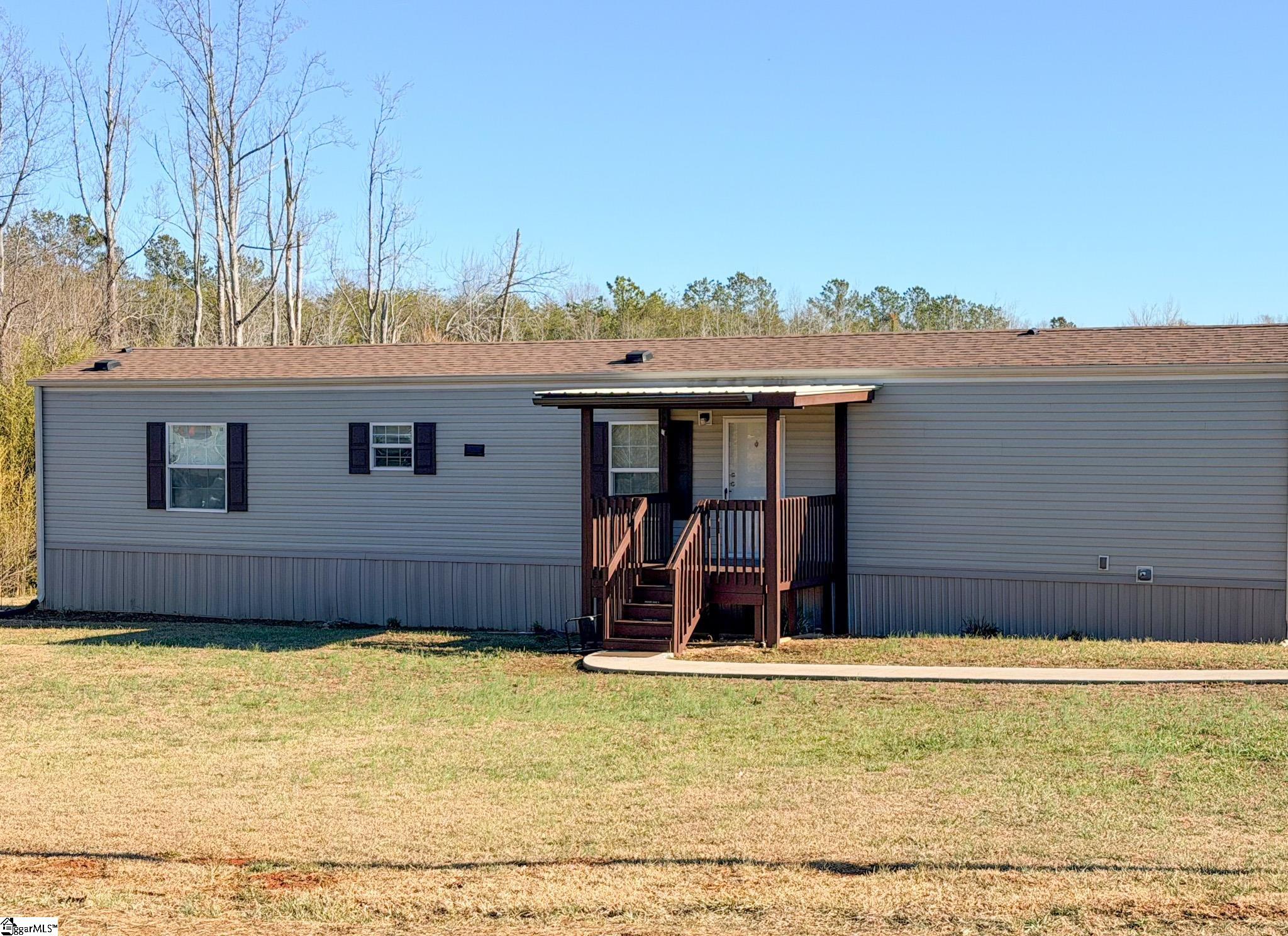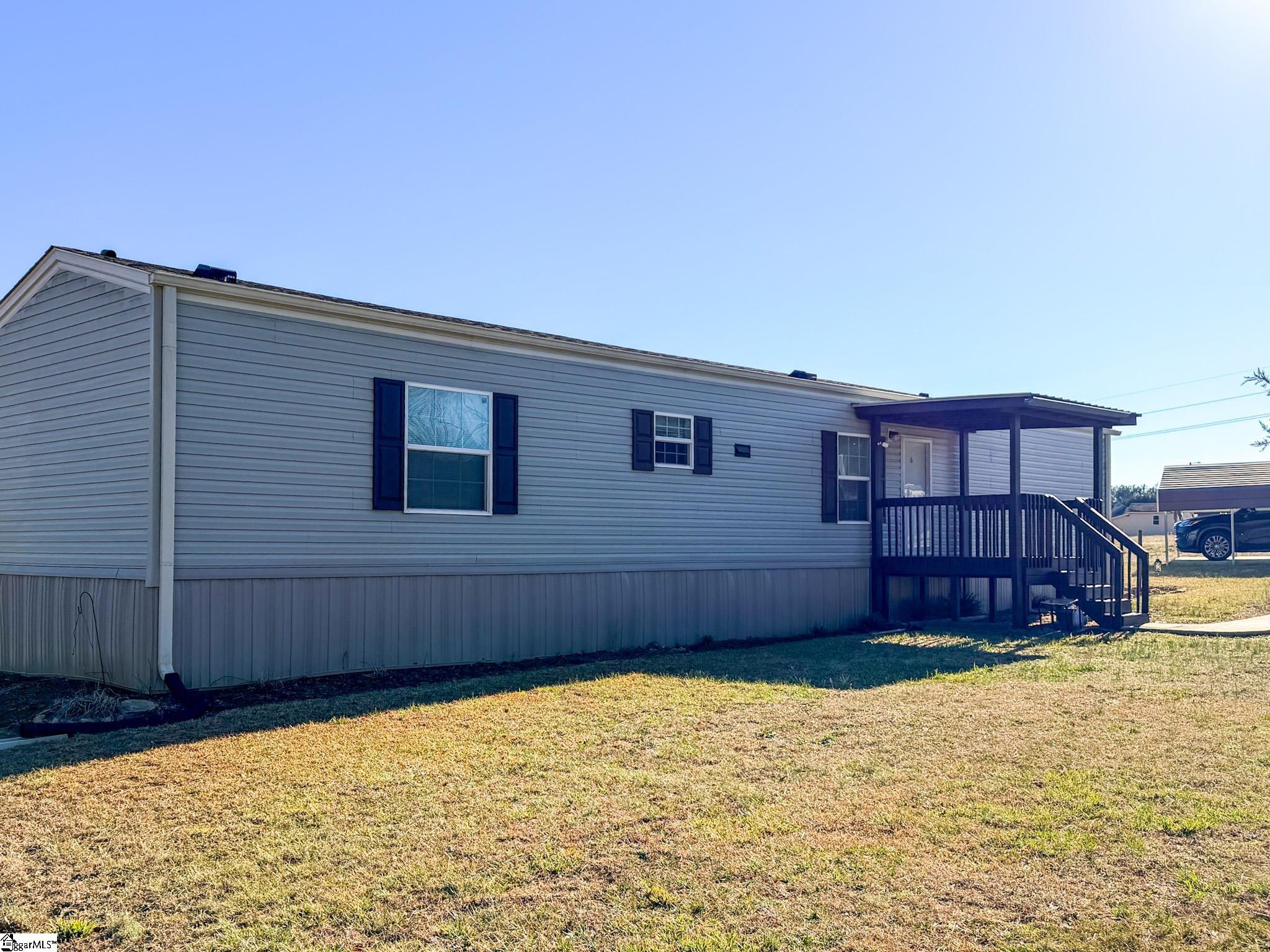 Move-in ready 3-bedroom, 2-bath home built in 2015 situated on 1.22 open and usable acres in semi-rural Taylors, SC. This well-maintained 924-square-foot home offers practical, simple living with an open-concept layout connecting the kitchen and living area. The kitchen features warm wood cabinetry, laminate countertops, black appliances, a double-basin sink, and wood-look flooring. Ceiling fans are located in every room for added comfort. The primary bedroom includes a private ensuite bath and walk-in closet. Both full bathrooms offer tub/shower combinations and low-maintenance finishes. Exterior features include a covered front porch, curved concrete walkway, and concrete driveway. A standout feature is the 20x20 detached garage with electricity, ideal for a workshop, hobby space, or additional storage. A 20x14 two-car carport provides additional covered parking. The 1.22-acre lot is open and fully usable, offering space for recreation, gardening, or outdoor enjoyment. Conveniently located approximately 4 miles from North Greenville University, 5 miles from Lake Robinson (boating, fishing, picnicking), 7 miles from Travelers Rest, 15 minutes to Greer, 25 minutes to downtown Greenville, and approximately 15 miles to GSP Airport. Greenville County Schools. Most amenities are a short drive away. Potential 100% financing may be available. Excellent opportunity for first-time buyers, small families, retirees, or parents seeking housing for NGU students.