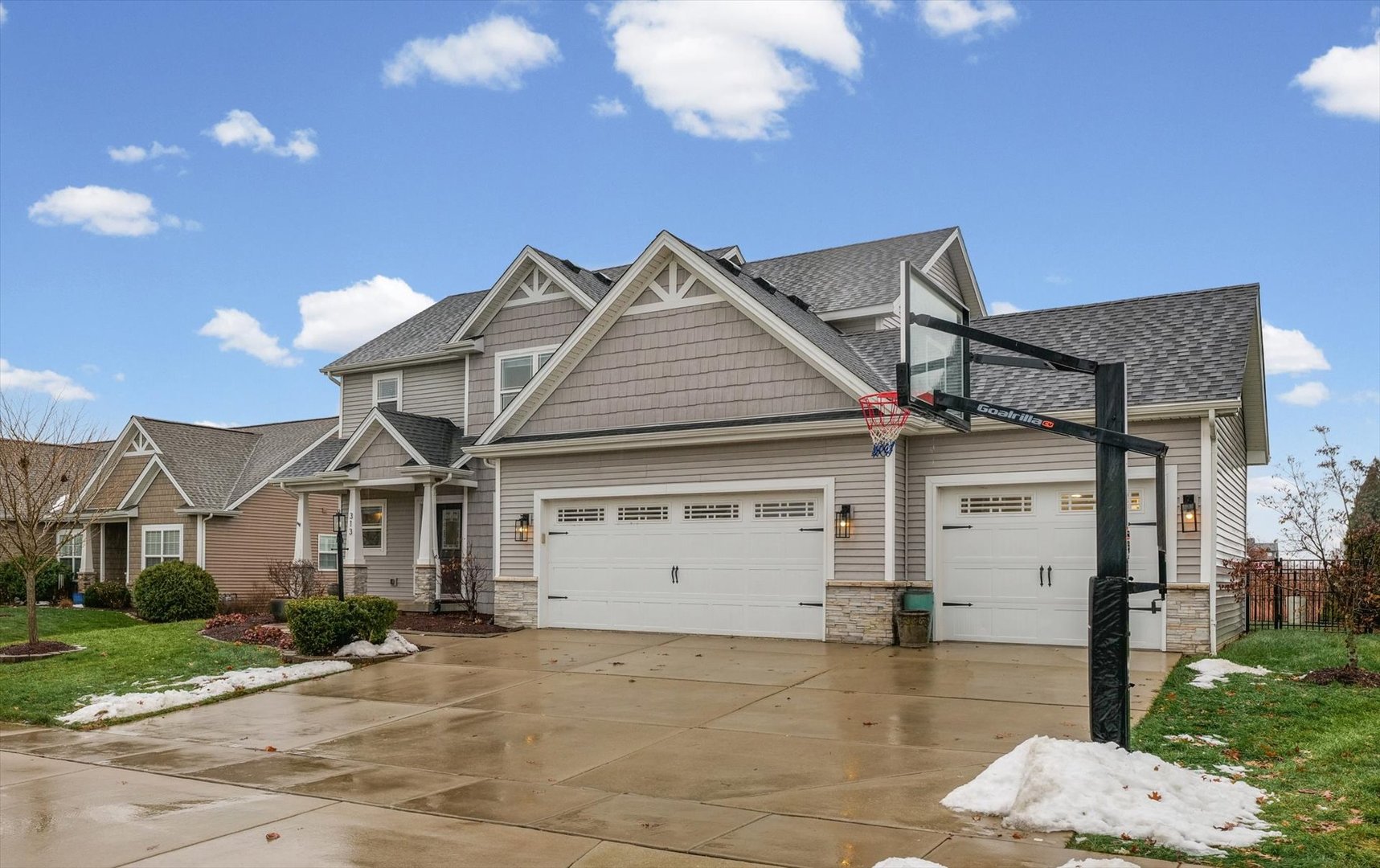 Stunning 5 bedroom, 3.5-bath home perfectly positioned on one of the most desirable lake lots in the neighborhood. Enjoy serene water views from the main living and dining areas, along with exceptional outdoor living featuring a two-tiered deck and a cozy fire pit- ideal for entertaining or relaxing evenings by the lake. The entire home has been freshly repainted, offering a clean, modern feel throughout, and the kitchen is highlighted by gorgeous white quartz countertops, stainless steel appliances including a brand-new refrigerator. A spacious pantry with an updated shelving system adds everyday functionality, while the open and flowing main-level floor plan is both inviting and practical. The basement features a newly added primary suite with tall ceilings and a beautiful tiled en-suite shower and double vanity perfect for a private retreat or mother-in-law arrangement. The basement also includes ample storage space. Additional highlights include a heated floors, charming mudroom nook with accent wall and hooks just off the three-car garage, and a convenient laundry room with direct access to the backyard and side patio. The garage is perfect for all of your workshop needs as well complete with top-of-the-line cabinetry. The inground basketball hoop is regulation sized and ready for all your neighborhood games! Regular wildlife sightings include Herons & Bald Eagles making the back yard views even better! Professionally landscaped and thoughtfully updated, this exceptional lakefront home offers comfort, style, and flexibility in one of Savoy's most sought-after settings. Pre-inspected for buyers' peace of mind & convenience.