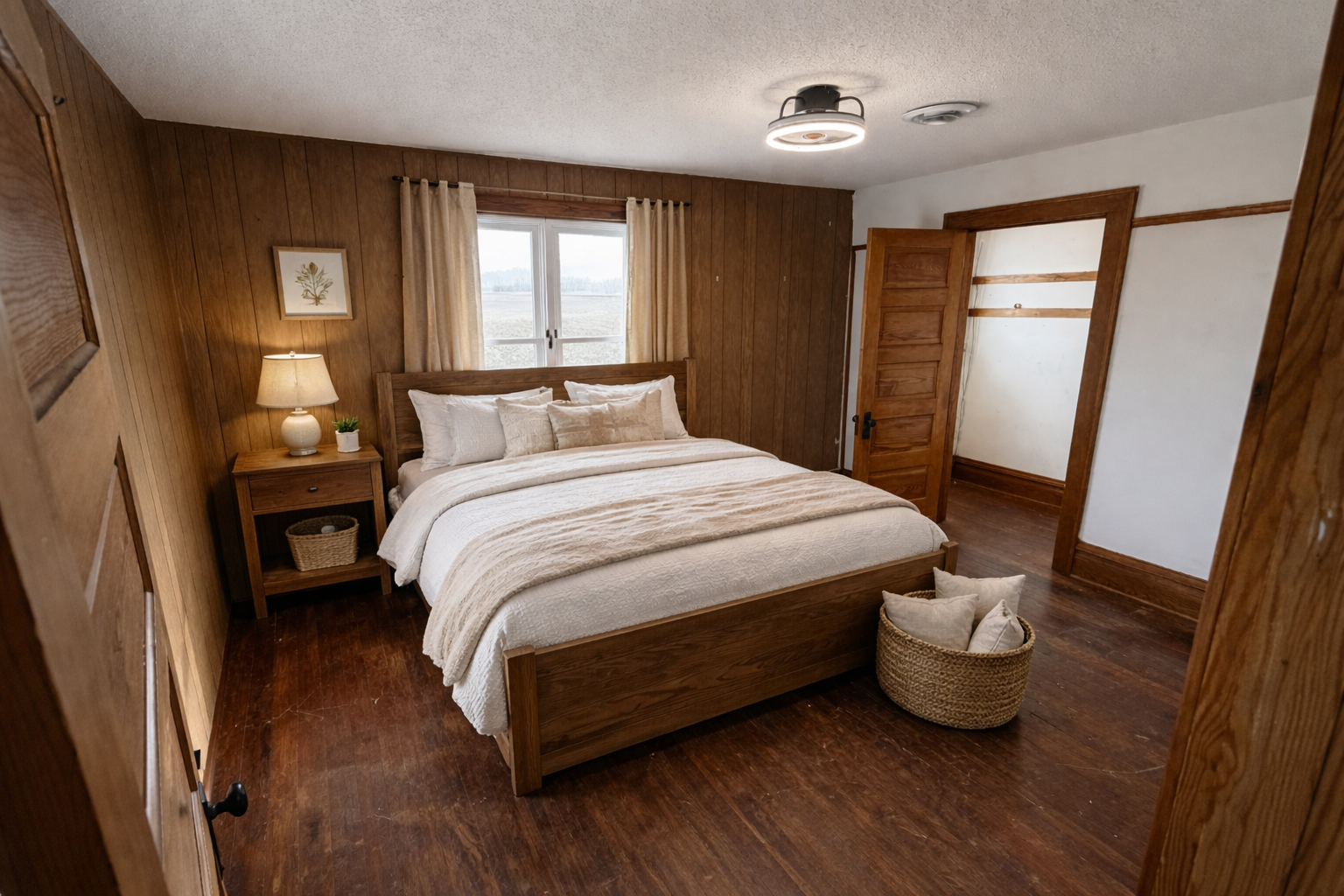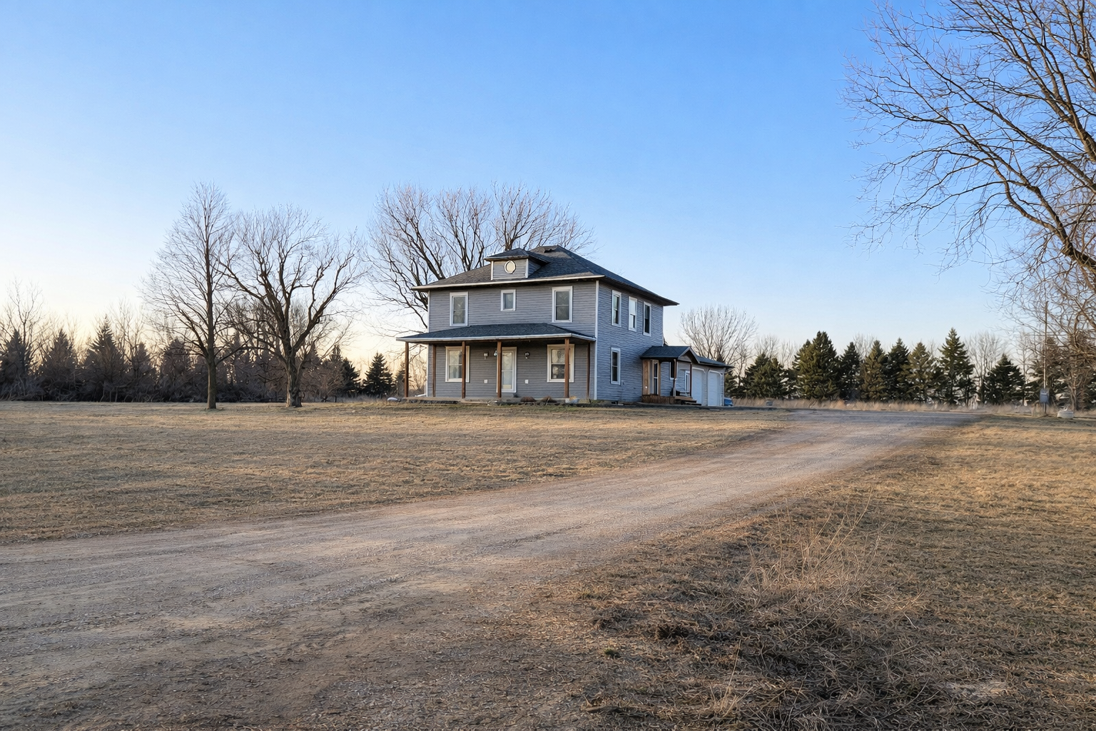 Enjoy privacy and space on this beautiful 9.18-acre property!This charming home offers 4 bedrooms on the upper level with stunning views from every window and a full bathroom conveniently located upstairs. Youll love the abundance of natural light and the gorgeous original woodwork that adds warmth and character throughout.The main floor features a large open living space perfect for entertaining, stainless steel appliances, a formal dining room, and a nicely sized den ideal for a home office or cozy retreat. The spacious attic provides excellent storage options.Relax on the wonderful front porch while taking in peaceful sunset views. Outside, youll find a heated two-car garage, newer siding, windows, and gutters, plus a backyard shed that can be used for storage or even a chicken coop.New septic system installed in 2024 for added peace of mind. With just a few cosmetic updates, this home could truly shine and be brought to its full potential.