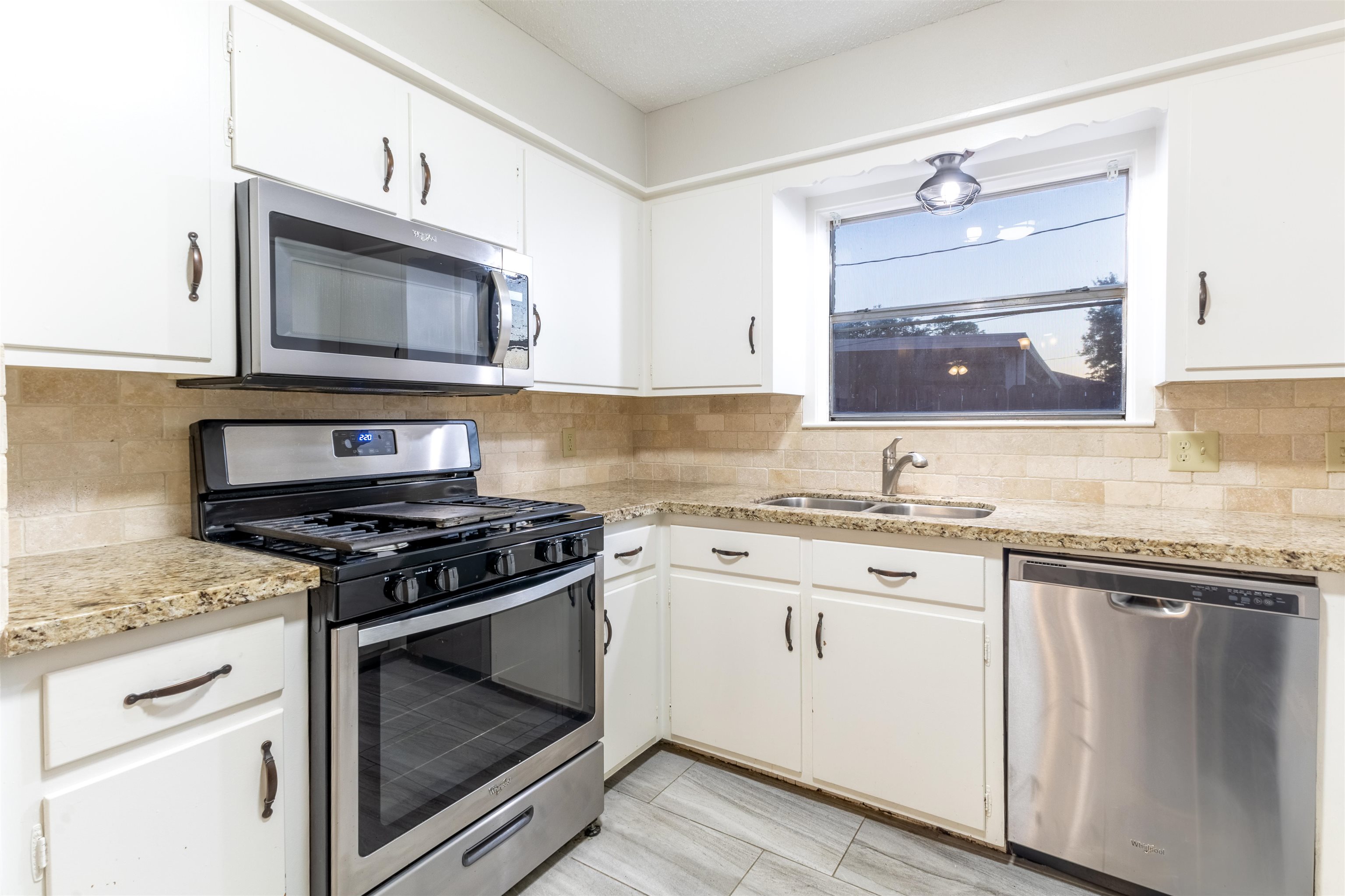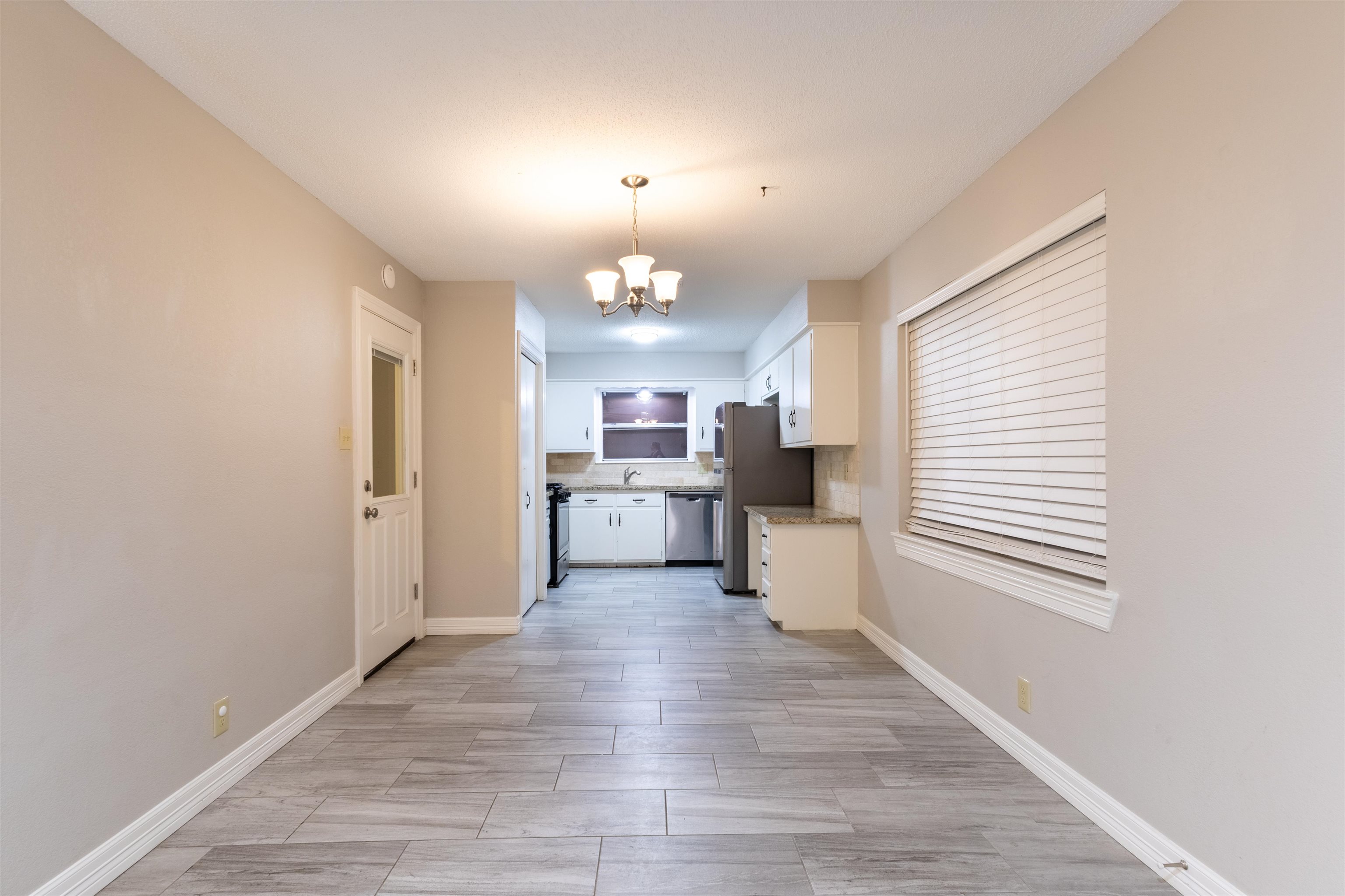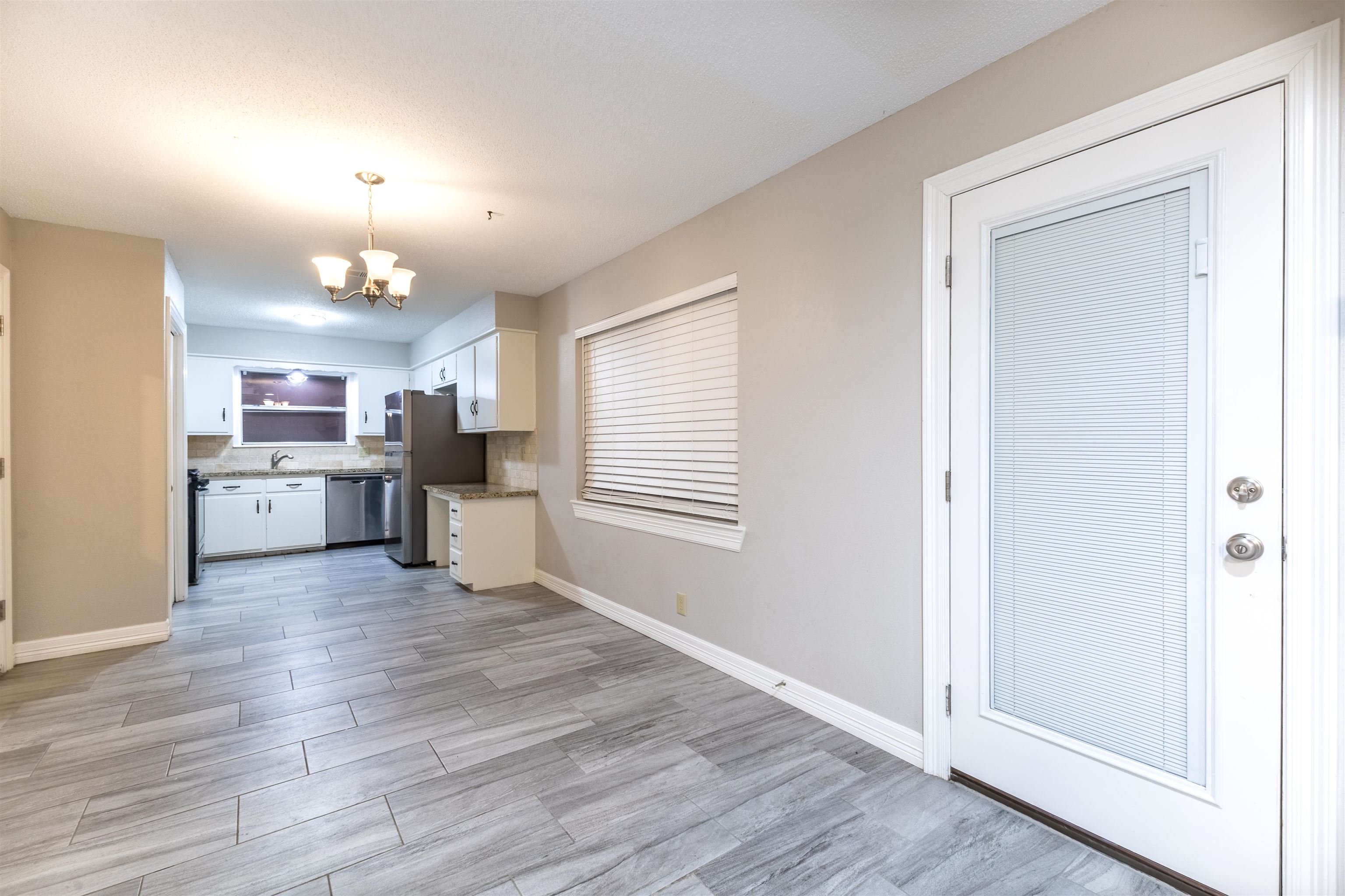 Discover this beautifully updated home, located close to shopping, schools and amenities in the sought-after PNGISD. The interior features tile flooring throughout, ensuring both style and durability. Upon entering, you'll find a flex space perfect as a dining room, secondary living area, or home office. The main living area boasts with a stunning brick fireplace, that seamlessly flows to a breakfast area and kitchen. The kitchen is equipped with stainless steel appliances, granite countertops, tile backsplash, and a gas stove. All 3bedrooms are generously sized and have large closets. Enjoy the fenced in back yard that has a covered patio for entertaining.