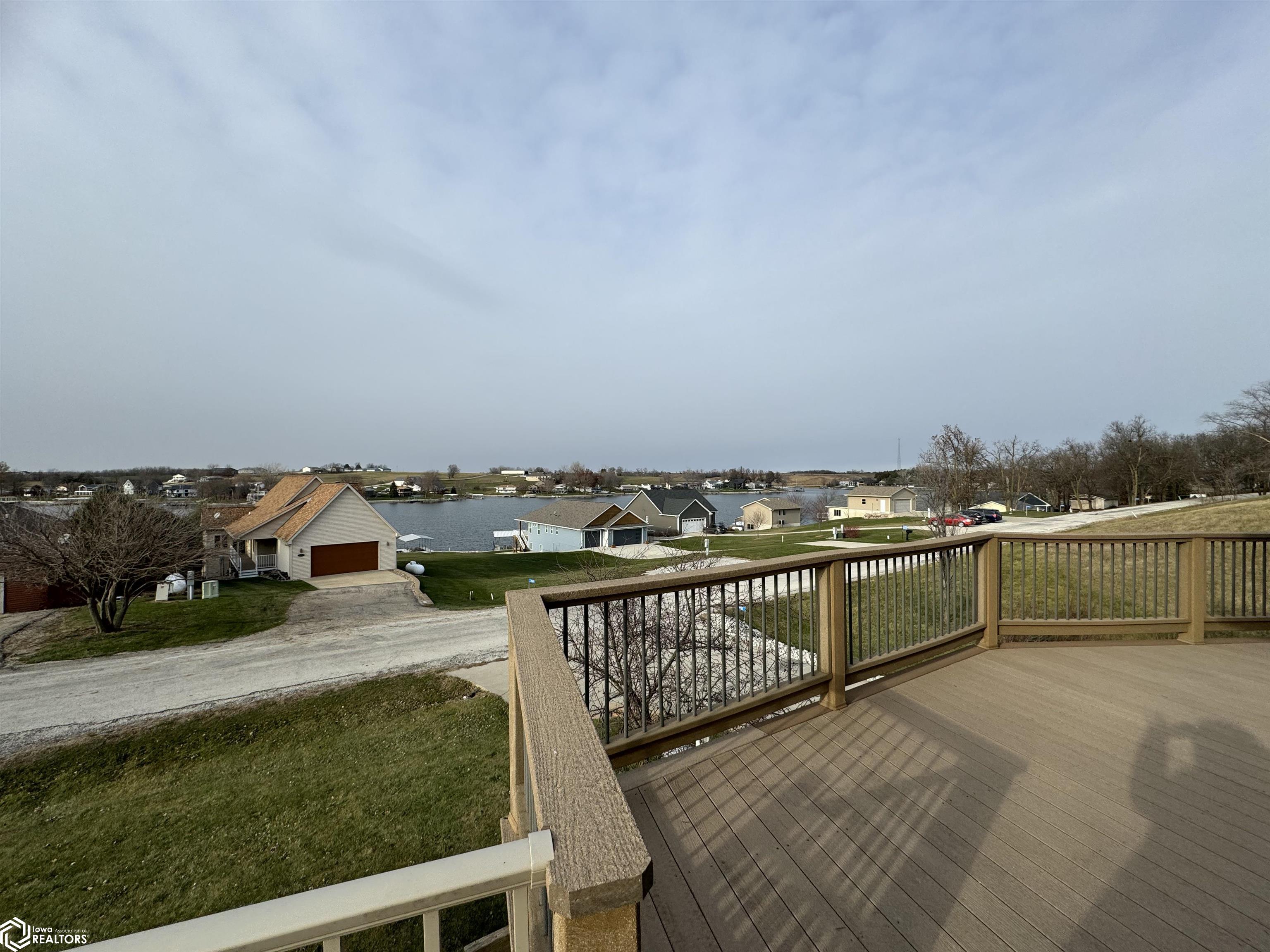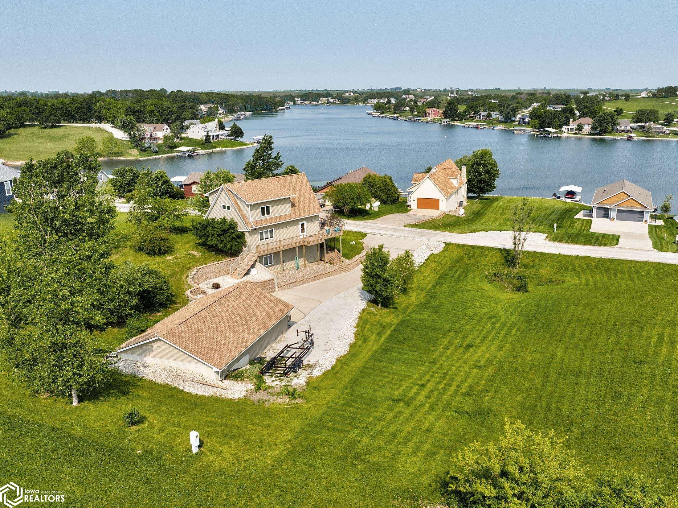PREMIER VISTAS FROM THIS CUSTOM-BUILT LAKE HAVEN! An abundance of trapezoidal windows bathes the space in natural light, unveiling a myriad of enchanting lake views. A spacious concrete driveway allows for ample parking and leads to extra deep, expansive garage, while lush landscaping meanders toward the partial wrap-around composite deck, complete with a handicap ramp on one side. Step inside to a breathtaking dream! Imagine this: sparkling hardwood floors, towering ceilings, spacious areas, and freshly painted walls. The kitchen features gleaming new appliances, while the master suite on the upper level offers a luxurious ensuite and stunning views of the lake! Additionally, enjoy the comfort of geothermal heating and cooling, along with in-floor heating on the lower level, accentuated by custom tile floor. This is the off water home only.