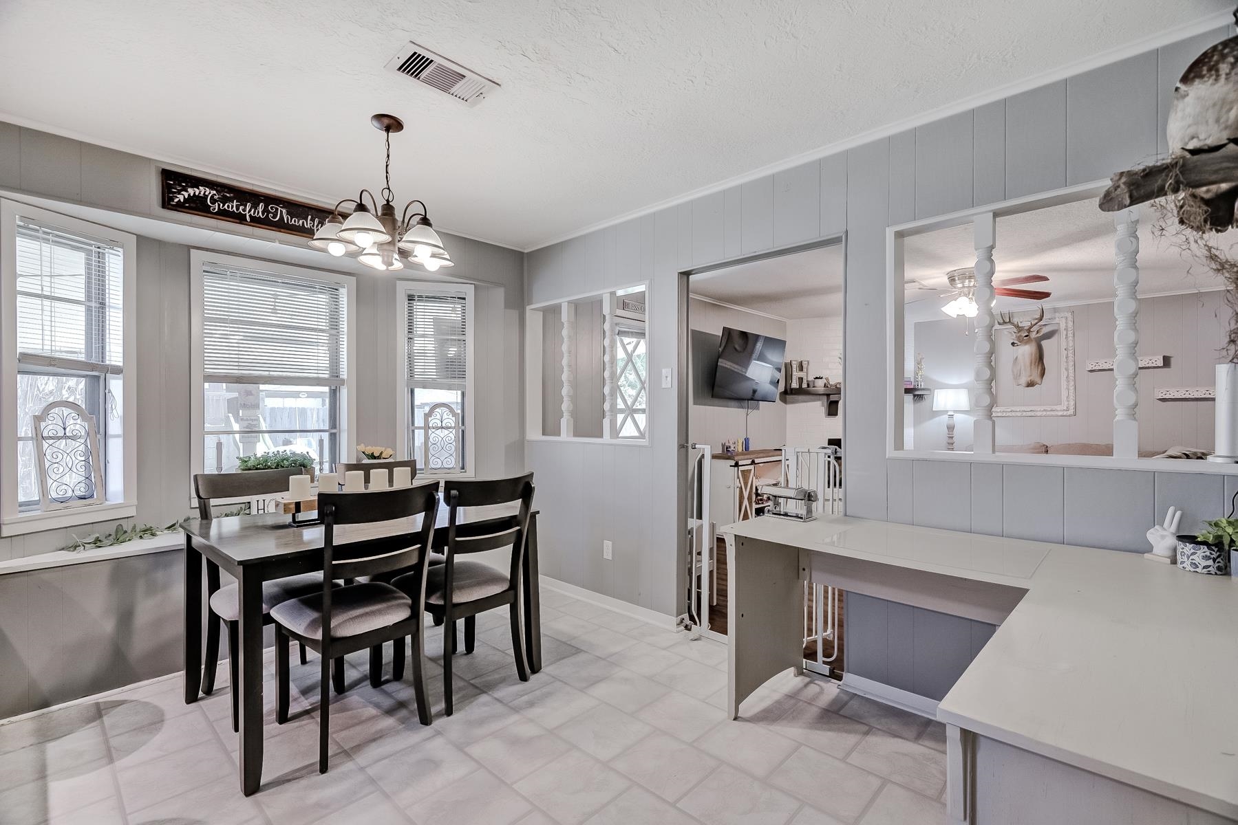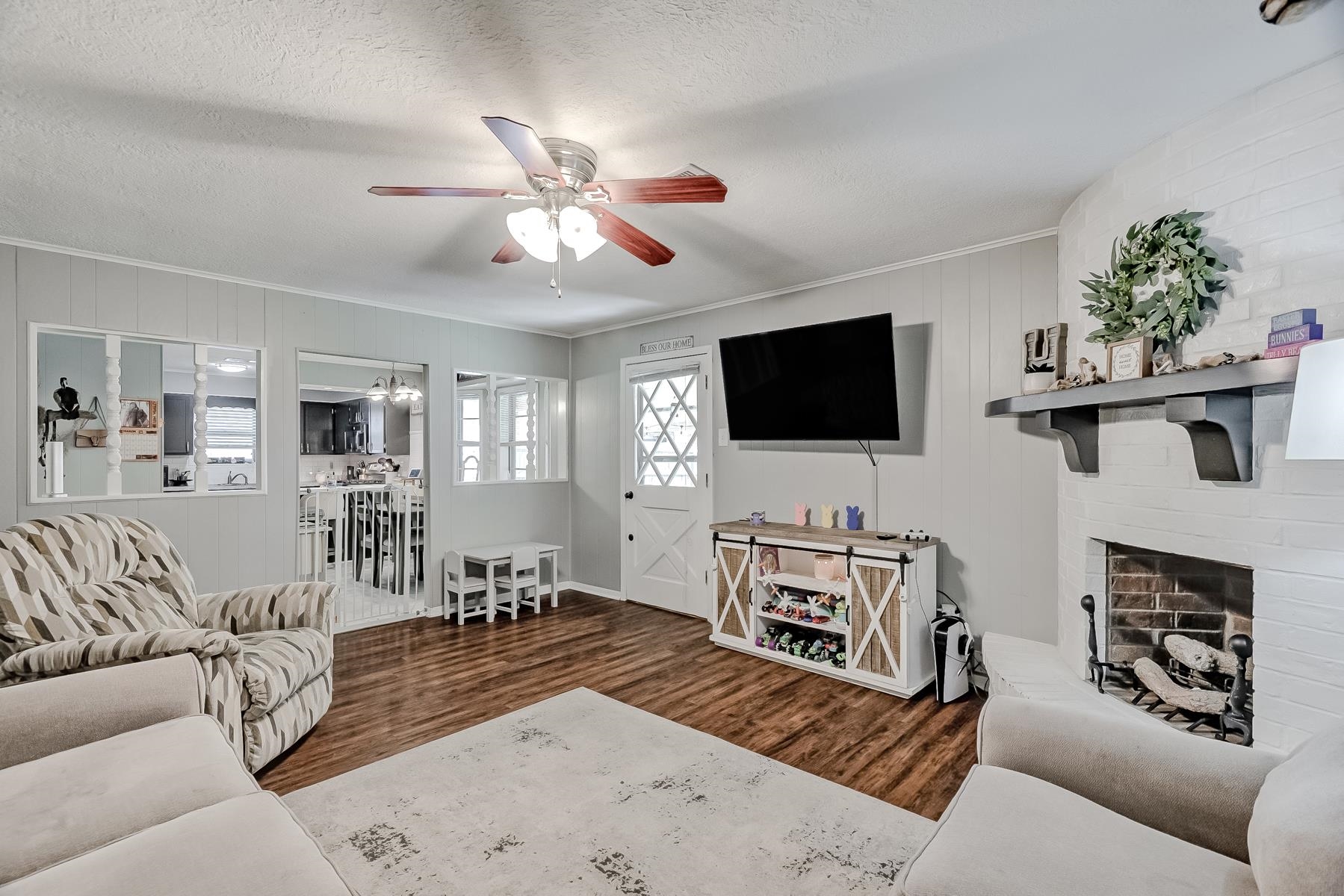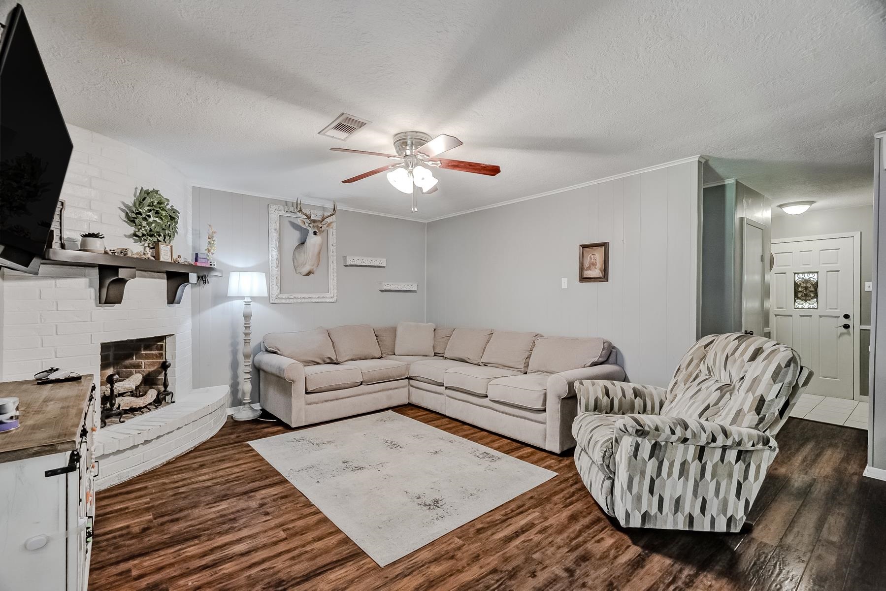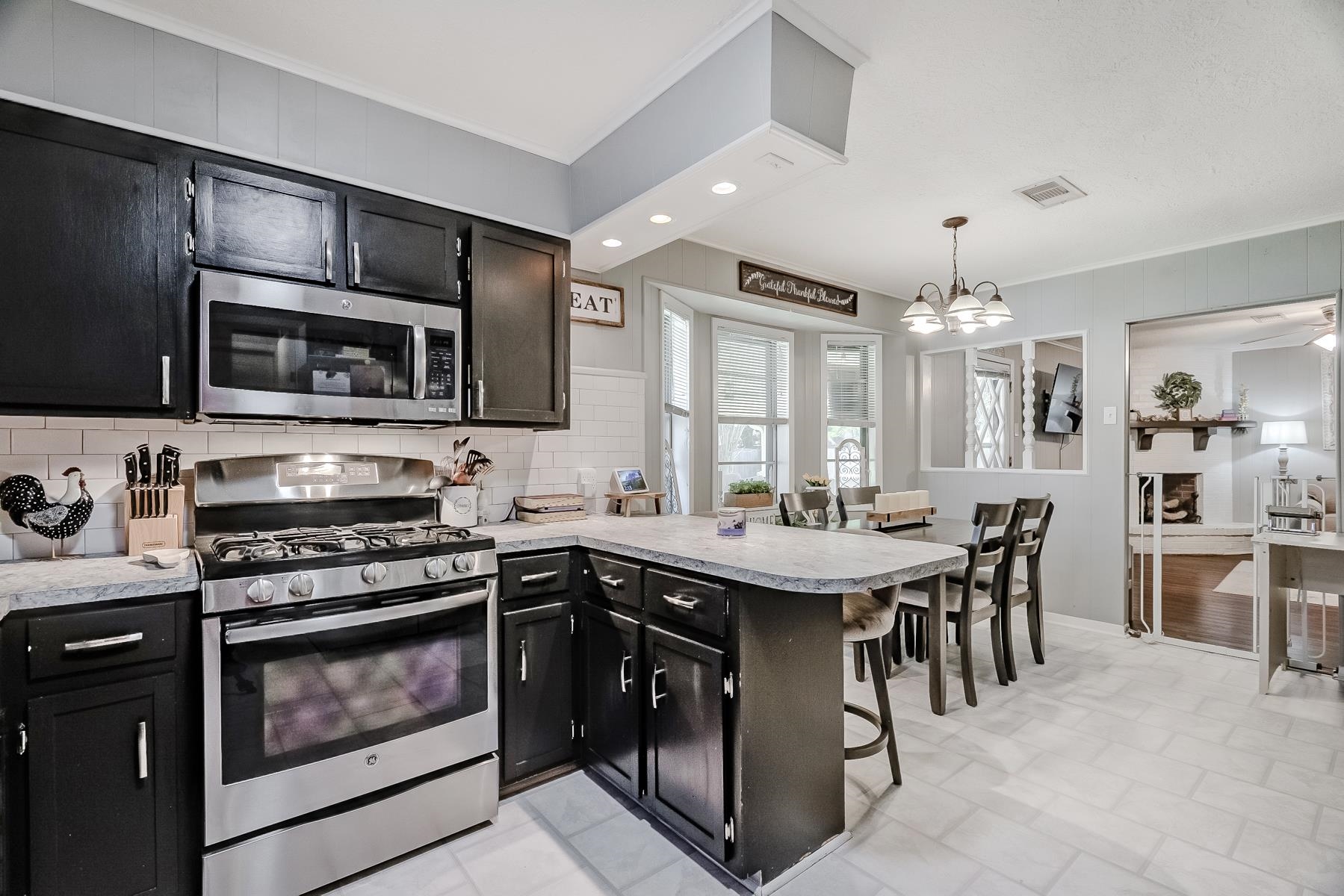 Well-maintained 3/2/2 with a warm, inviting layout! Spacious living area features engineered wood flooring and a cozy mock corner fireplace. Kitchen offers updated countertops, subway tile backsplash, ample cabinetry, and a breakfast bar, opening to the dining area with great natural light. Neutral tones throughout make this home move-in ready. Enjoy a covered patio and fenced backyard, perfect for entertaining or relaxing.