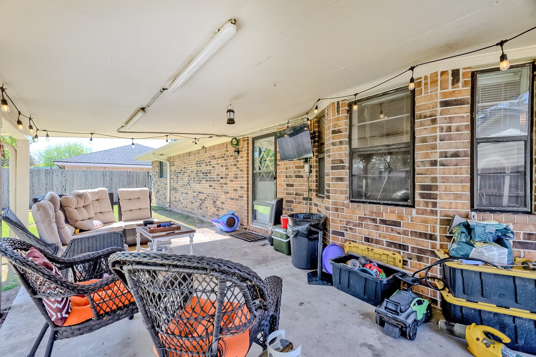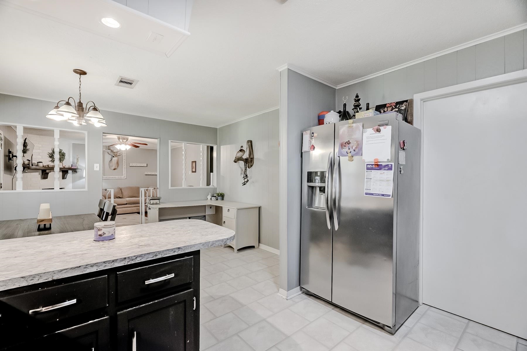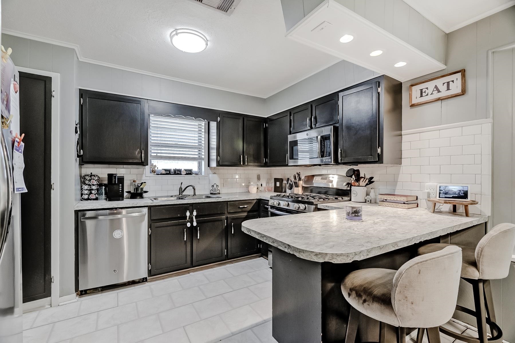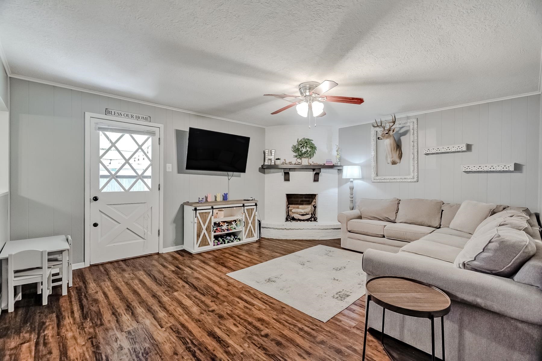 Well-maintained 3/2/2 with a warm, inviting layout! Spacious living area features engineered wood flooring and a cozy mock corner fireplace. Kitchen offers updated countertops, subway tile backsplash, ample cabinetry, and a breakfast bar, opening to the dining area with great natural light. Neutral tones throughout make this home move-in ready. Enjoy a covered patio and fenced backyard, perfect for entertaining or relaxing.