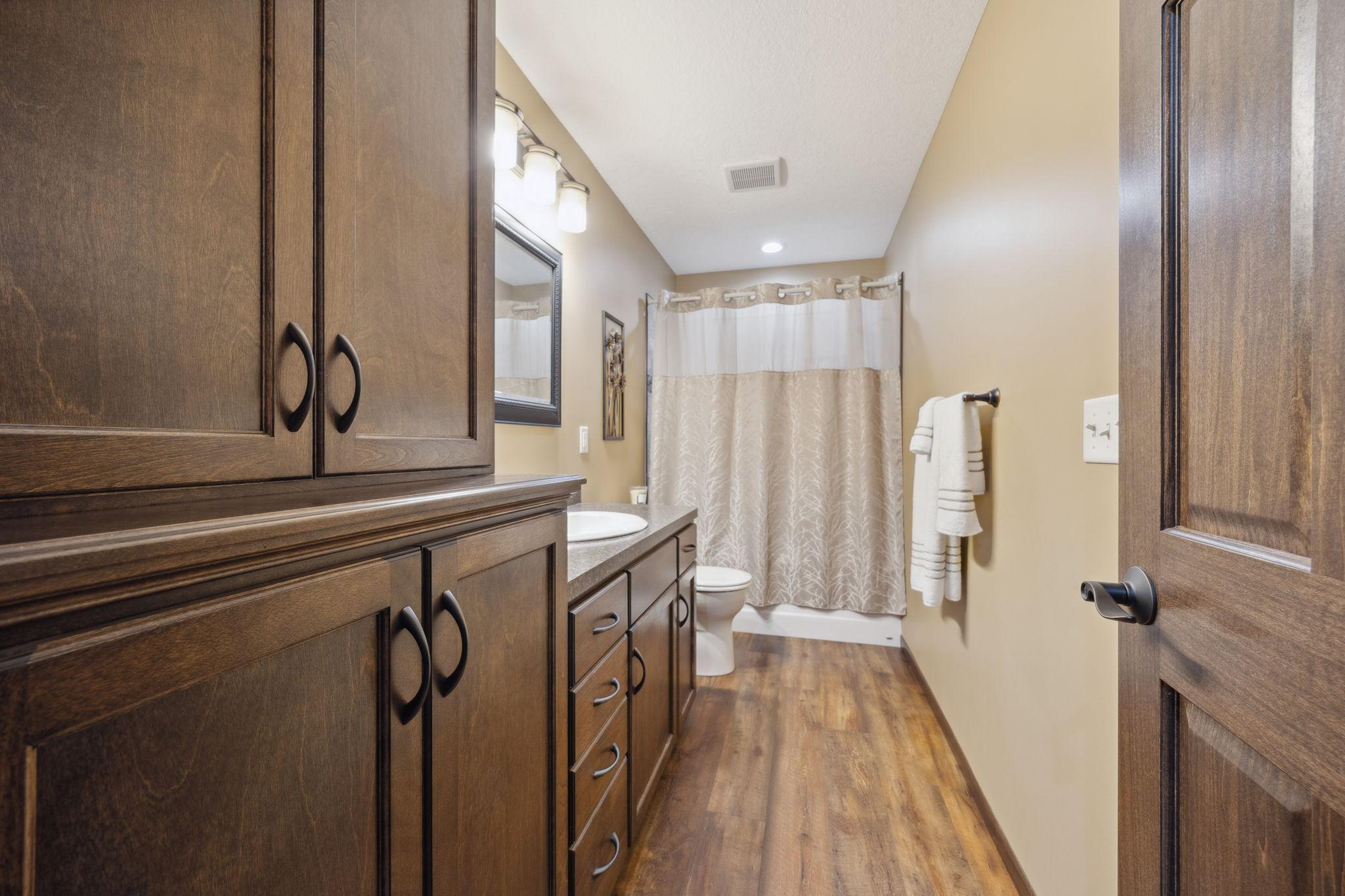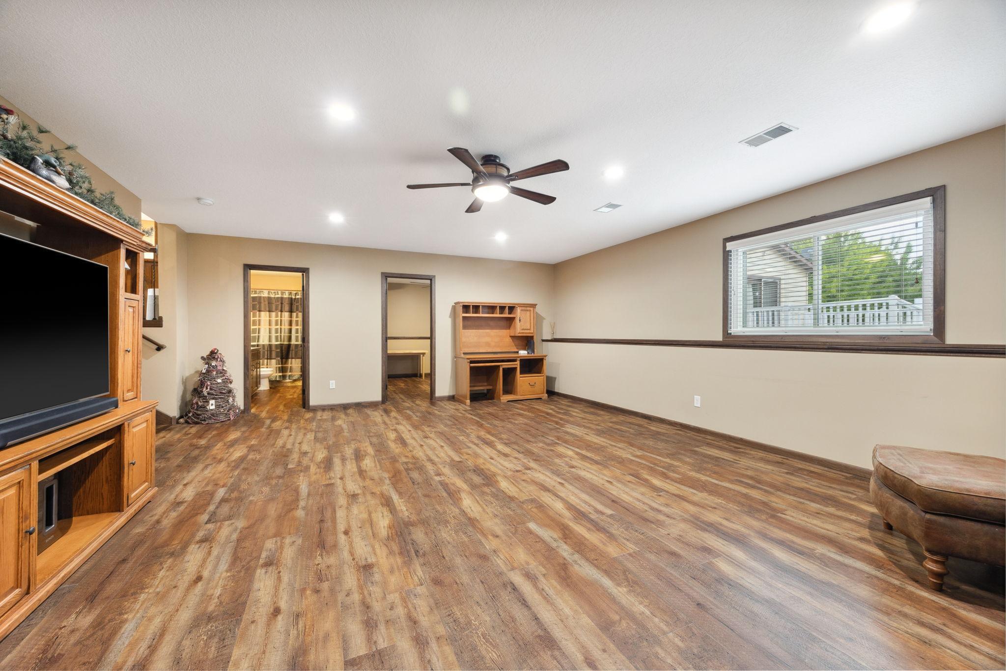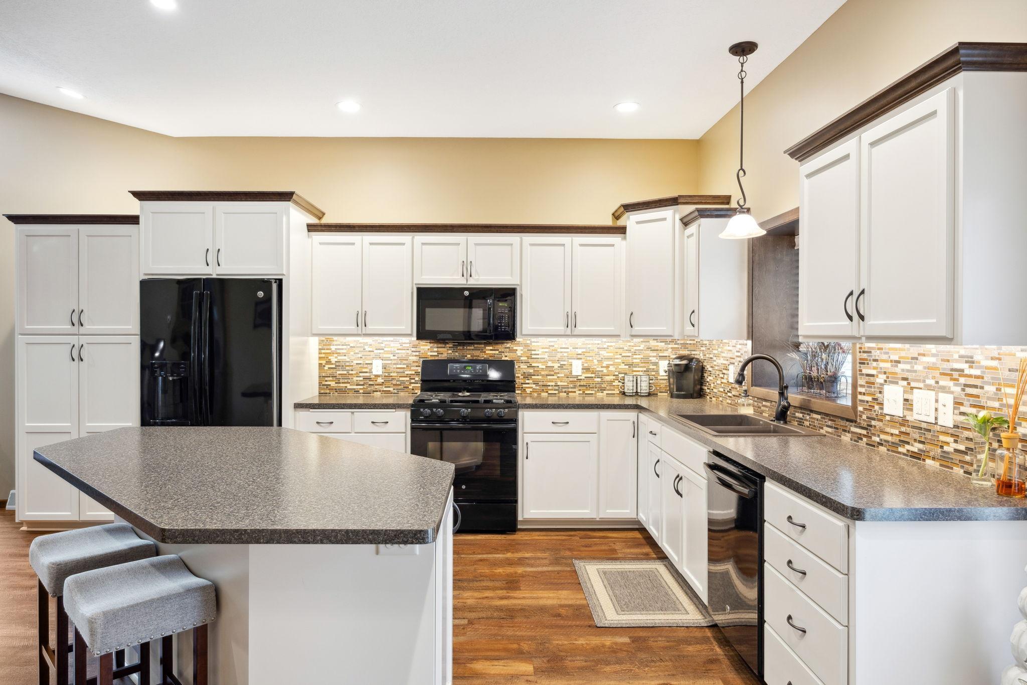 Situated on a large lot on .32 acres, this beautifully updated 3 bedroom, 4 bath four level split home offers over 3000 finished square feet; renovated by Richard Larson Builders in 2017-2018, this home features an open concept main level with a stunning updated kitchen, custom cabinetry, center island & new flooring, flowing seamlessly into the dining area and living room highlighted by a cozy gas fireplace. Mudroom and half bath are conveniently located just off the garage; the upper level features a primary bedroom with a private bath, second bedroom and tiled full bath; the third level showcases a large family room with custom stone fireplace, third bedroom and a tiled 3/4 bath, perfect for guest or additional living space; the fourth level offers a versatile bonus flex space with abundant storage; new windows in 2024; oversized 2 stall garage is 776 sq ft; enjoy the spacious backyard with maintenance free deck, paver patio with firepit and storage shed-perfect for entertaining; with its beautiful updates and spacious backyard this is truly a place to call home!