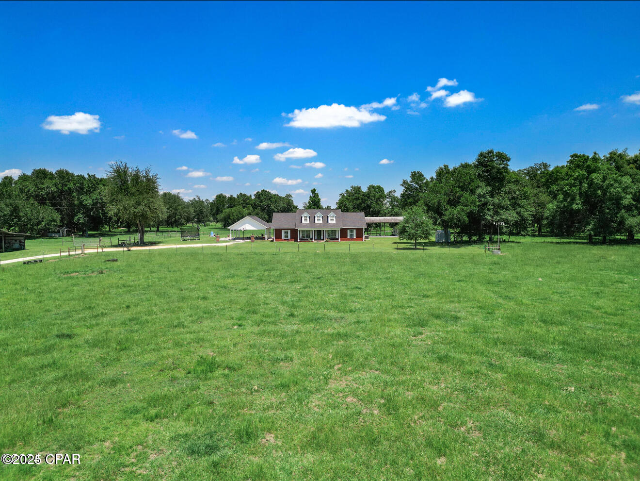 This one is a must-see because pictures simply can't do justice for this beautiful homestead in rural Jackson County Florida. The 20-acre fenced property affords plenty of space for a multitude of outdoor activities with ample room left for raising livestock. Three separate pole barns mean there are plenty of storage options for farm equipment, recreational vehicles, and anything else you'd like to protect from the elements. Two wells and two RV hook ups have been thoughtfully installed and one of the barns offers an enclosed 12x12 heated and cooled space that could serve as an office or a climate controlled storage unit. An in-ground pool is a great place to relax and cool off after a long day and there happens to be one of those on this property too! All of that and we haven't even talked about the almost 3 bedroom 2 full bath custom brick home that was built in 2008. The open concept vaulted ceiling living space invites visitors to cozy up by the gas fireplace and is flanked on one side by the master suite and the other by two bedrooms and a full bath. A 529 sq ft space off of the kitchen offers flexibility. Use it as a great room, a play room, a home gym, or a home school. This place is rural, but not remote. You can access shopping, schools, and parks in Marianna in about 20 minutes, world class fishing on Lake Seminole in about 15 minutes, or the emerald coast of Mexico Beach in just an hour and a half. There's not much more you can dream of. Schedule a tour today! All measurements should be verified if important.