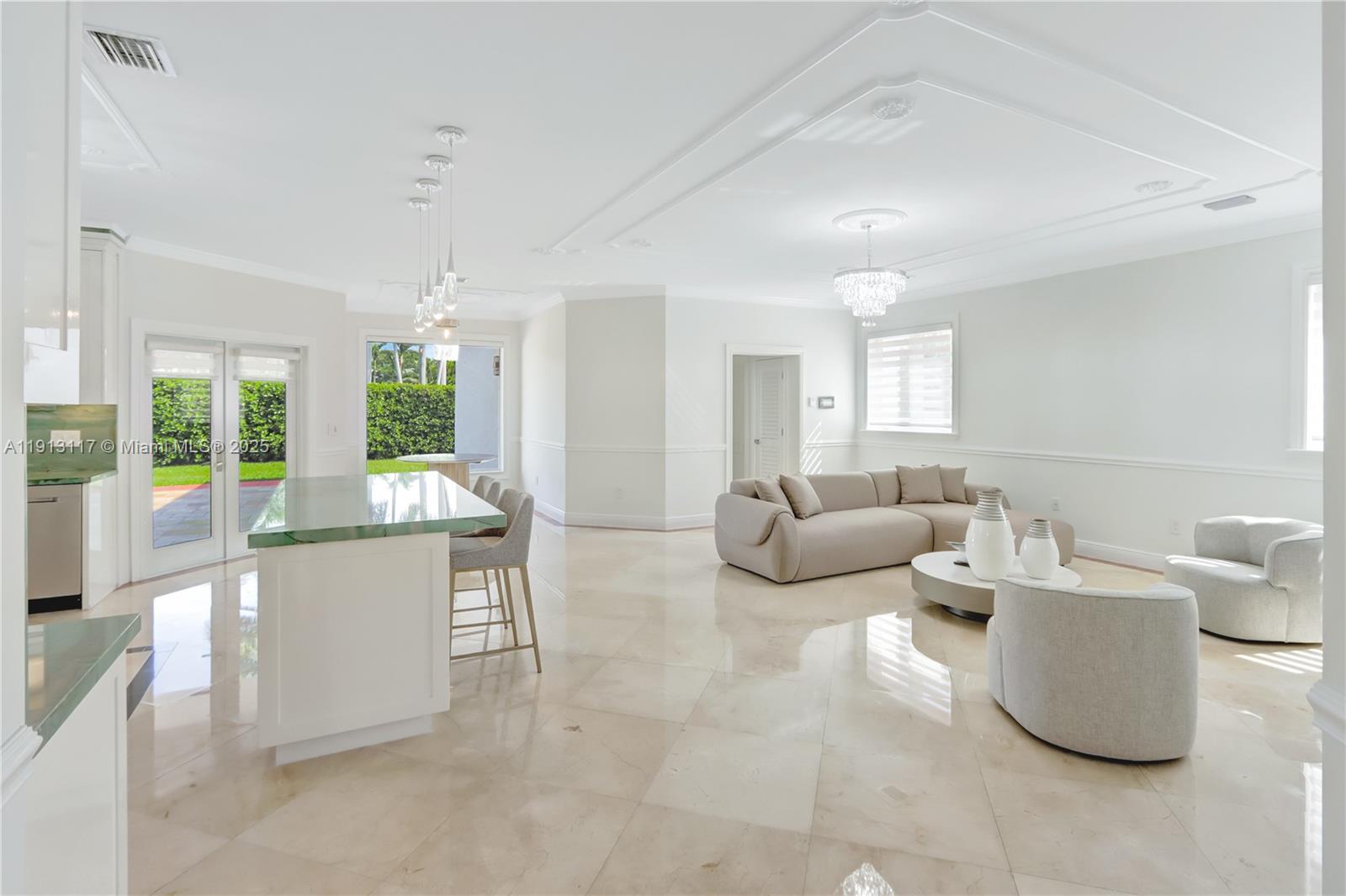 Experience refined Miami living in this luxurious 4-bed, 3-bath corner-lot residence. This gated home welcomes you with a grand covered carport entrance, tall ceilings, and modern porcelain tile throughout. It's stunning kitchen features stunning celeste green onxy marble, custom cabinetry, and premium finishes, perfect for both hosting and culinary creativity. Enjoy spacious rooms with sitting areas, generous walk-in closets, and a thoughtful layout ideal for comfort and privacy. Home includes a 2-car garage, plenty of outdoor parking, and a large open yard for entertaining or relaxation. Offered partially furnished with pieces curated specifically for the home. Great school district & centrally located. A rare opportunity to lease luxury, privacy, and timeless Miami elegance all in one.