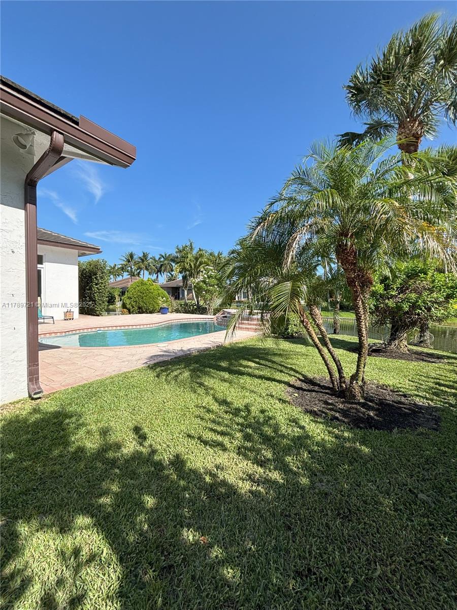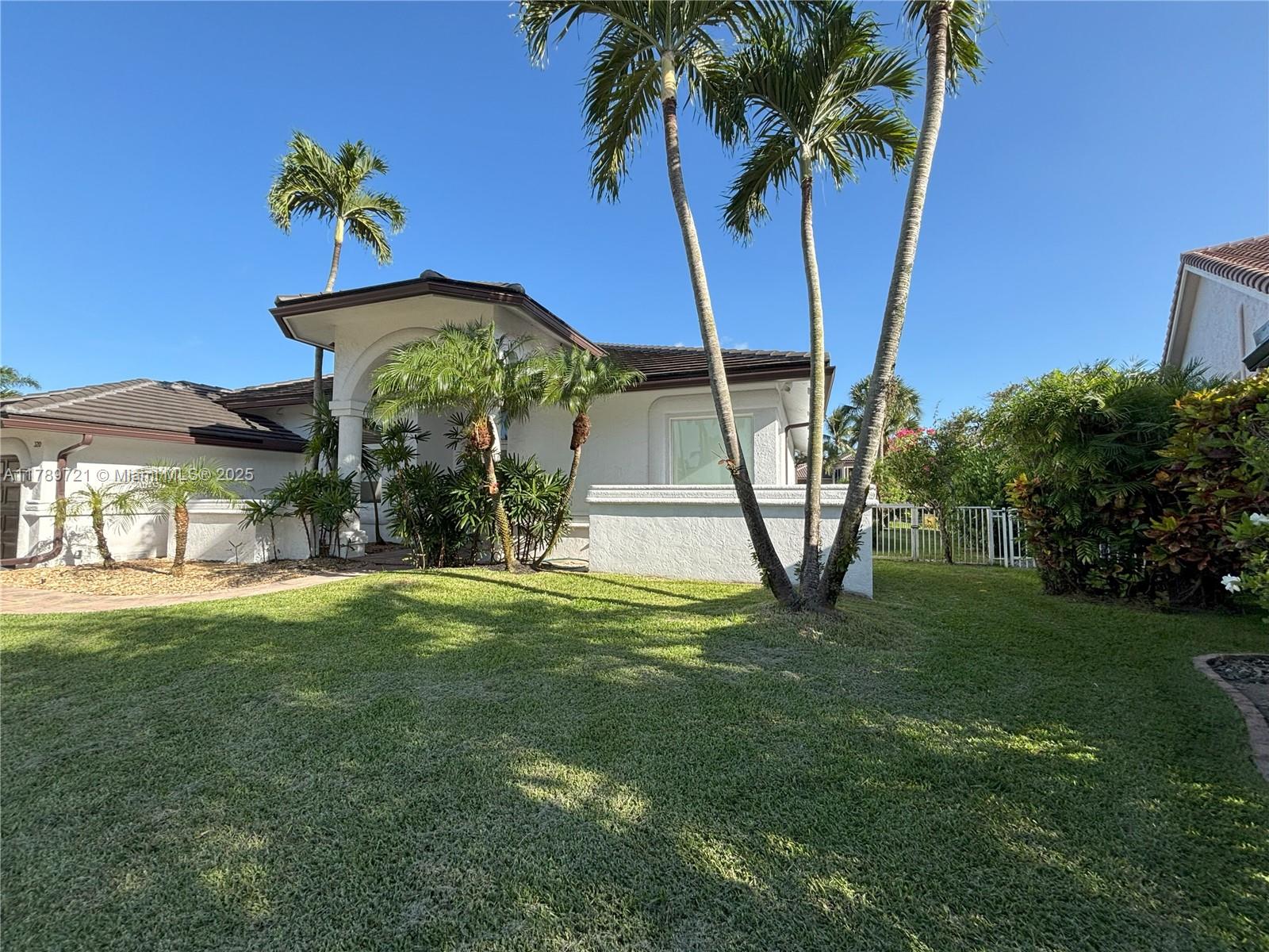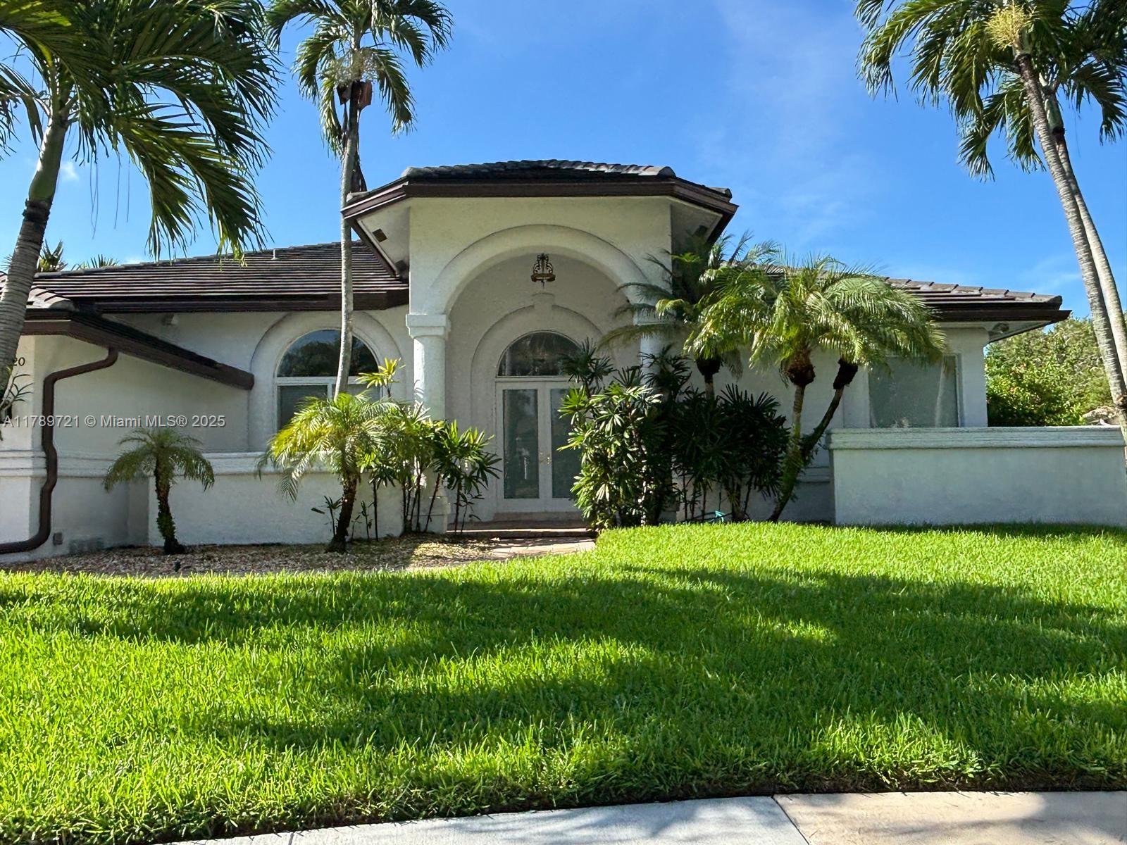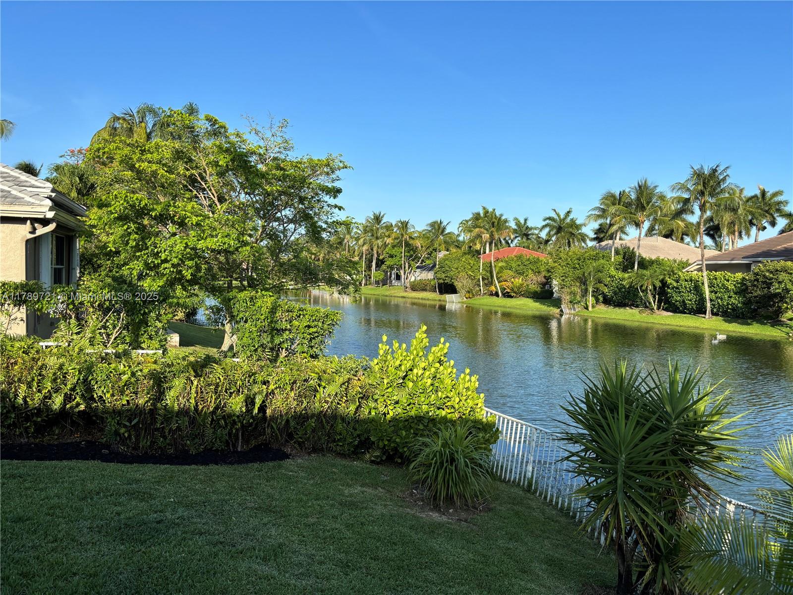 STUNNING LAKEFRONT ESTATE IN MOST DESIRABLE CUL-DE-SAC. This beautifully single-story home sits on 135 feet of pristine waterfront with unobstructed lake views. Recent upgrades include a 2021 roof installation and impact glass windows for protection and insurance savings. The open floor plan showcases marble and hardwood floors, 4 spacious bedrooms and 3 full bathrooms. The gourmet kitchen features white cabinetry, quartz countertops, and high-end appliances. The master suite overlooks the water with direct pool access. Outside, the saltwater pool and professionally landscaped grounds offer privacy and spectacular views. Enjoy exclusive access to the clubhouse with fitness facilities, 7 Har-Tru tennis courts, spa services and 24-hour security. Move in ready with luxury finishes.