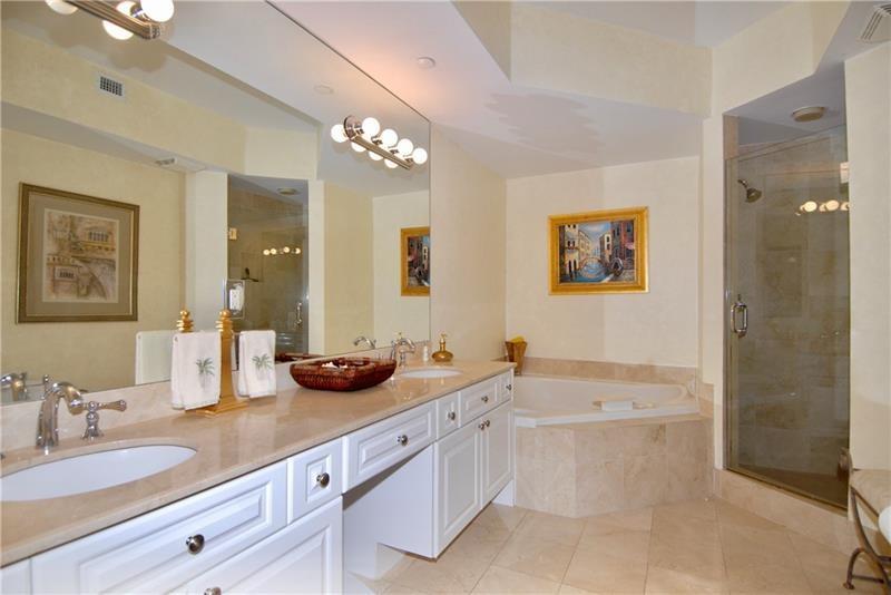 Two bed/ two bath split plan beautiful fully furnished apartment with marble throughout main living, dining, kitchen, laundry & balcony. Floor-to-ceiling windows fitted with custom Silhouette Blinds; both bedrooms fitted with wood Plantation shutters. California King bed in Master & King (twin conv.) Guest bedroom. SE exposure facing pool and tropical lanai with partial ocean views. Enjoy all the amenities of this resort-style beachfront property- 2 swimming pools, a poolside cafe, jacuzzis, beach cabanas, beach attendants, state-of-the-art gym, locker rooms with steam and sauna, clay tennis courts, billiard room, brand new renovated Lobby, Concierge, and 24 hour Security team. Also available for the off-season at 5,000/ month or for the winter season at $8700/month.