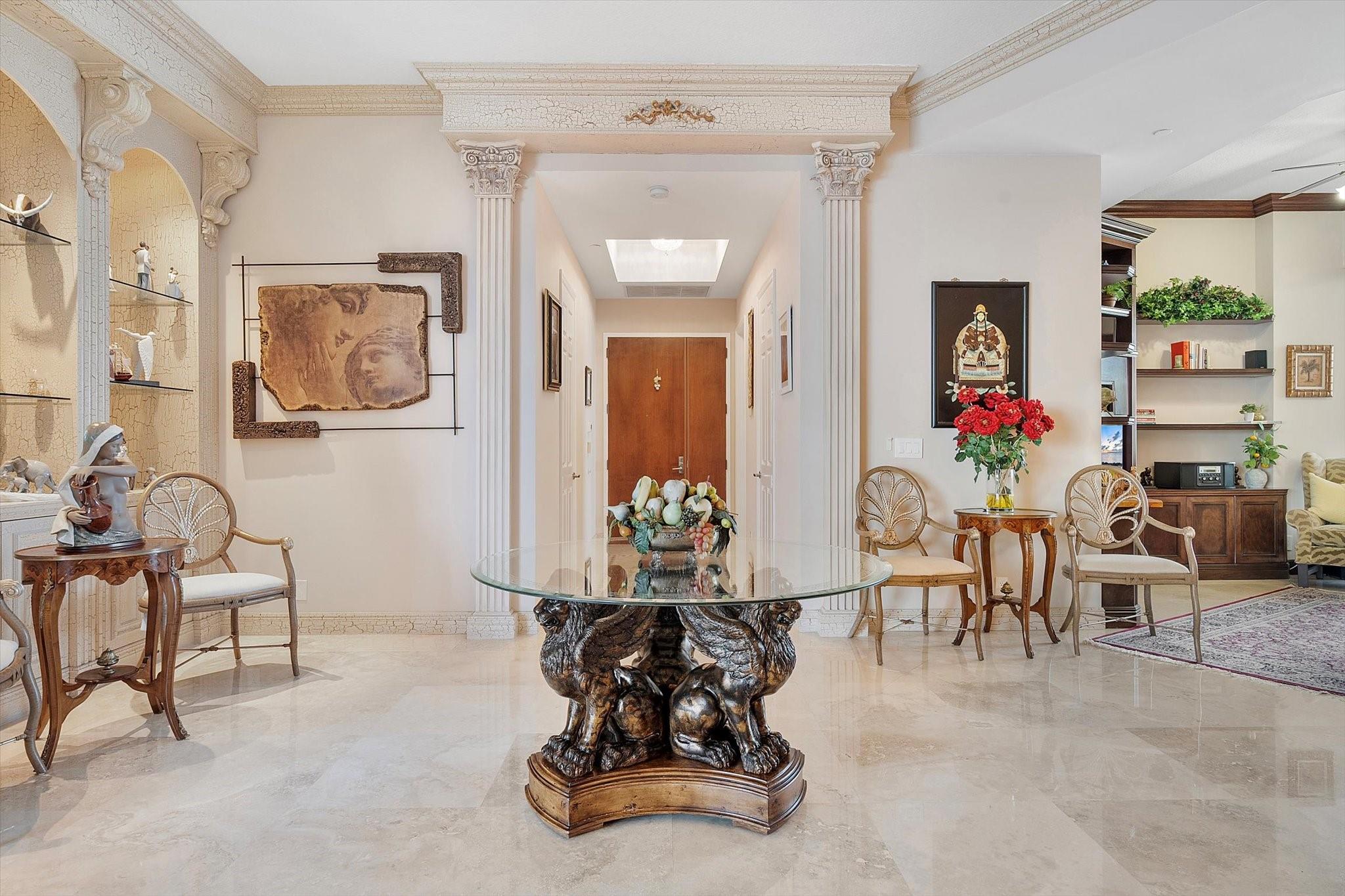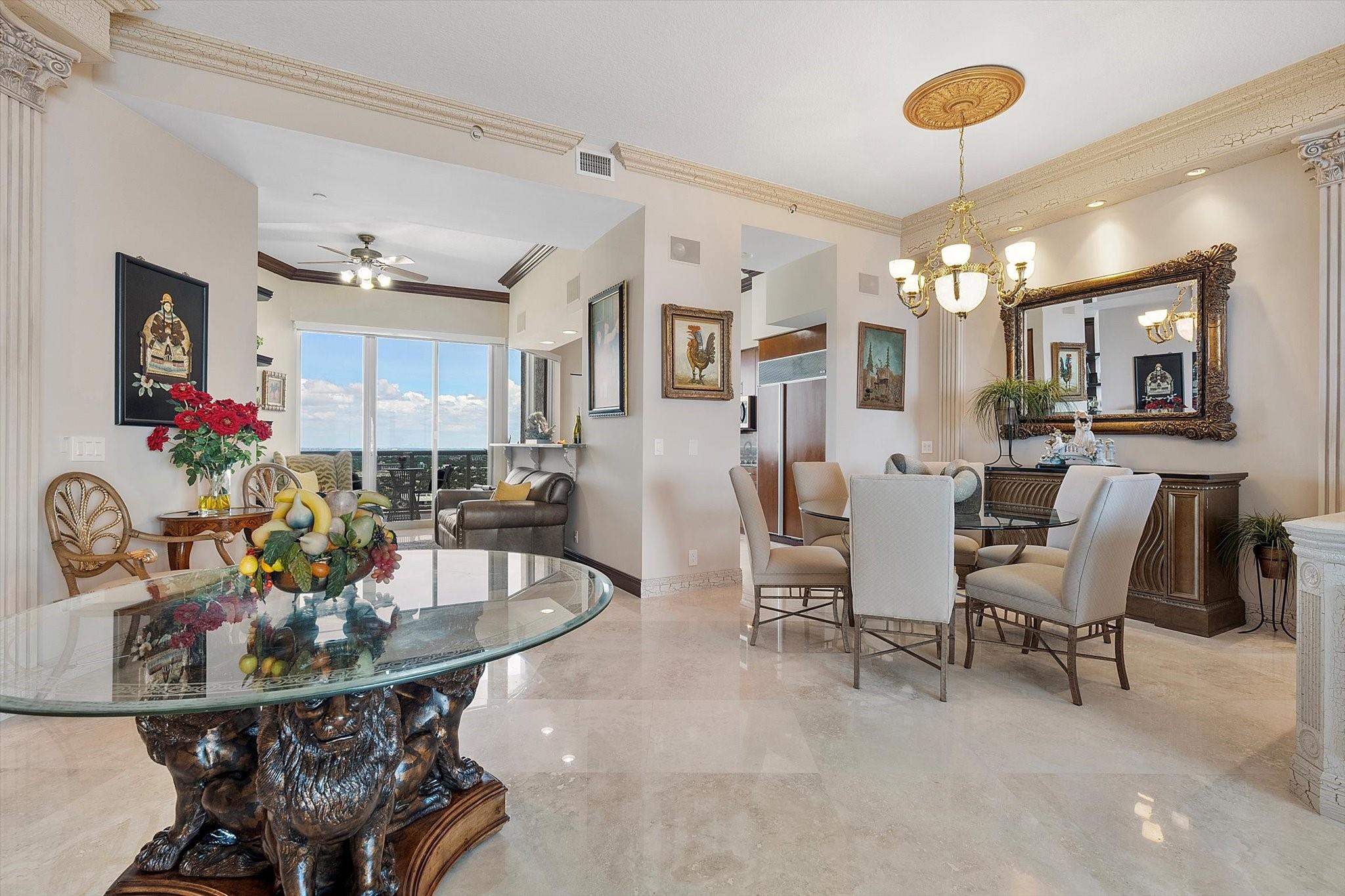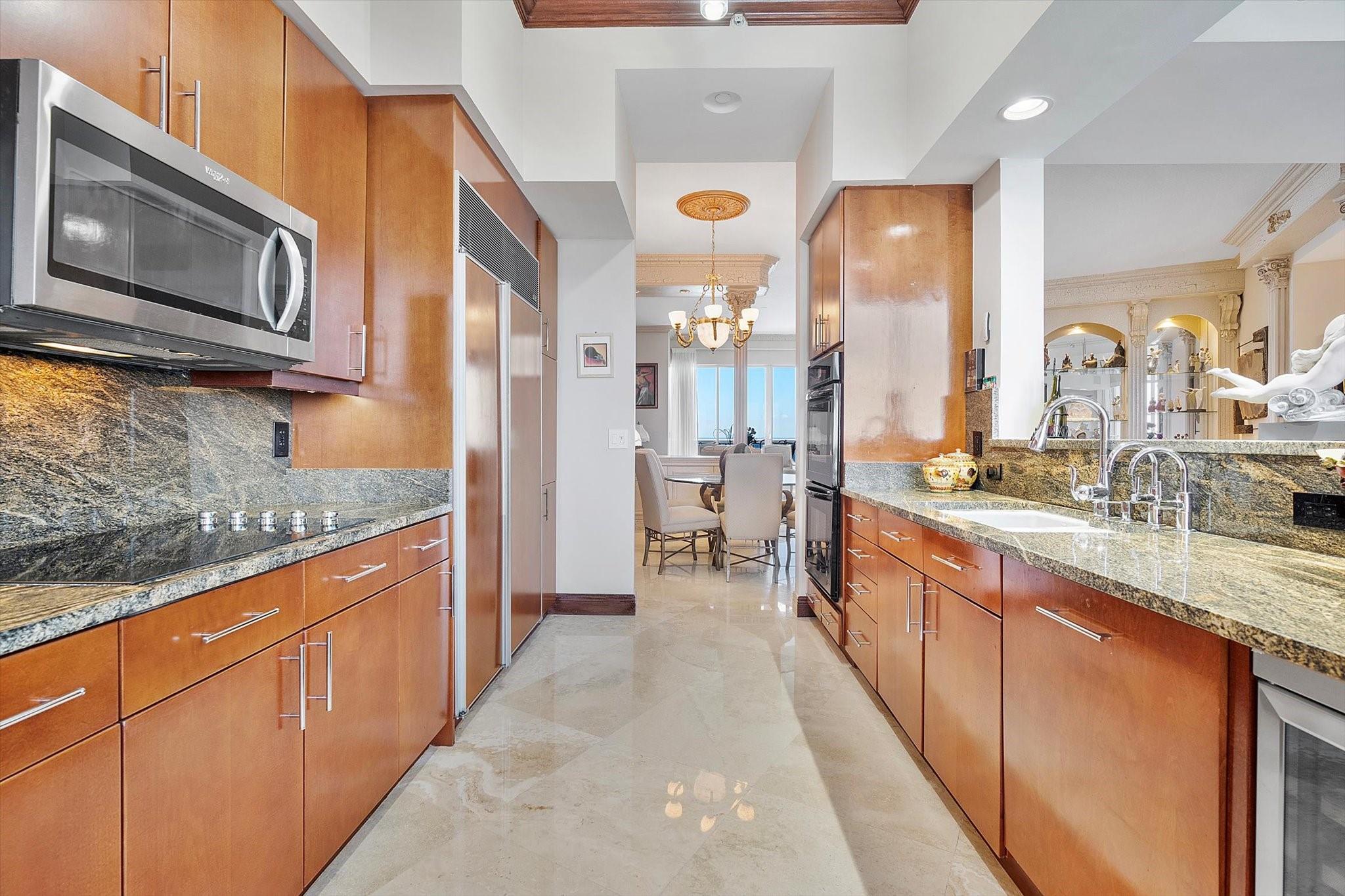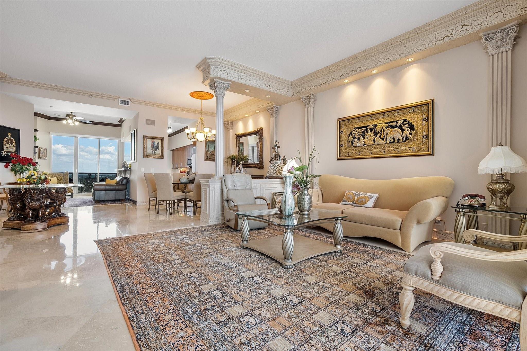 DIRECT OCEAN UPPER PENTHOUSE w/ 11 FOOT CEILINGS at LHermitage Tower 2 - breathtaking, unobstructed views of Ocean and Intracoastal Waterway on 2 balconies. Over 2,100SF open, elegant living space, custom built-ins/marble flooringinside and out. The third bedroom is integrated with open kitchen. 3 FULL BATHS. LHermitage is over 10 acres of resort-style beachfront property and offers unparalleled amenities, including: 2.5-acre elevated pool deck with swimming pools, hot tubs, a kiddie pool, and a full-service oceanfront restaurant/Lush landscaping, shaded lounge areas, expansive green spaces/Full valet service with optional self-parking/concierge/gated entry/on-site security/tennis courts/fitness centers, his/her steam rooms, saunas, and private massage rooms, dog-walking areas and more
