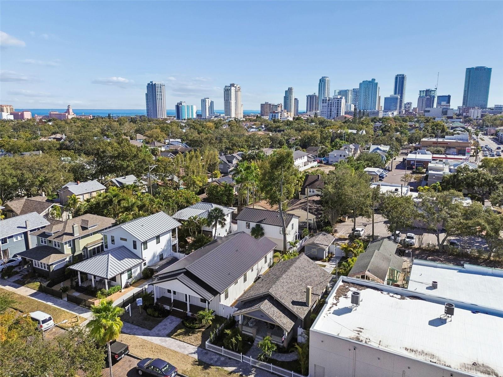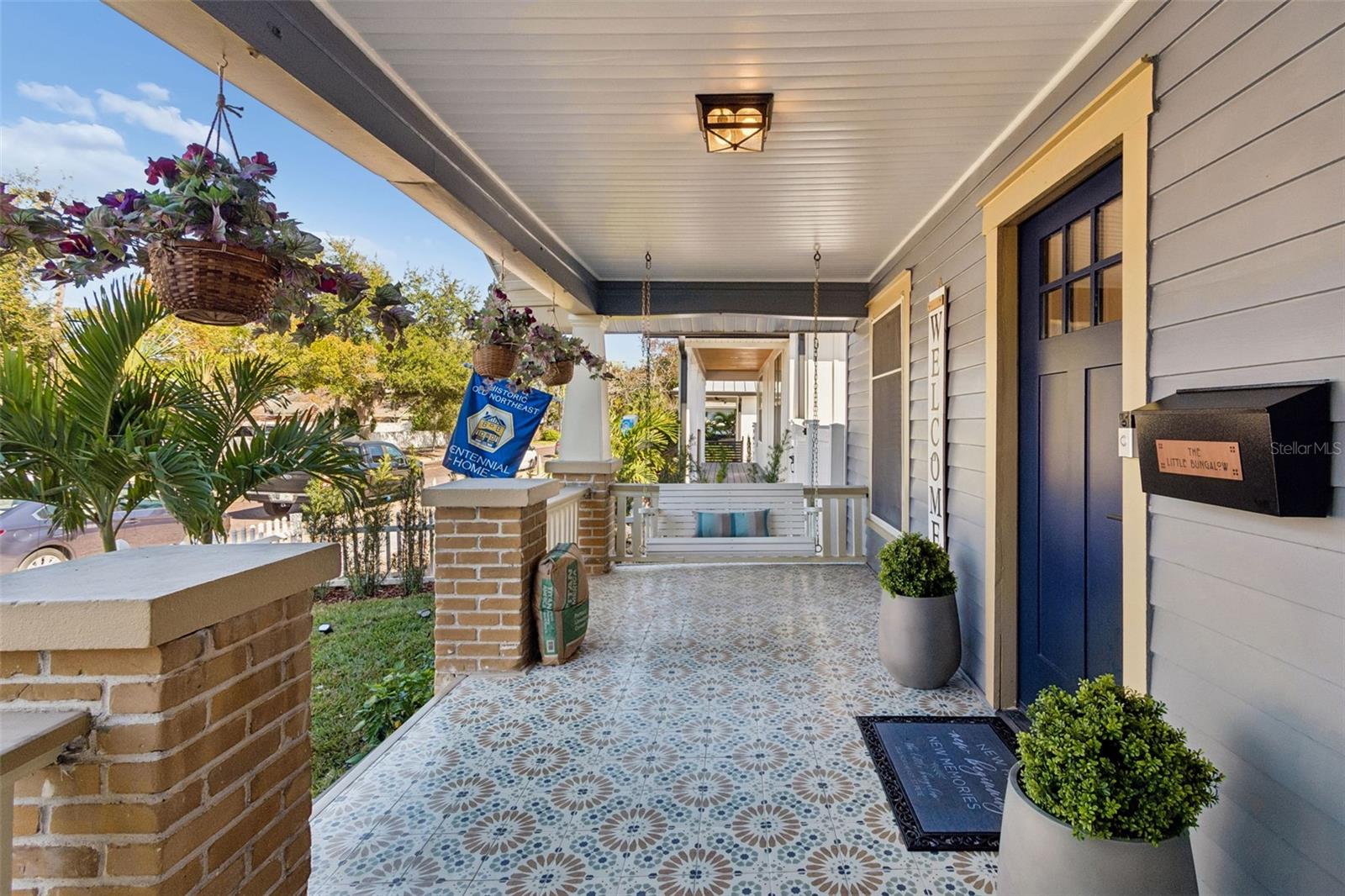 Welcome to this charming 1920's Craftsman Bungalow beautifully renovated and aptly named "The Little Bungalow". Ideally located in the heart of the Historic Old Northeast, this 1128 Sq Ft 2 bedroom/1 bath Bungalow is just steps away from Downtown St Petersburg, Vinoy Park and the vibrant 4th Street Corridor. Recently completely renovated inside and out, offering the ease and enjoyment of a turn- key, move in ready abode.Step up onto the large front porch, classically finished with stunning ceramic tile featuring a vintage bloom patternthe perfect spot to relax and unwind. Inside, the home opens to a bright and inviting living room with a white brick fireplace and built-in shelving that subtly divides the living and dining spaces. Hardwood floors run throughout, complemented by a unique display ledge of the way up the wall that wraps around both rooms, adding architectural charm and character. The dining area features a beautiful white built-in shelf with drawers, plus a wall mirror that enhances the space and light.Both bedrooms are nearly equal in size, each offering a nicely sized closet with stylish barn doors. The hallway includes an enclosed stackable washer and dryer along with additional built-in white cabinetry for extra storage.The bathroom is a showstopperfinished with white subway tile, striking black fixtures and mirror, and vintage black-and-white bloom-pattern ceramic tile flooring. The shower boasts white tile, a black inset shelf, black ceramic flooring, a vertical octagon-pattern accent strip, and a rainfall showerhead with a side sprayer for a spa-like experience.The kitchen is equally impressive, featuring gray cabinetry, stainless steel appliances, including a dishwasher, an extra built-in wine cooler, and gorgeous white granite countertops. The peninsula's countertop is perfect for barstools, and the eat-in kitchen is surrounded by floor-to-ceiling windows, flooding the space with natural light. In addition, off the kitchen area and bar, is a sunroom, surrounded by windows, overlooking the well-manicured, landscaped backyard, and full of natural light, a perfect space for meals, home office or relaxation space. Perfect for nights at home or entertaining guests.Outside, youll find an outdoor oasis thats truly rare for downtown living with its recently done professional landscaping! This private sanctuary is perfect for entertaining or relaxing and includes ceramic pavers, a brand-new backyard deck, stepping stones, a new white vinyl fence, multi-layered lush tropical trees and flowers, and solar-lit walkways that create an incredible outdoor atmosphere. Additional features include a 1-car garage with an extra washer and dryer; plus additional paved parking spaces located just behind the garage.The Little Bungalow blends timeless Old Northeast charm with thoughtful modern upgradesall in an unbeatable location! Call and make The Little Bungalow your home today!*1128 Sq Ft*Roof Warranty*Professional Landscaping*Termite Warranty*Completely renovated inside and out*Outdoor Oasis*Turn Key- Move in Ready!