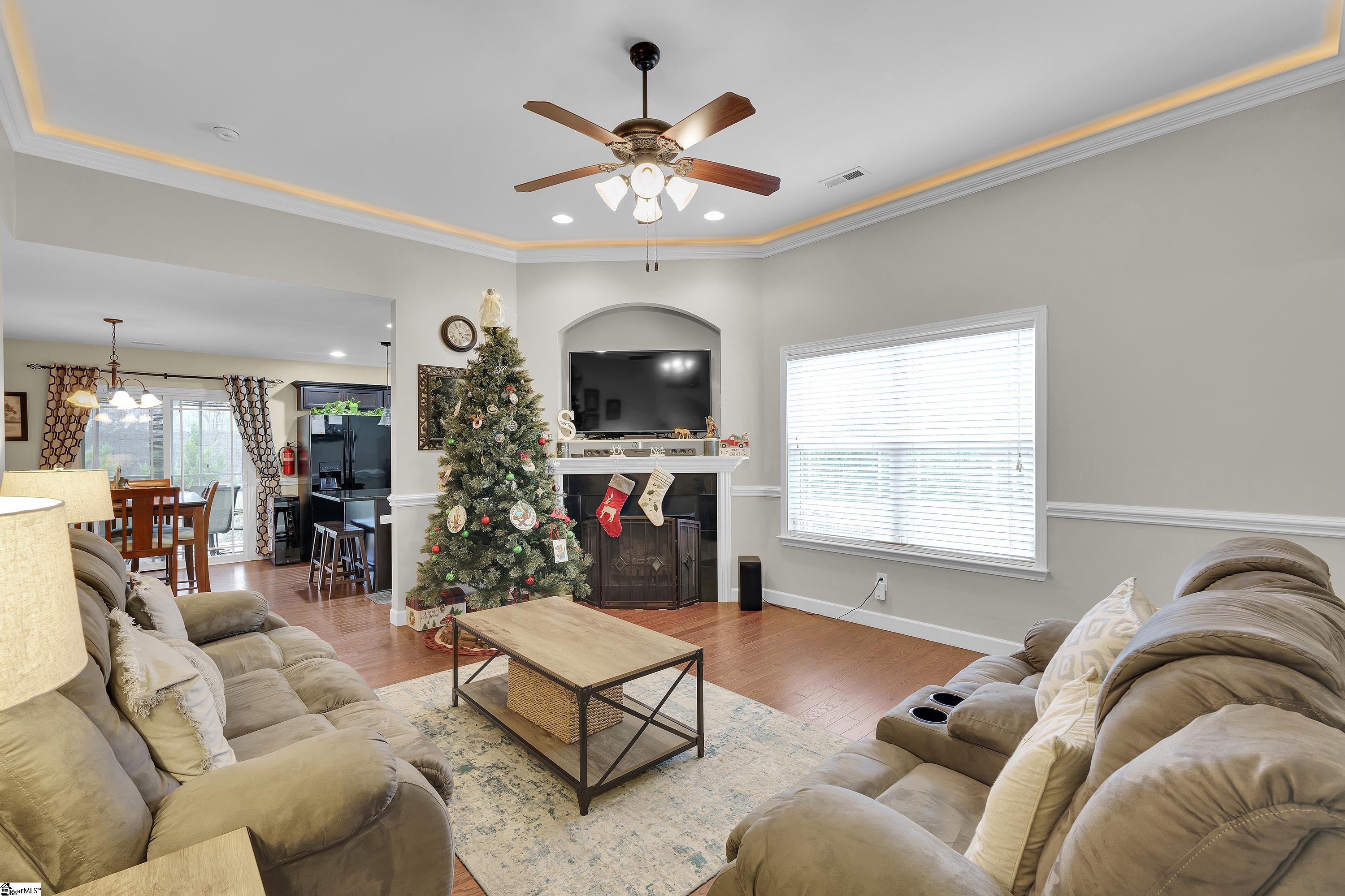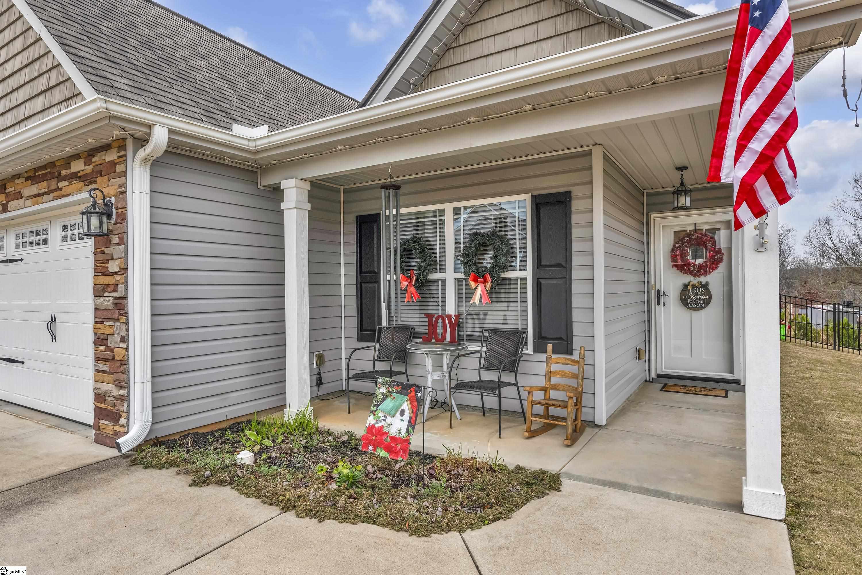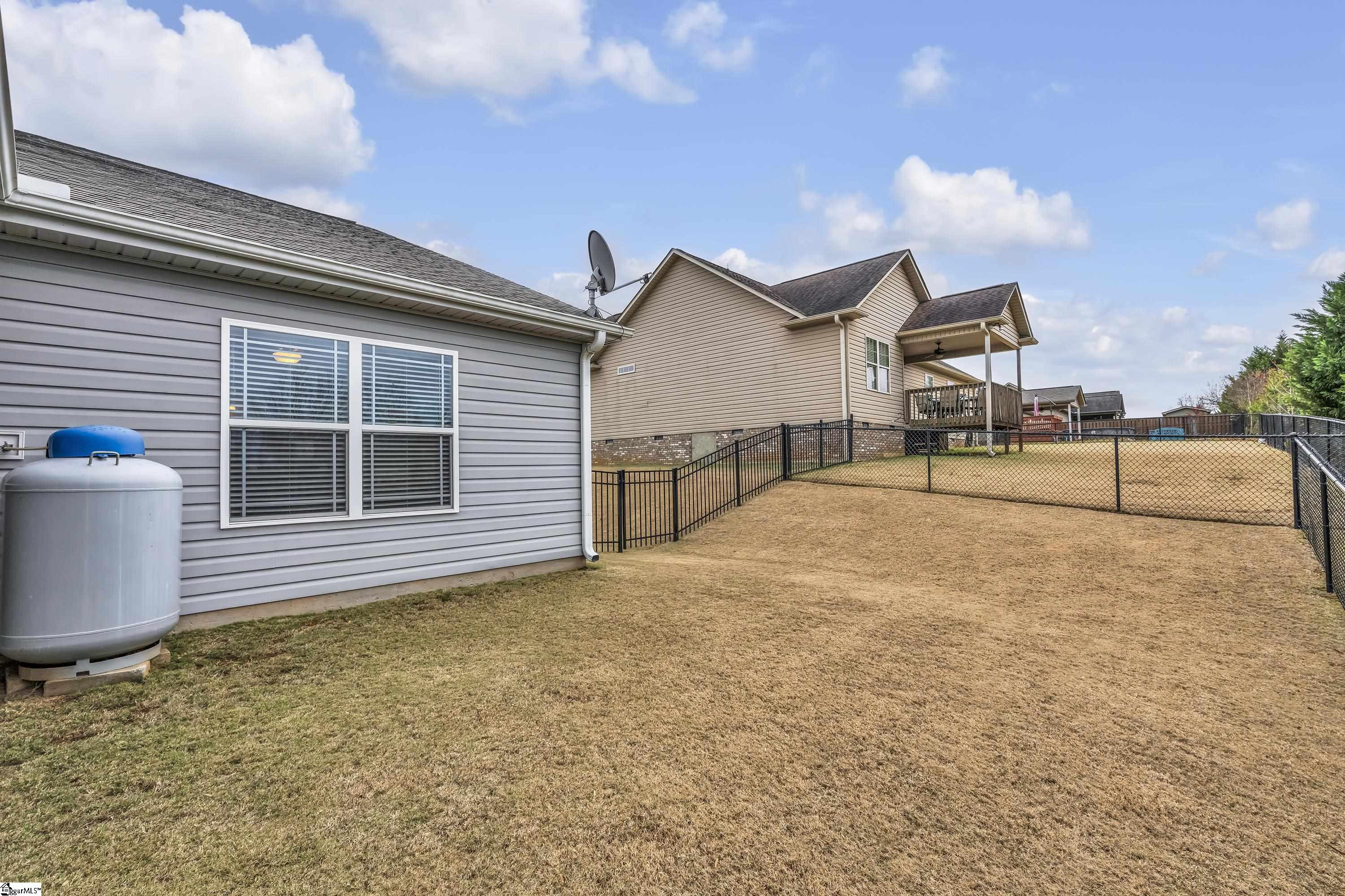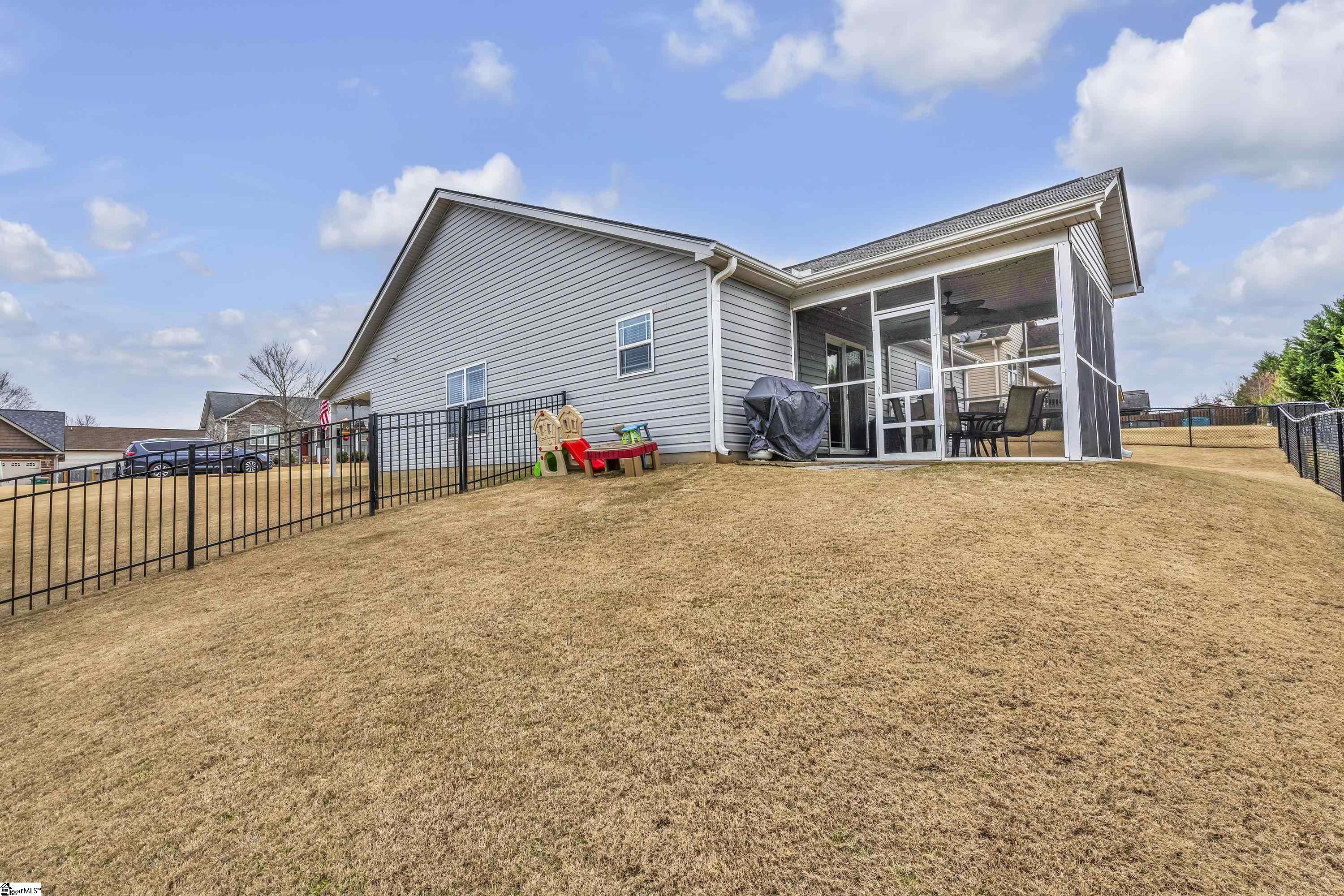 Great starter home in Boiling Springs! You will love this home that is nestled in the outskirts of Spartanburg County. This home is in Harvest Ridge Subdivision. It has 3 bedrooms and 2 full baths with a 2 car garage and metal fenced backyard. You enter the home through and alcove front porch. There is a foyer that leads to a great room with a gas long fireplace with a tv nook above. The kitchen has stainless appliances, a barstool island and a sliding door to the screened back porch. The floorplan is a split bedroom style with a true laundry room. The living room and owners suite have rope lighting and there is some chair rail molding. What a wonderful home to begin your homeownership dreams or a home for a downsizing buyer. 100% financing is available for qualified buyers. Do not let this sweet home pass you by. You will love it!