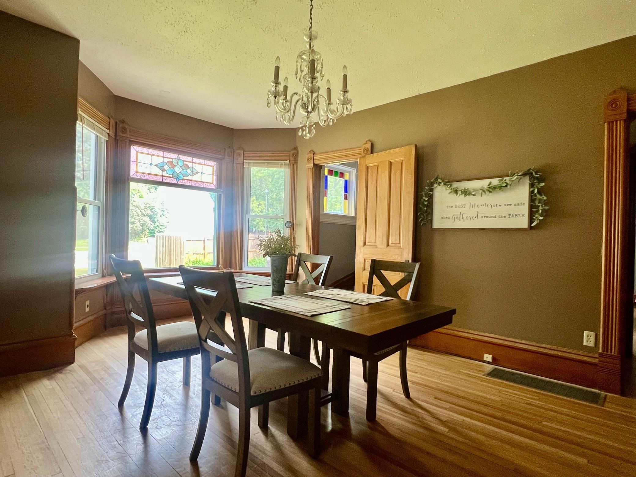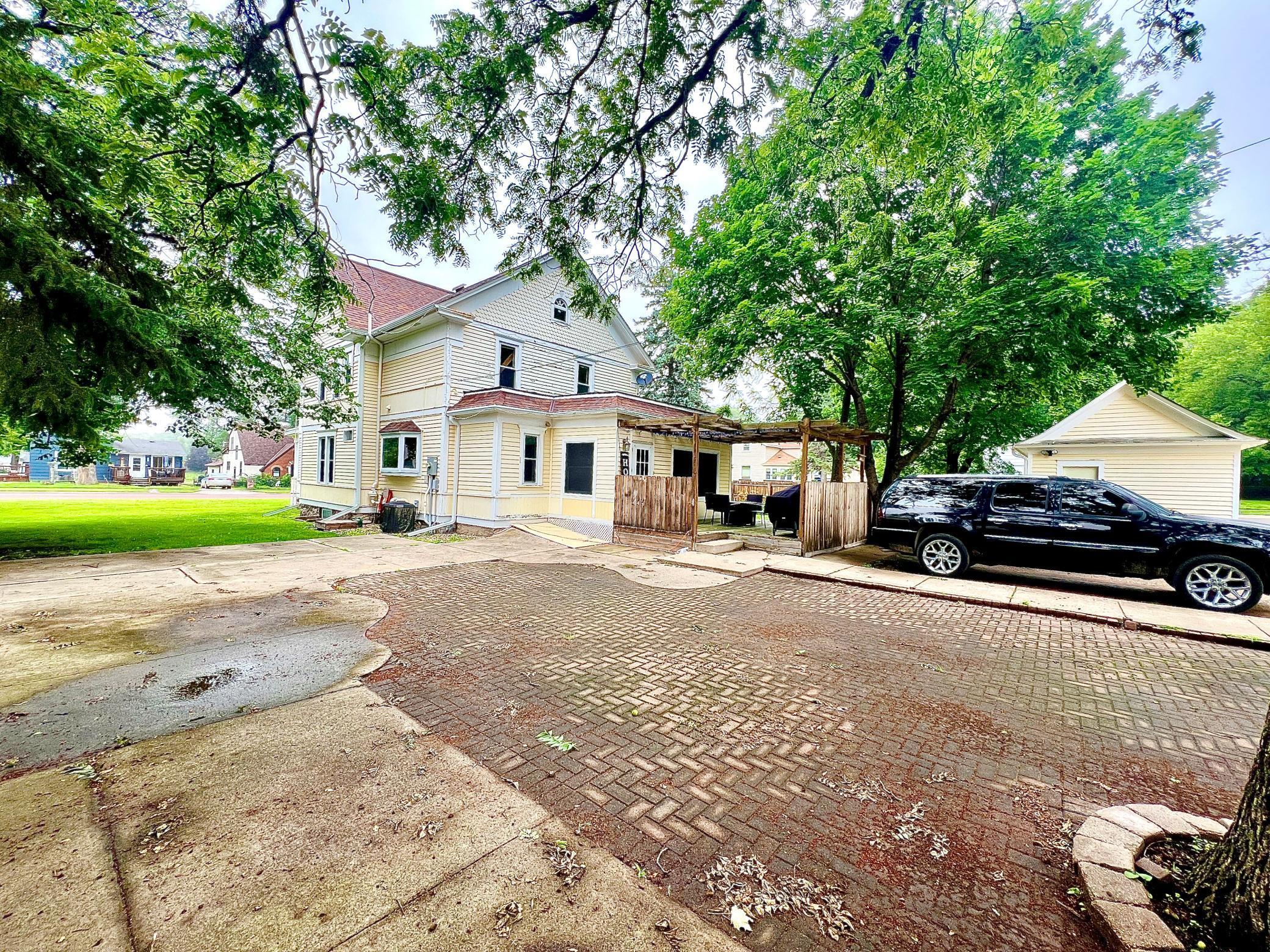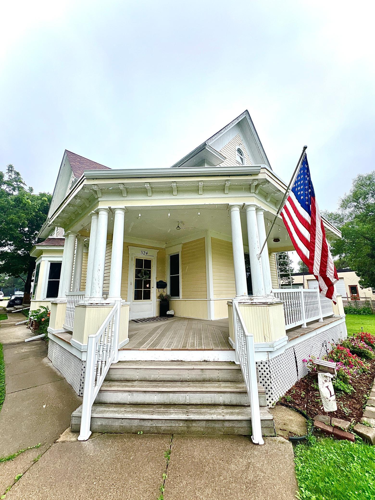 This stunning Victorian home in Ortonville is truly a masterpiece. From the moment you step inside, you're greeted by unique and timeless features. Parquet floors in the entryway and sitting parlor, vibrant leaded glass windows, intricate woodwork, and gorgeous pocket doors capture the eye. Natural light floods the space through large windows. The kitchen boasts a spacious picture window and recently restored cabinetry, while the formal dining room showcases a built-in, lighted buffet. Offering five bedroomsone on the main floor and four upstairsthis home sits on a corner lot and features a charming wraparound porch with a swing and a lovely back patio. Additionally, theres a detached garage and a storage shed and newly installed radon remediation system. Located just moments from the lake, downtown, and multiple parks, this home is the perfect blend of elegance and convenience. Dont miss the opportunity to see it!