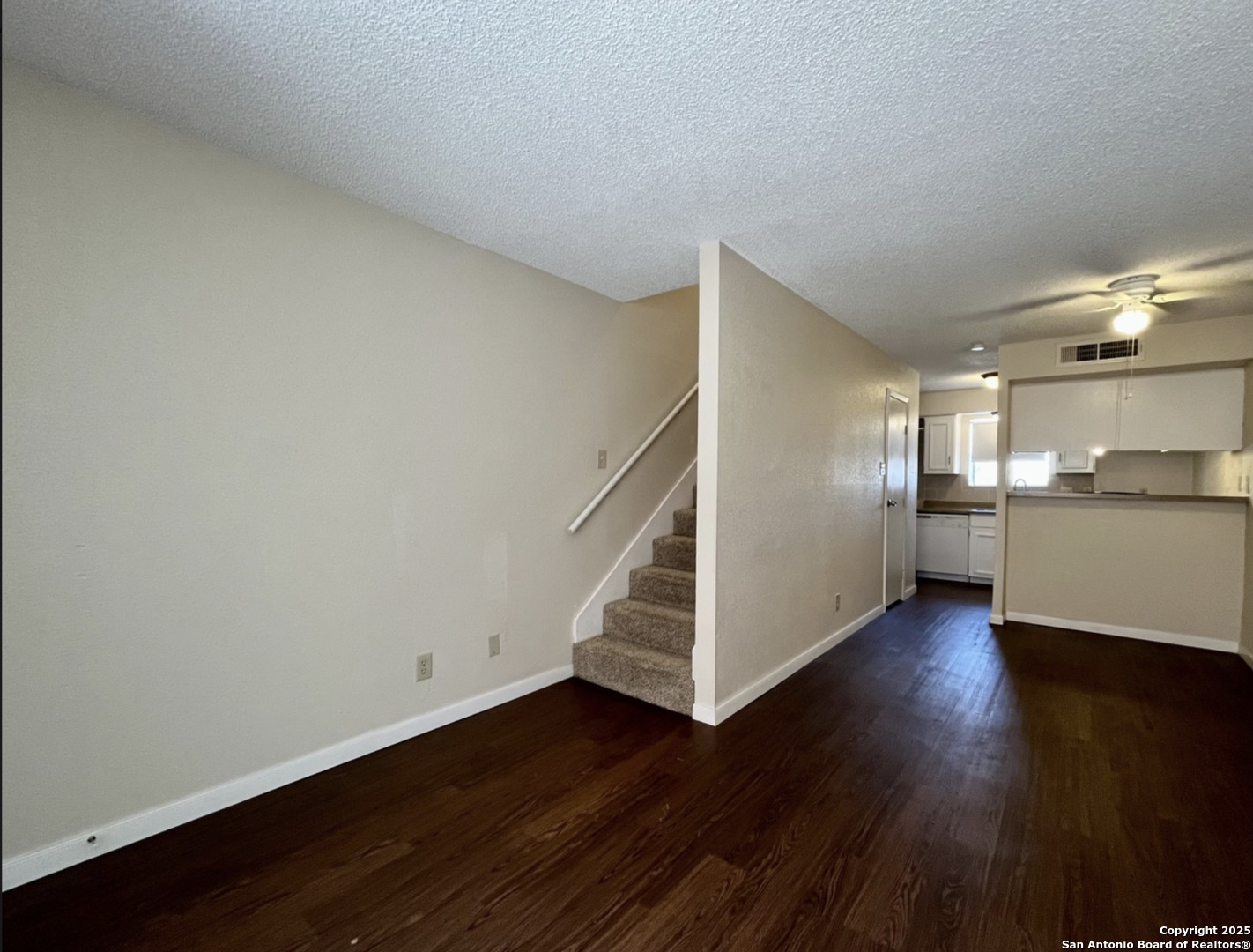 Introducing the Vertical Villa - where your townhome adventure begins on the second floor of the building, and your retreat space defies gravity on the third floor! If you ve ever dreamed of living life on the upswing, this one-bedroom, two-story townhome condo is your ticket to new heights! As you ascend to your aerie in the sky, you ll find a cozy living room and kitchen with luxury vinyl plank flooring. Who needs an elevator when you ve got this unique stairway workout built right into your daily routine? For added convenience, we ve thoughtfully included stacked washer and dryer connections right in the kitchen area - laundry day just got an upgrade! Speaking of upgrades, the kitchen boasts all the essentials: dishwasher, stove range, and a hood vent that could probably power a small rocket. And if you re a fan of ceiling fans, you re in luck - there s one in the bedroom to keep you cool as you soak in the panoramic views of your assigned carport space (because even your car deserves a stylish spot). But the piece de resistance? Your private balcony off the primary bedroom. Picture yourself sipping your morning coffee with the eagles - okay, maybe not eagles, but definitely a few chirping birds. The large bathroom upstairs features a tub-shower combo, a single vanity area with plenty of counter space, and a linen closet that s practically a walk-in closet in disguise. For those who love a good splash, the community pool and lounge area are just a hop, skip, and a jump away. And when you re ready to spread your wings, you ll find yourself conveniently close to the San Antonio Airport, McAllister Park, and Lady Bird Johnson Park. Don t let this chance to live life on the up-and-up pass you by.