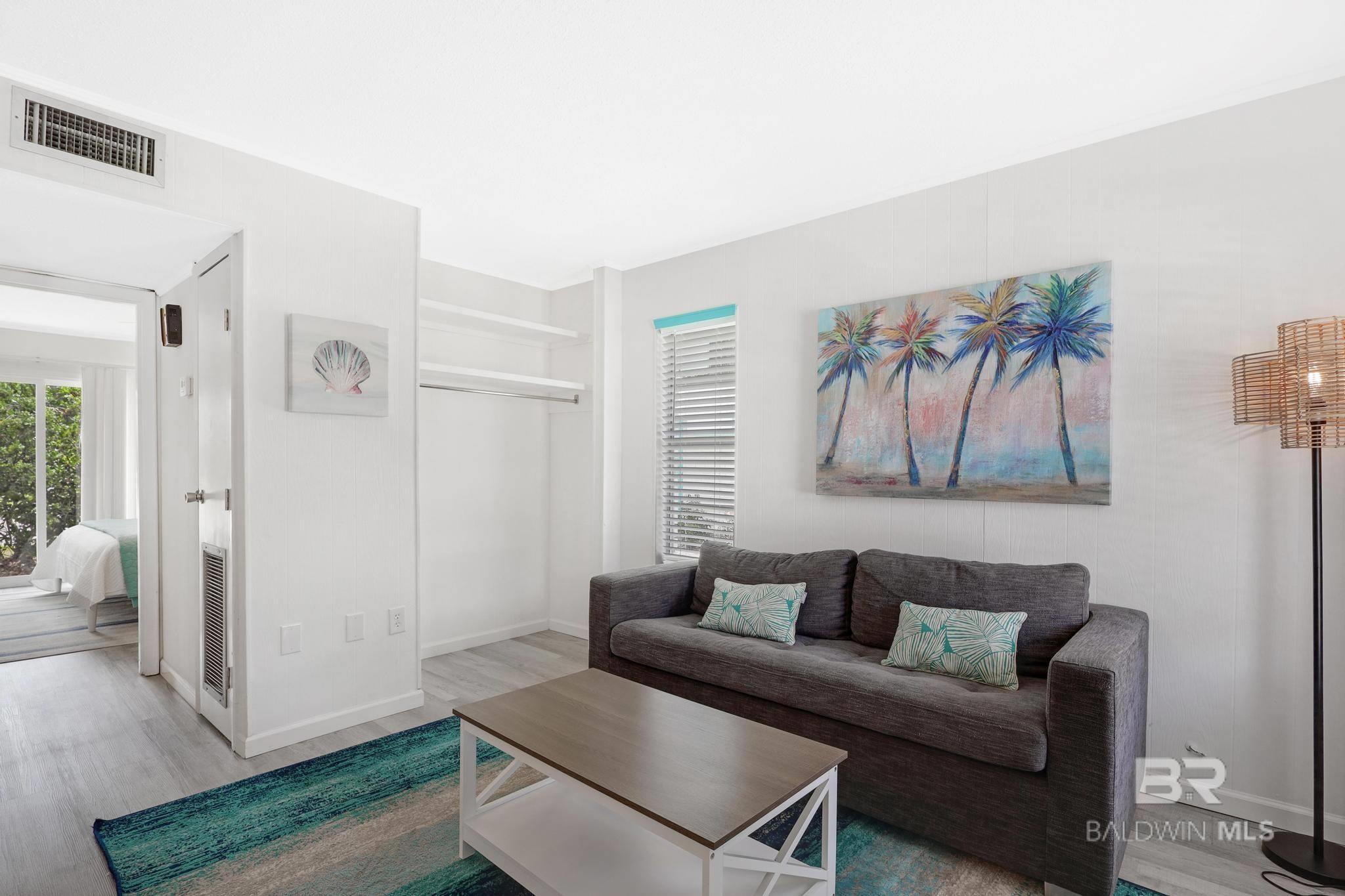 **BRAND NEW A/C JUST INSTALLED**. Rare opportunity to own a fully renovated ground-floor condo in the iconic Island Villa, part of the new Waterway Village District. This 1-bedroom, 1-bath unit is perfect as a second home or investment property. Ideally located just 5 minutes from white sandy beaches and within walking distance to trails, shops, and diningincluding Gulf Shores only brewery. The complex boasts a new roof, fresh paint, landscaping, and a brand-new pool. Inside, the condo is bright and modern with new LVP flooring, updated lighting, and a fully furnished, rent-ready setup. It comfortably sleeps 4 with a king bed and a queen sleeper sofa. Buyer to verify all information during due diligence.