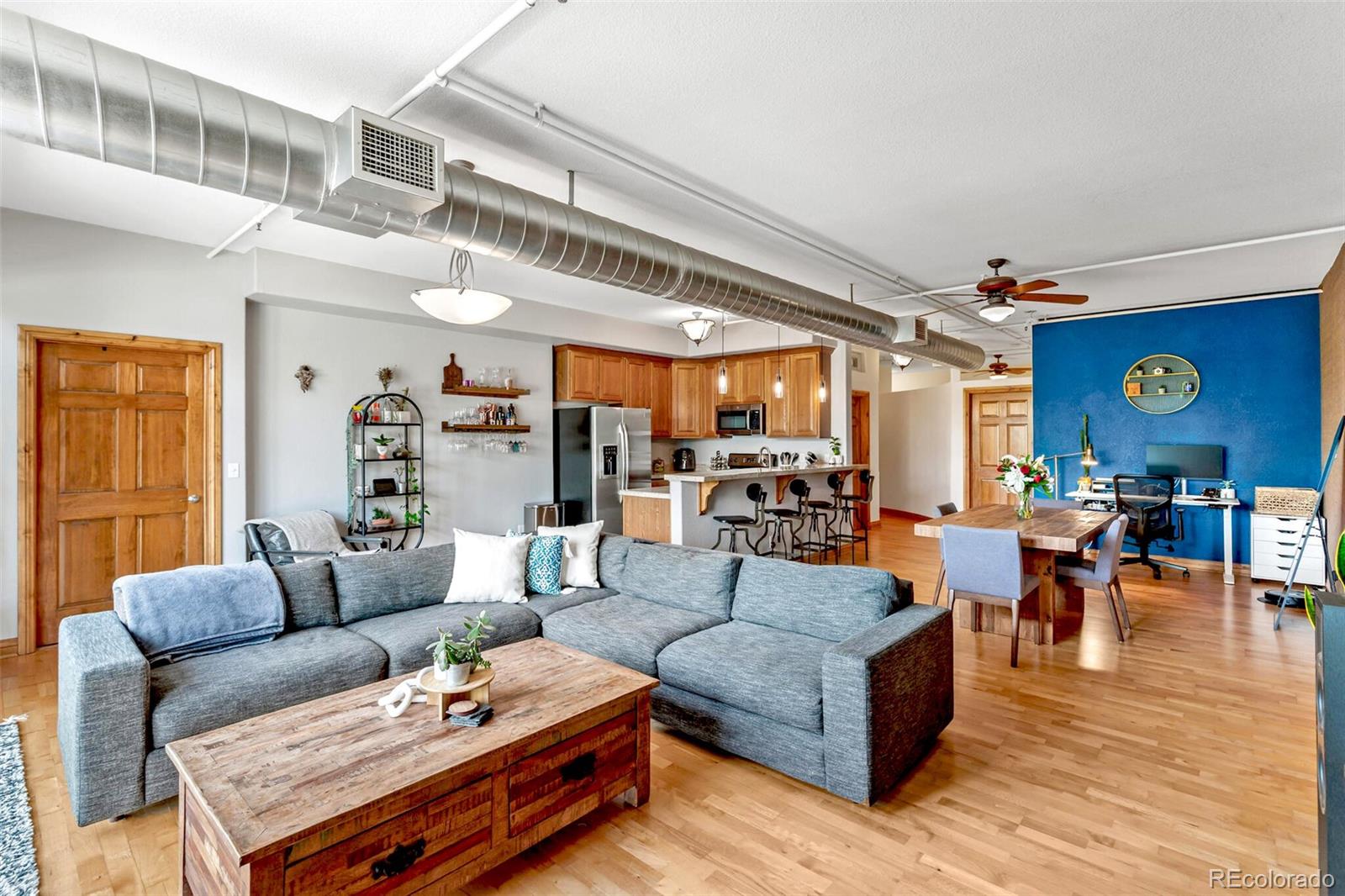 Welcome to the Argyll Flats Unit 302, a vibrant loft-like contemporary condo in the heart of Highland's Square! Step inside and immerse yourself in the modern industrial loft vibes, accented by high ceilings, wood floors, and exposed ductwork. The sweeping great room entertains with ease and lives beautifully with an open concept layout that connects the kitchen, dining, and living areas. Huge windows deliver treetop views of the Highlands and incredible natural light that fills the space. The great room offers a massive space where you can lounge, entertain, and dine, with room to spare for your work-from-home office area and a wall of glass that opens to invite in fresh air. The efficient kitchen features granite counters, ample cabinet and counter space, and a breakfast bar with seating for casual day-to-day dining. In-unit laundry is a huge bonus, and the laundry room is equipped with incredible extra storage that feels like a walk-in pantry PLUS plenty of space for all your gear and goods. Your king-sized bedroom features a nicely appointed walk-in closet, built to accommodate the wardrobe of any outdoorsman or fashionista! If that wasn't enough, the entryway offers a nicely sized coat closet, too! Additional private storage space and owned parking in the attached secure underground garage add to the convenience. Step outside to the best of Highlands Square yoga, breweries, coffee, dining, shopping, and community events like the Highlands Farmer's Market are all just seconds away. Location is unmatched! Easy access to downtown Denver and onto the highways for your work commute or to the foothills is a breeze from this superstar location. Make this one yours today!