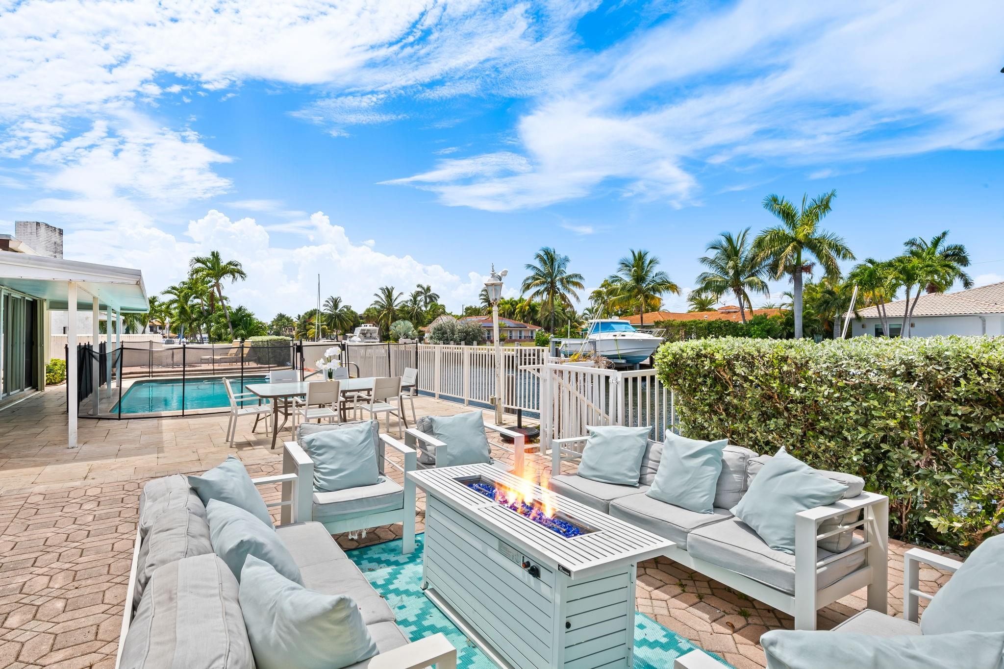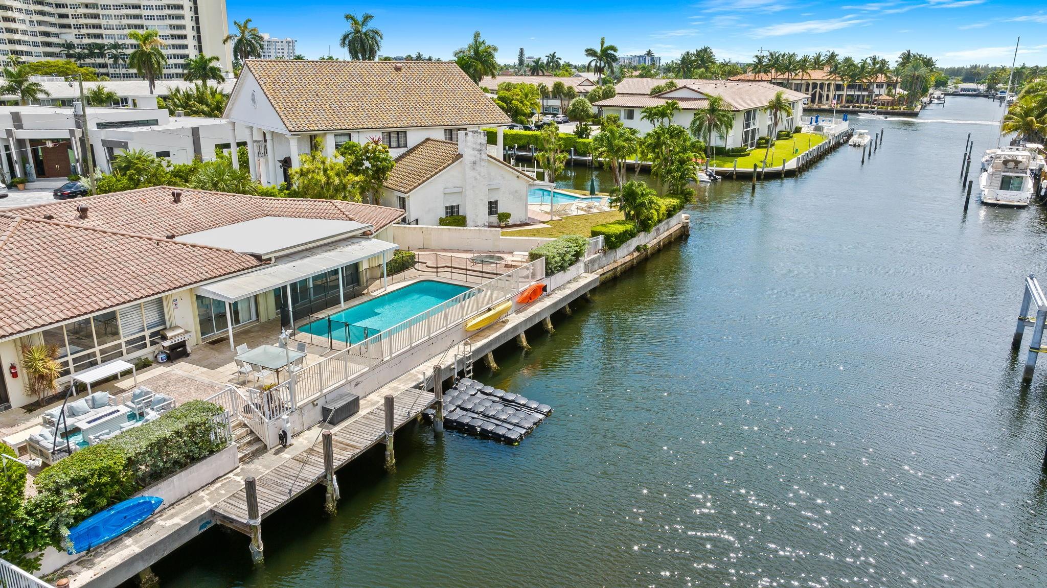 100' of deepwater frontage in the exclusive Bermuda Riviera with no fixed bridgesideal for yacht owners & water enthusiasts! Fully furnished & move-in ready 4 bedrooms, 4 bathrooms home w/ 2,771 SF, split floor plan & private-entry guest suite. Enjoy a heated pool, jacuzzi, private dock, floating dock, oversized patio, cabana bath, BBQ area & outdoor lounge. Spacious kitchen with snack bar opens to bright living, dining & family areas. Bonus entertainment space with ping-pong table. Accordion shutters, 2 driveways, laundry room with extra storage. Located on a quiet cul-de-sac for added privacy near the beach, Las Olas, Coral Ridge Mall, Bayview Elementary, Lauderdale-by-the-Sea, Galleria Mall, golf, parks, airport, shops, restaurants, nightlife, and everything South Florida has to offer!