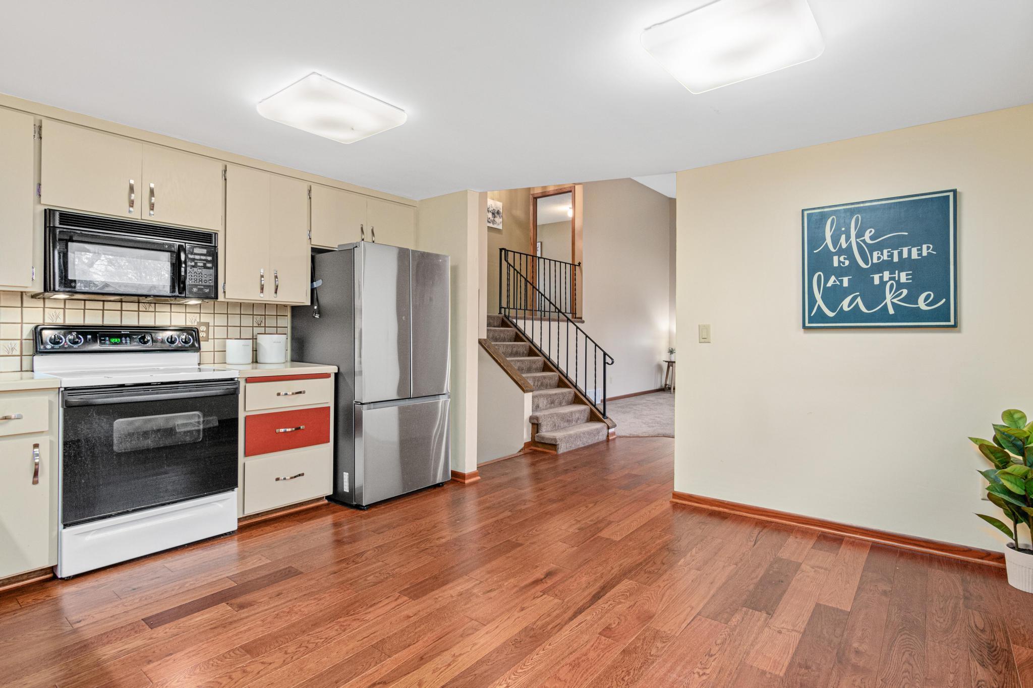 Welcome to this inviting home perfectly situated in a peaceful neighborhood just a short walk from Spring Lake and the Upper Prior Lake boat launch. Enjoy the best of outdoor living with a spacious, flat backyardideal for entertaining, gardening, or enjoying morning coffee. Step inside to the main-level living room featuring vaulted ceilings that leads directly to the large kitchen with informal dining area. The upper level includes three comfortable bedrooms and a full bathroom, offering a practical layout for both privacy and convenience. The walkout lower level is designed for relaxation and gathering, featuring a cozy second living room with a wood-burning fireplace, a bath, and a laundry room. From here, step directly onto the oversized 374 sq. ft. back yard patio. A second lower level both extends the living space with a flex room ideal for a home office, gym or hobby room as well as provides additional options with a 260 sq ft storage room. New HVAC in 2022, usable well, built in generator, security system. This well-located home blends comfort, function, and outdoor enjoymentready to welcome its next owner.