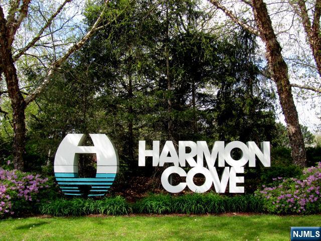 Welcome to Harmon Cove. This 2BR/1.5BTH Yarmouth model borders the scenic Hackensack river with water views. Step into a large living room w/ cathedral ceilings, wood burning fireplace and sliders to a beautiful deck overlooking the water and park like setting. Step up to find a primary suite w/ primary bath along with another guest bedroom and 1/2 bath off of hallway. W/D in unit. This complex is a commuter's paradise w/ NYC bus, 24hr gated security, outdoor pool with clubhouse, tennis courts, marina, runner's path and so much more! Call/Text Michael 201-240-8422 for private showing.