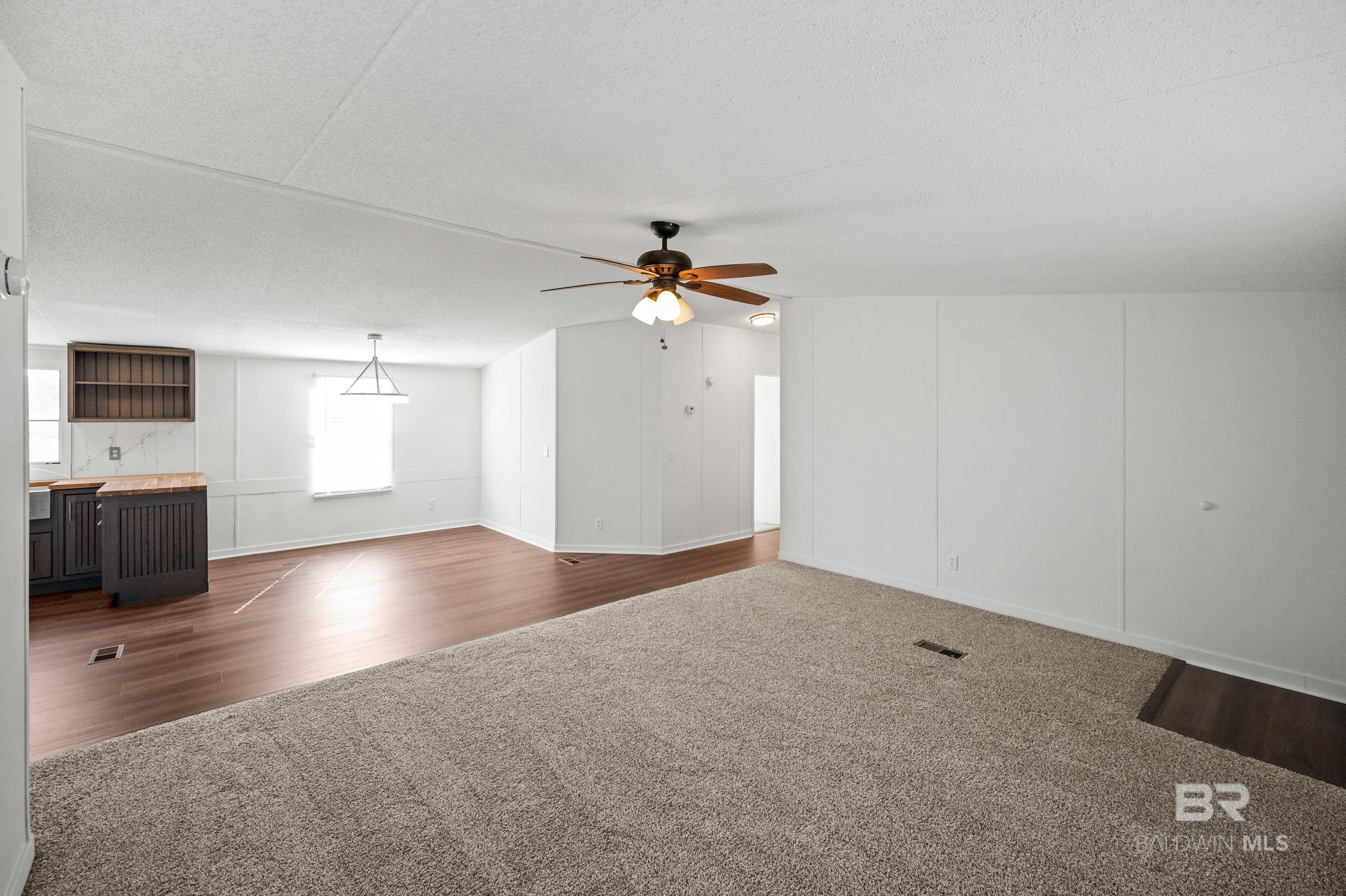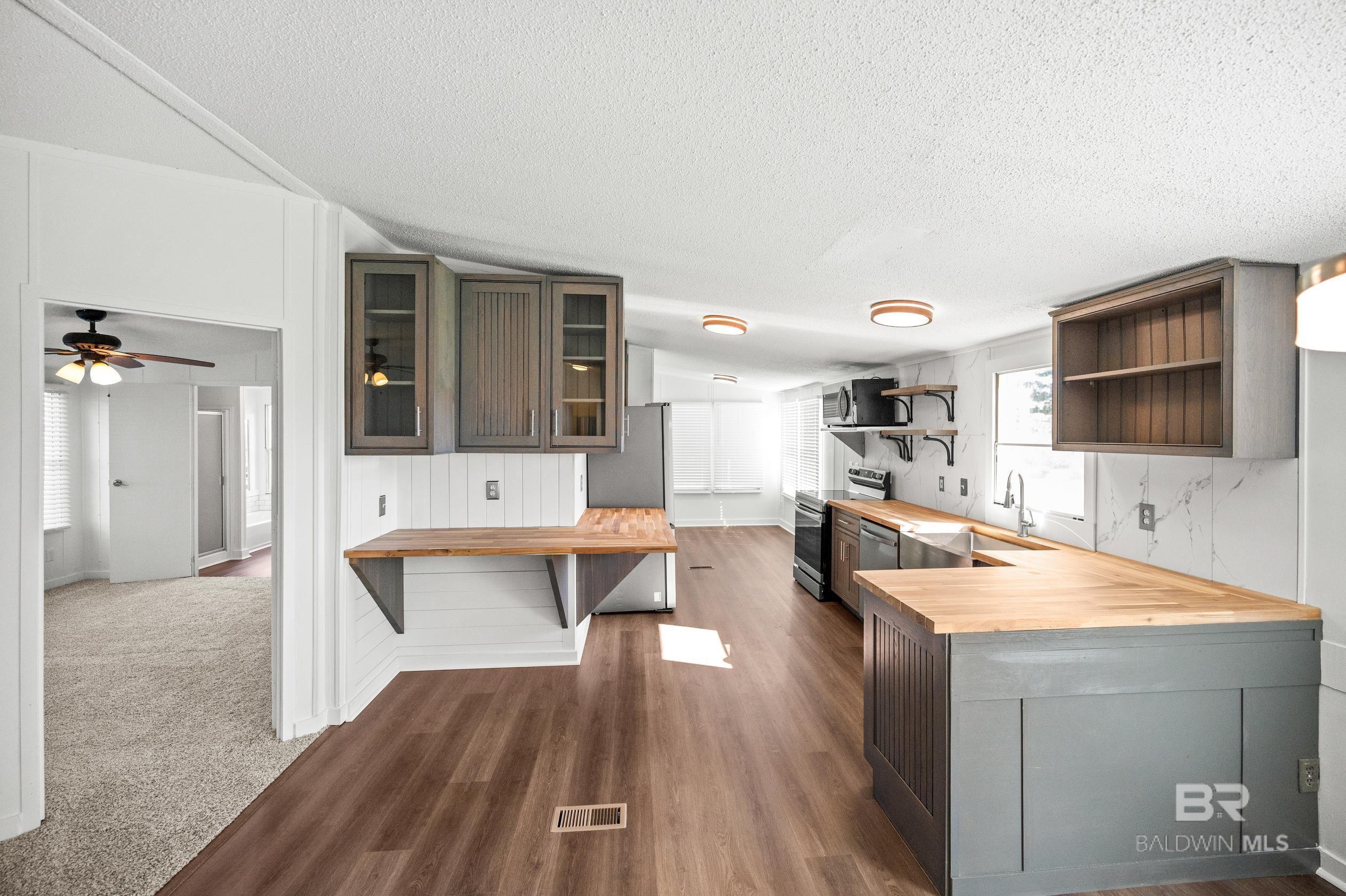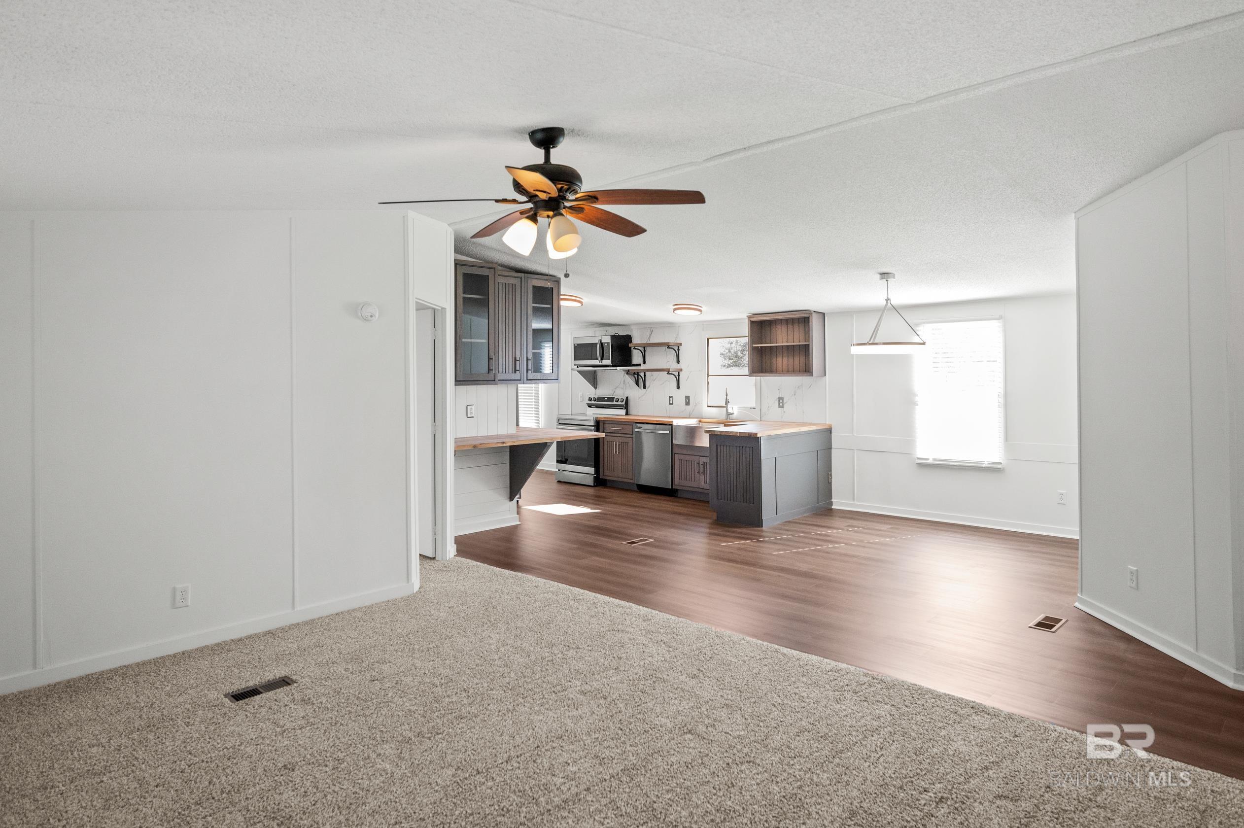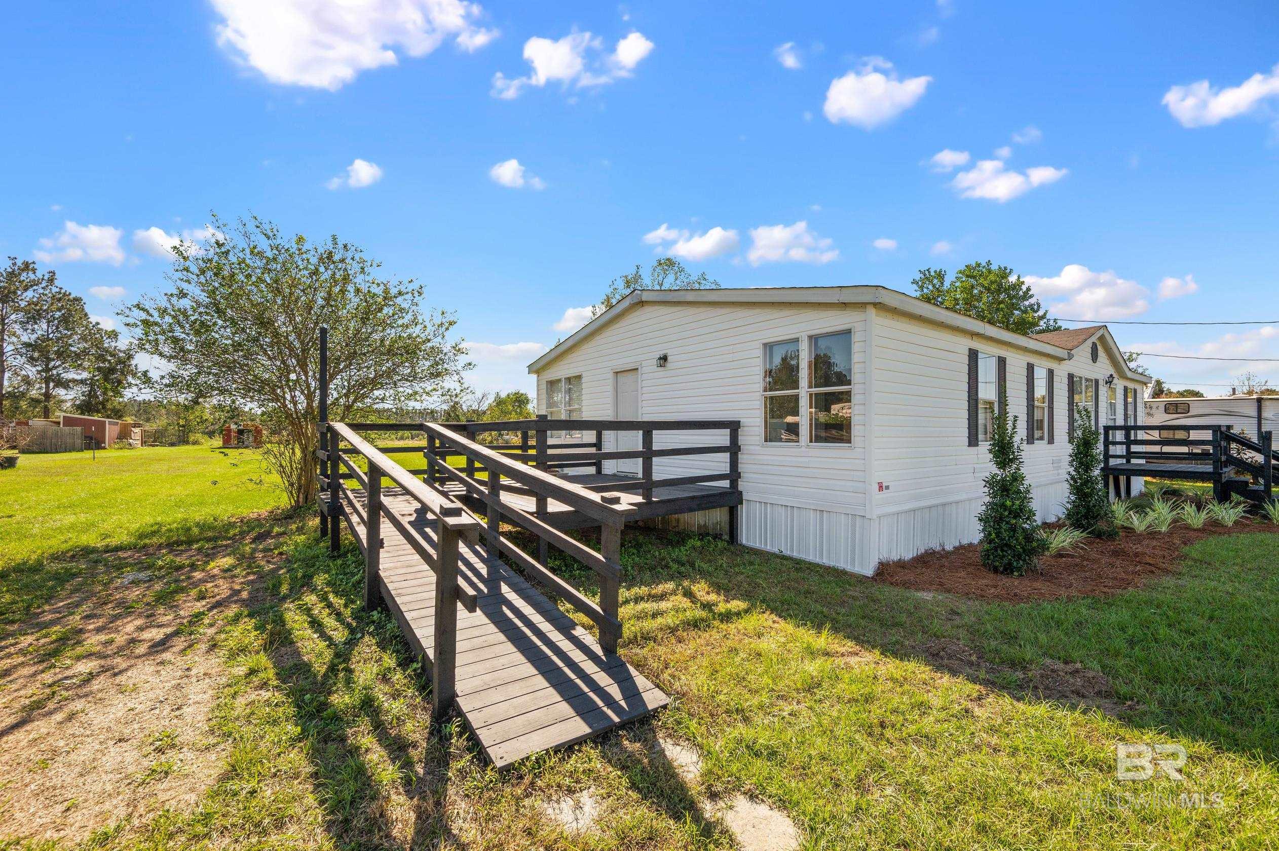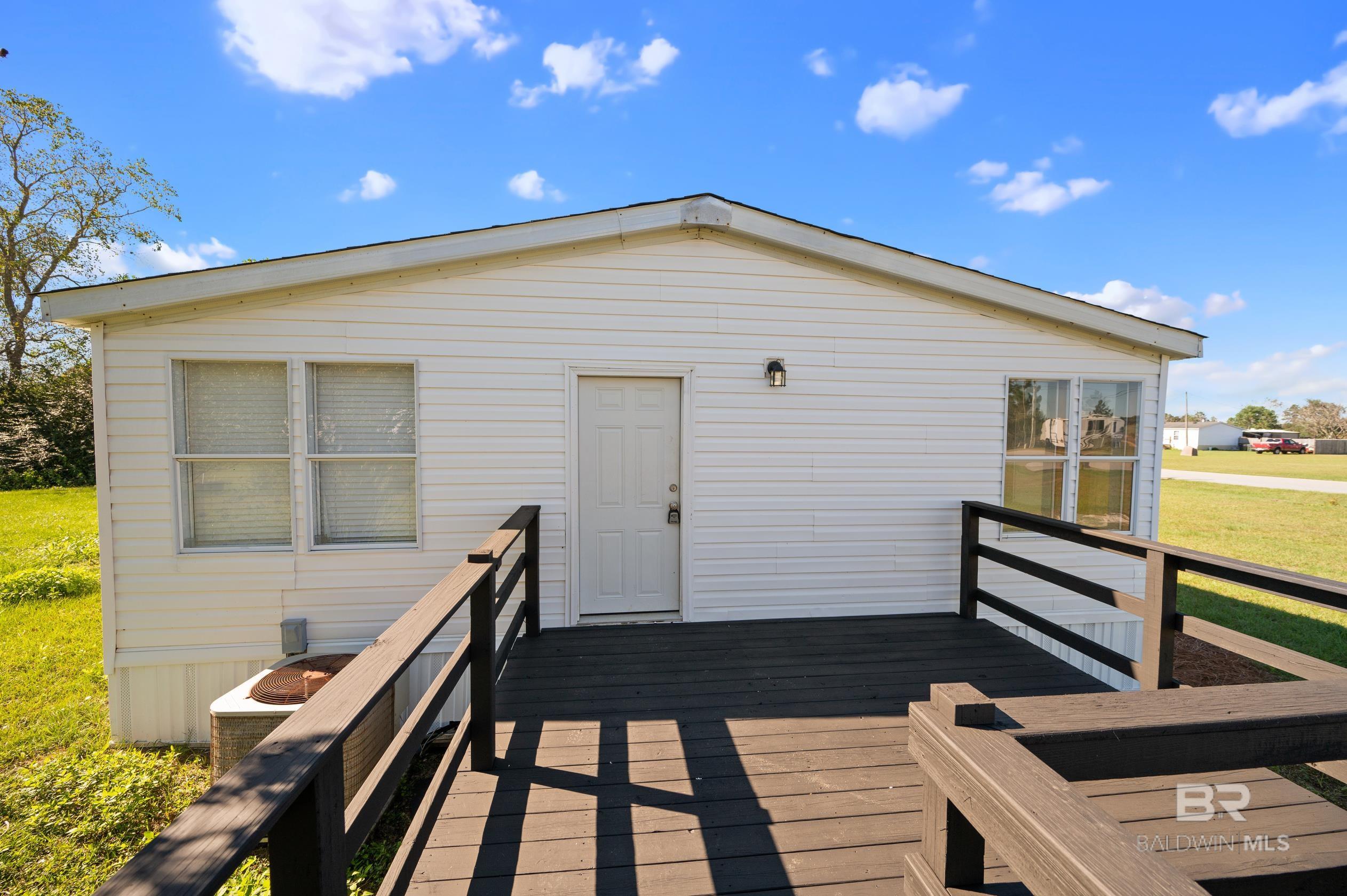 This updated 3-bedroom, 2-bathroom mobile home sits on a spacious 0.7 acre lot in the quiet countryside of Lillian, Alabama. The home offers 1,296 sq. ft. and features a brand-new HVAC system, new carpet, and vinyl plank flooring throughout.The kitchen has been fully renovated with custom cabinets, butcher block countertops, a tile backsplash, and stainless steel appliancesincluding a refrigerator, stove, dishwasher, and microwave. Fresh paint and updated light fixtures complete the clean interior.Outside, the lot has been landscaped and provides plenty of space for outdoor use or future additions. Located on a quiet road with no through traffic, the property is just a short drive to Perdido Bay, Perdido Key, and other nearby Gulf Coast spots. No HOA.Schedule a showing today. Buyer to verify all information during due diligence. CASH ONLY