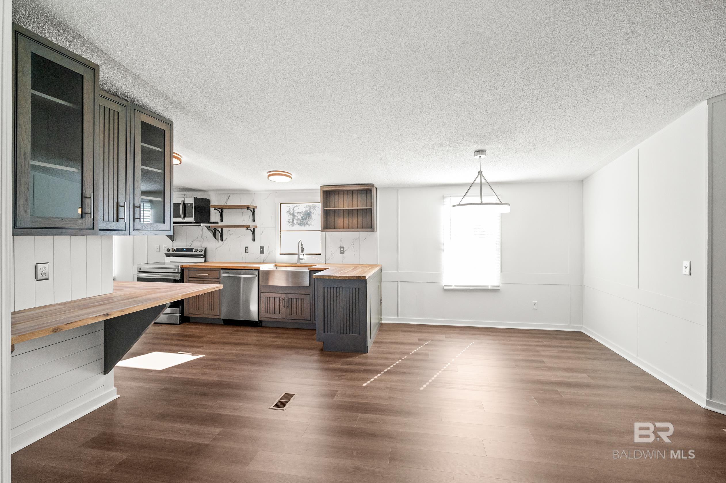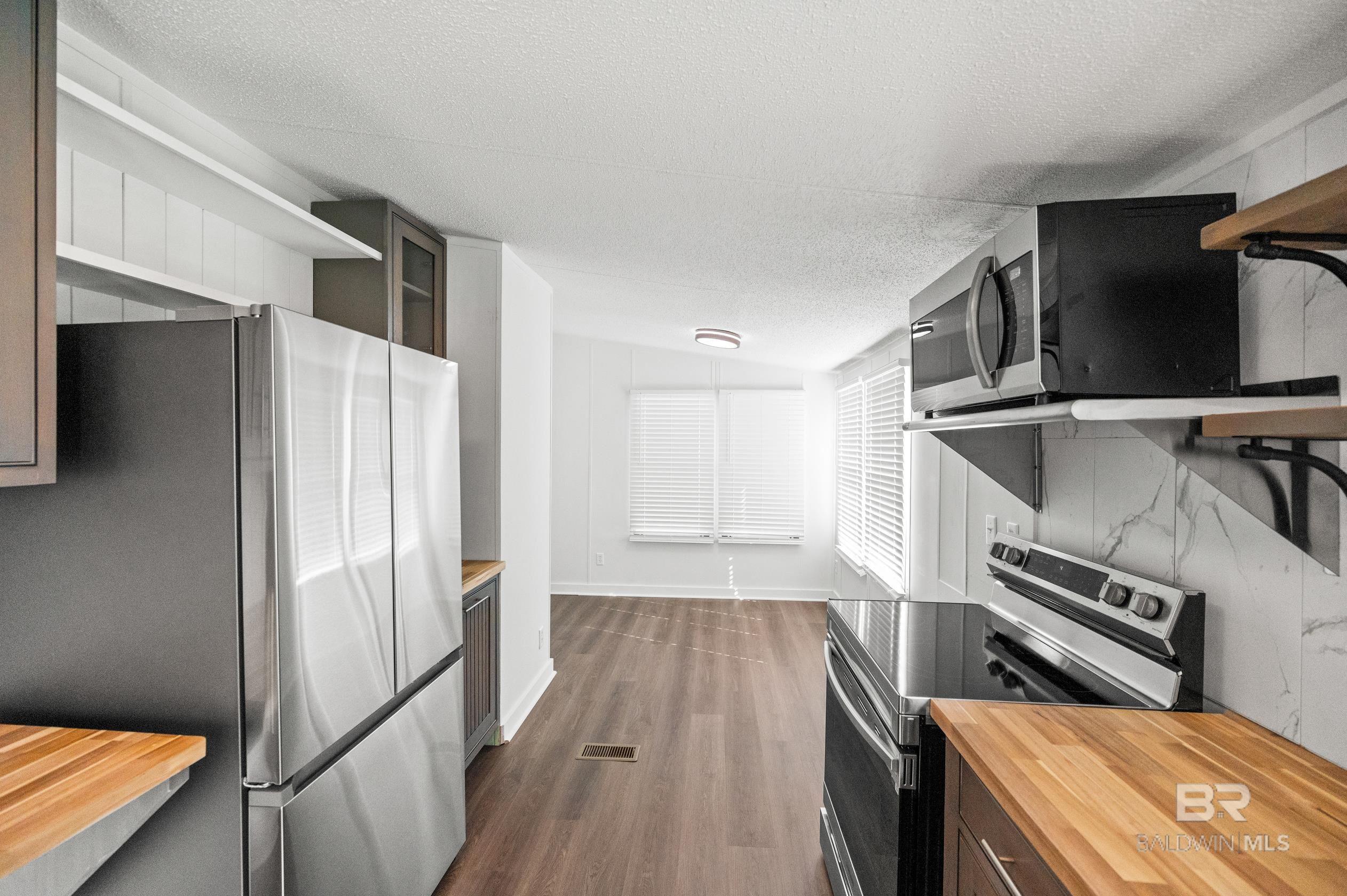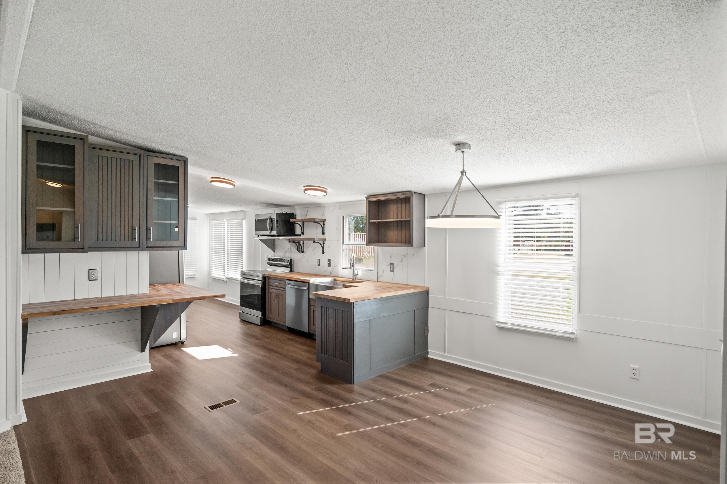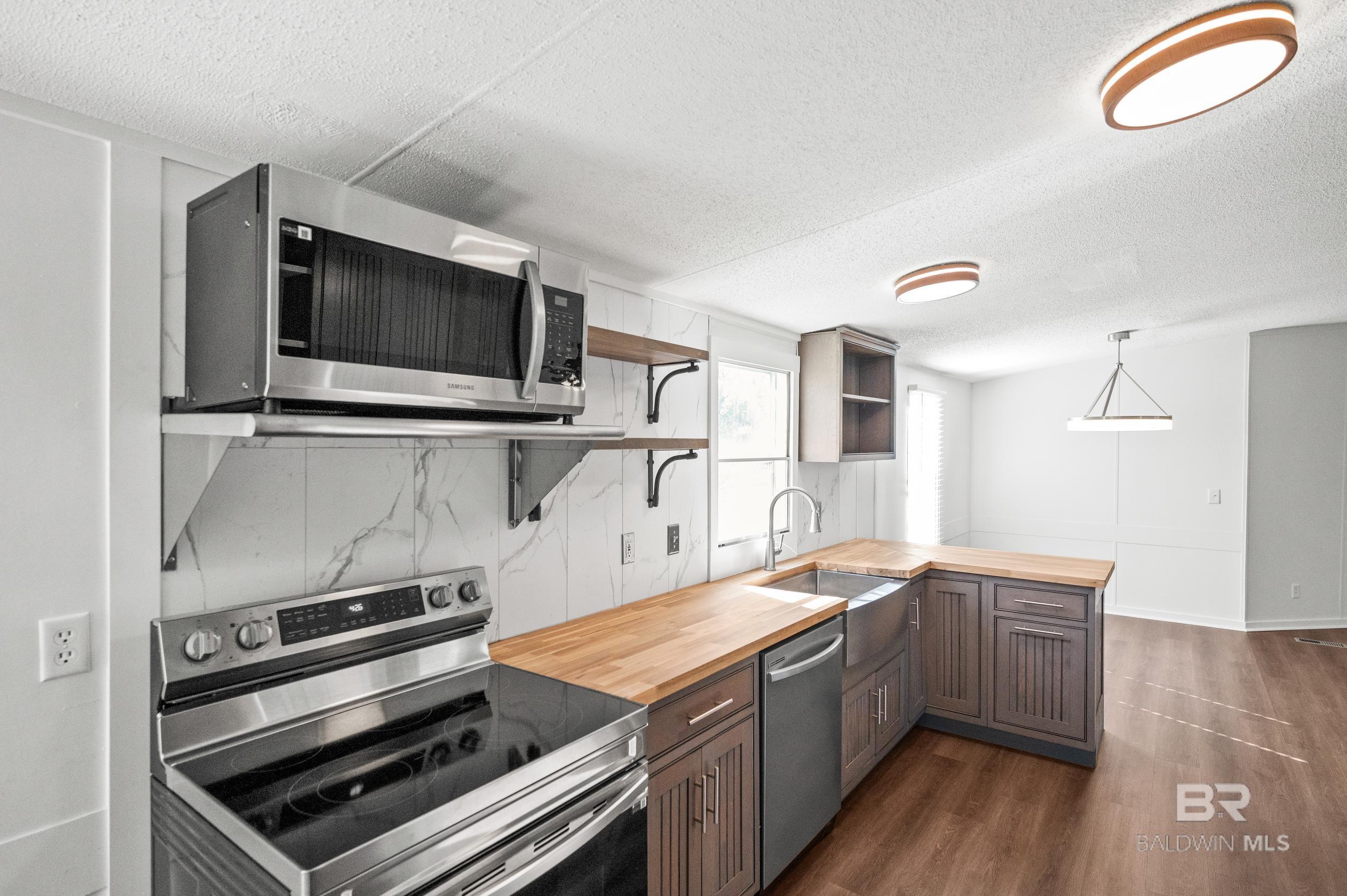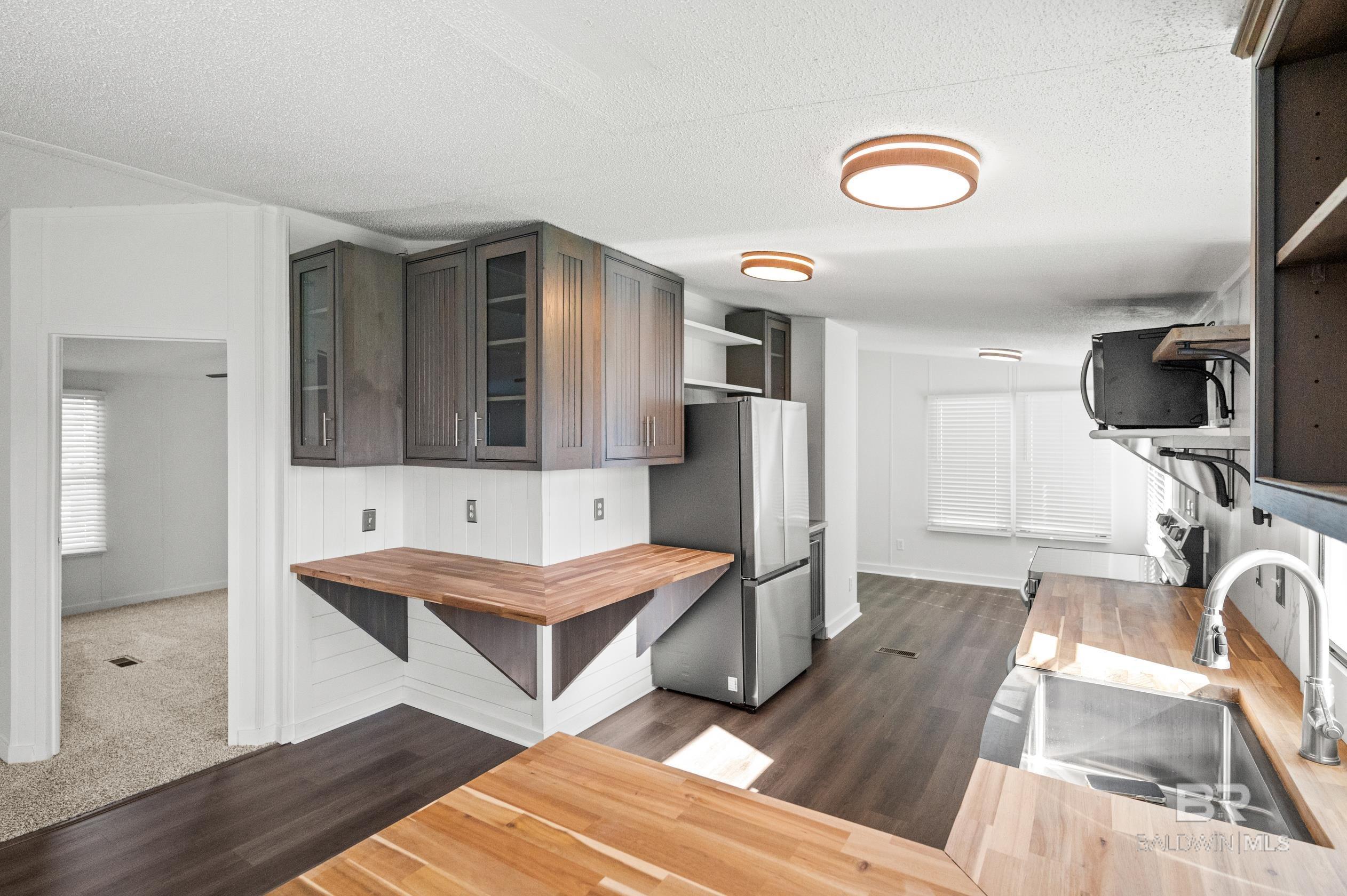 This updated 3-bedroom, 2-bathroom mobile home sits on a spacious 0.7 acre lot in the quiet countryside of Lillian, Alabama. The home offers 1,296 sq. ft. and features a brand-new HVAC system, new carpet, and vinyl plank flooring throughout.The kitchen has been fully renovated with custom cabinets, butcher block countertops, a tile backsplash, and stainless steel appliancesincluding a refrigerator, stove, dishwasher, and microwave. Fresh paint and updated light fixtures complete the clean interior.Outside, the lot has been landscaped and provides plenty of space for outdoor use or future additions. Located on a quiet road with no through traffic, the property is just a short drive to Perdido Bay, Perdido Key, and other nearby Gulf Coast spots. No HOA.Schedule a showing today. Buyer to verify all information during due diligence. CASH ONLY