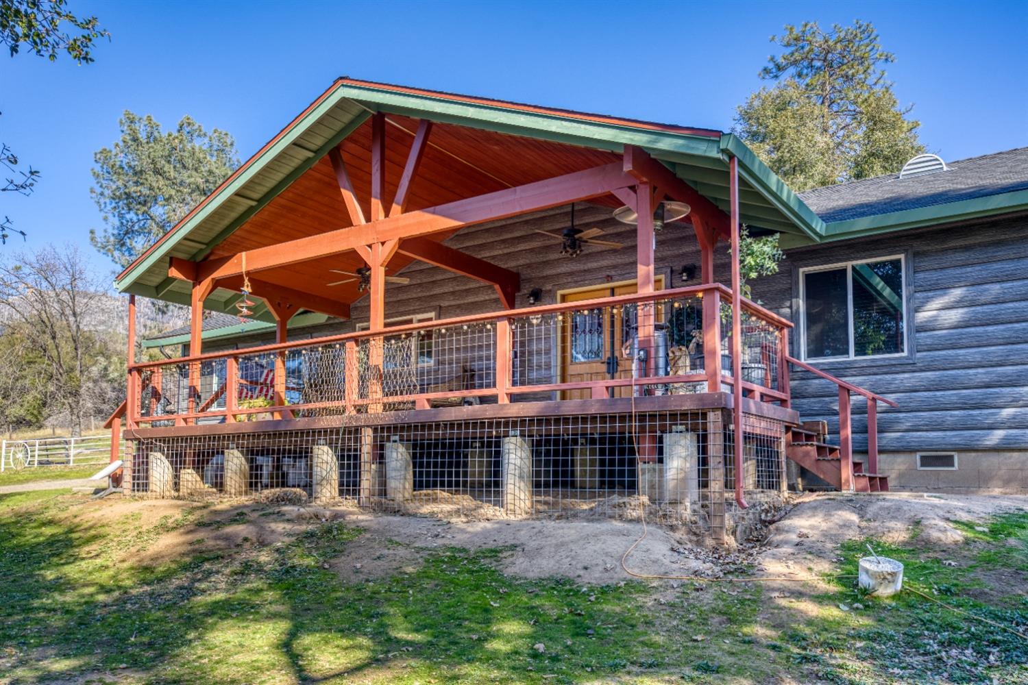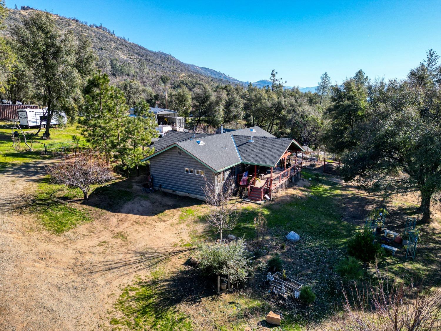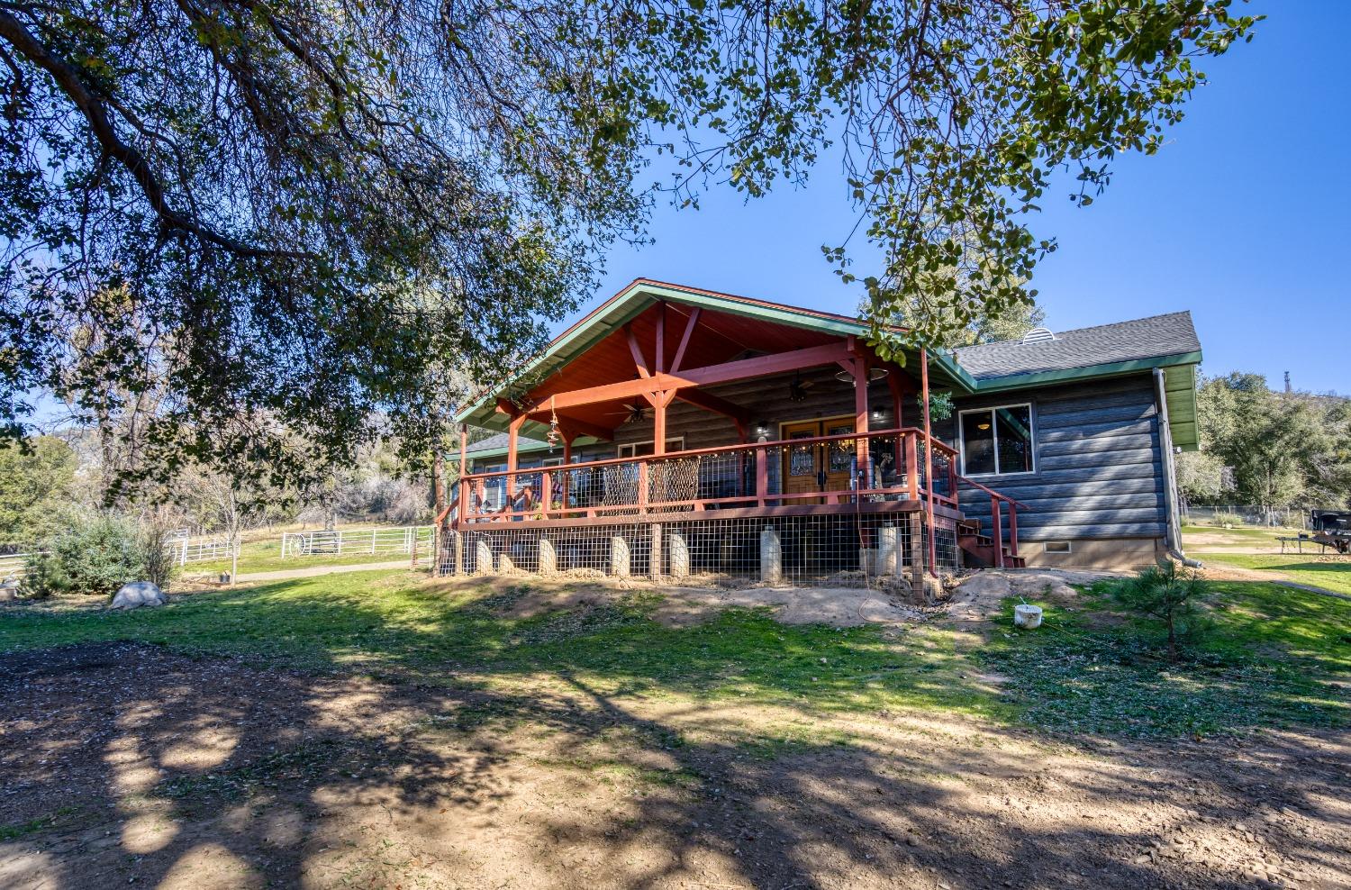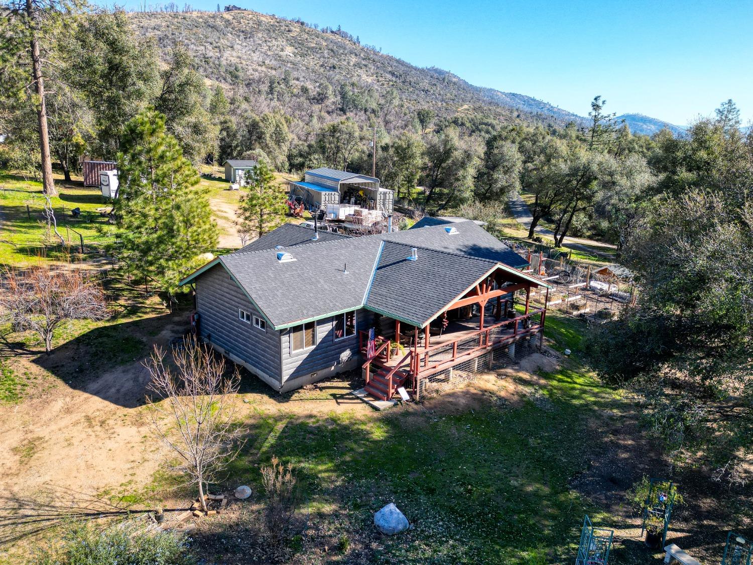 Looking for your mountain retreat? This home has a lot to offer. With a long list of high-quality modern updates, you can live in comfort and entertain with pride. Move-in ready. Clean, well kept. Steel sided by TruLog, and extra fire clearance and protection. Two independent electric meters in case you want to add an ADU or shop on its own power. No HOA or CC&R's. RV spot with full hook-ups. Two large heavy-duty containers for storage and a large carport. Enjoy lower electric bill with ground mounted solar panels-Tesla batteries-whole house backup generator (NEM2), to protect you from high bills and power outages! Homestead ready, with a fenced garden, multizone timer drip irrigation, native landscaping, and an abundance of perennials that grow food every year. Garden shed, small greenhouse, firewood storage, fenced dog run with a large doghouse and an outbuilding with potential as a guest cottage. Fenced, cross fenced with two livestock paddocks, a small barn, chicken coop. Situated near the border of endless Sierra National Forest with summer access to Whiskey Falls and Mammoth Pool Reservoir and many backwoods' adventures. A few minutes to beautiful Bass Lake, Kerkhoff Lake and a short drive to Yosemite National Park.Horse ready - Chicken Coop - Gardens - Storage - Serinity