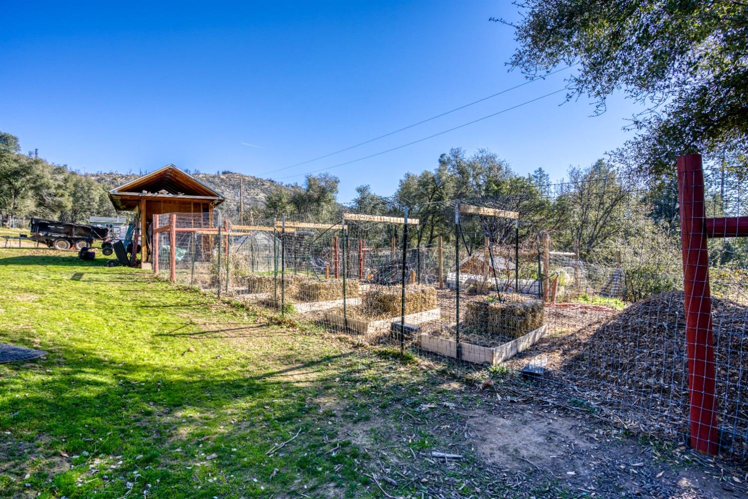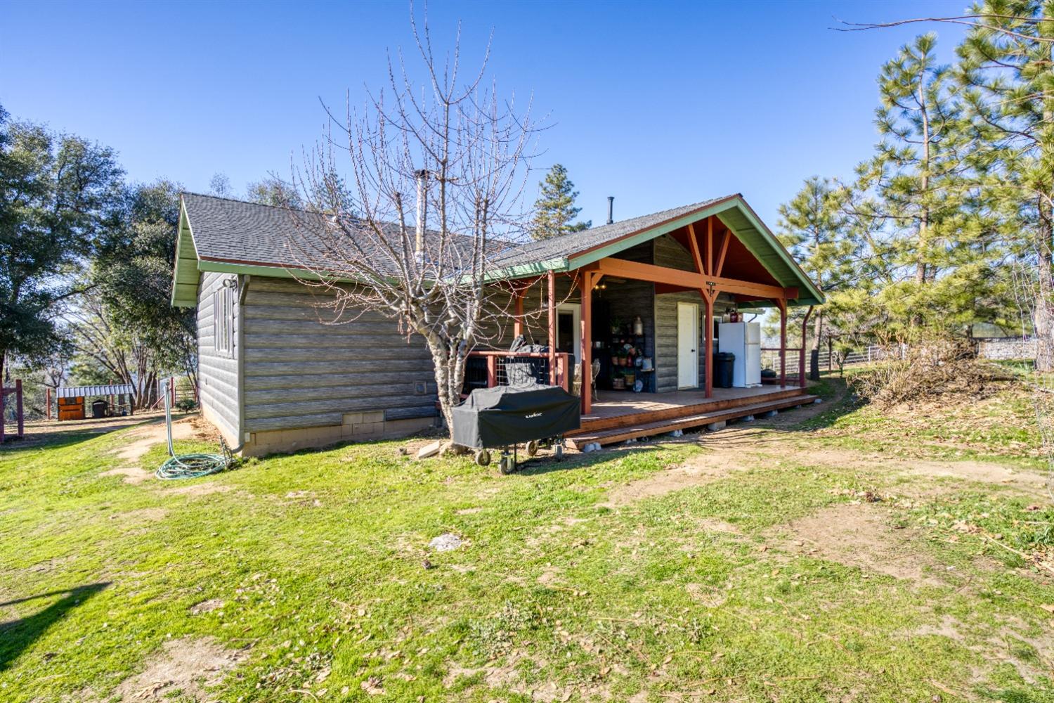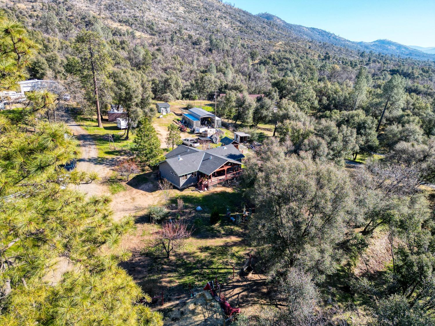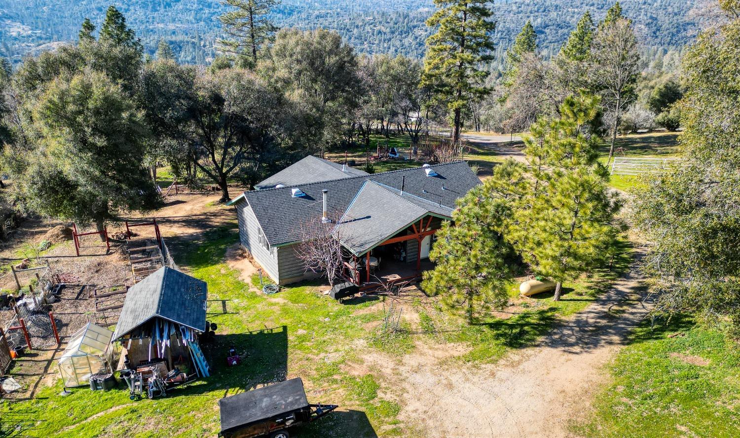 Looking for your mountain retreat? This home has a lot to offer. With a long list of high-quality modern updates, you can live in comfort and entertain with pride. Move-in ready. Clean, well kept. Steel sided by TruLog, and extra fire clearance and protection. Two independent electric meters in case you want to add an ADU or shop on its own power. No HOA or CC&R's. RV spot with full hook-ups. Two large heavy-duty containers for storage and a large carport. Enjoy lower electric bill with ground mounted solar panels-Tesla batteries-whole house backup generator (NEM2), to protect you from high bills and power outages! Homestead ready, with a fenced garden, multizone timer drip irrigation, native landscaping, and an abundance of perennials that grow food every year. Garden shed, small greenhouse, firewood storage, fenced dog run with a large doghouse and an outbuilding with potential as a guest cottage. Fenced, cross fenced with two livestock paddocks, a small barn, chicken coop. Situated near the border of endless Sierra National Forest with summer access to Whiskey Falls and Mammoth Pool Reservoir and many backwoods' adventures. A few minutes to beautiful Bass Lake, Kerkhoff Lake and a short drive to Yosemite National Park.Horse ready - Chicken Coop - Gardens - Storage - Serinity